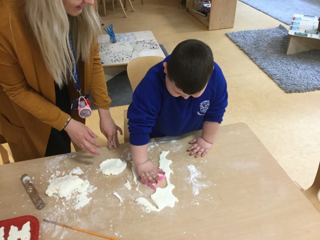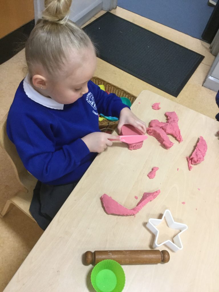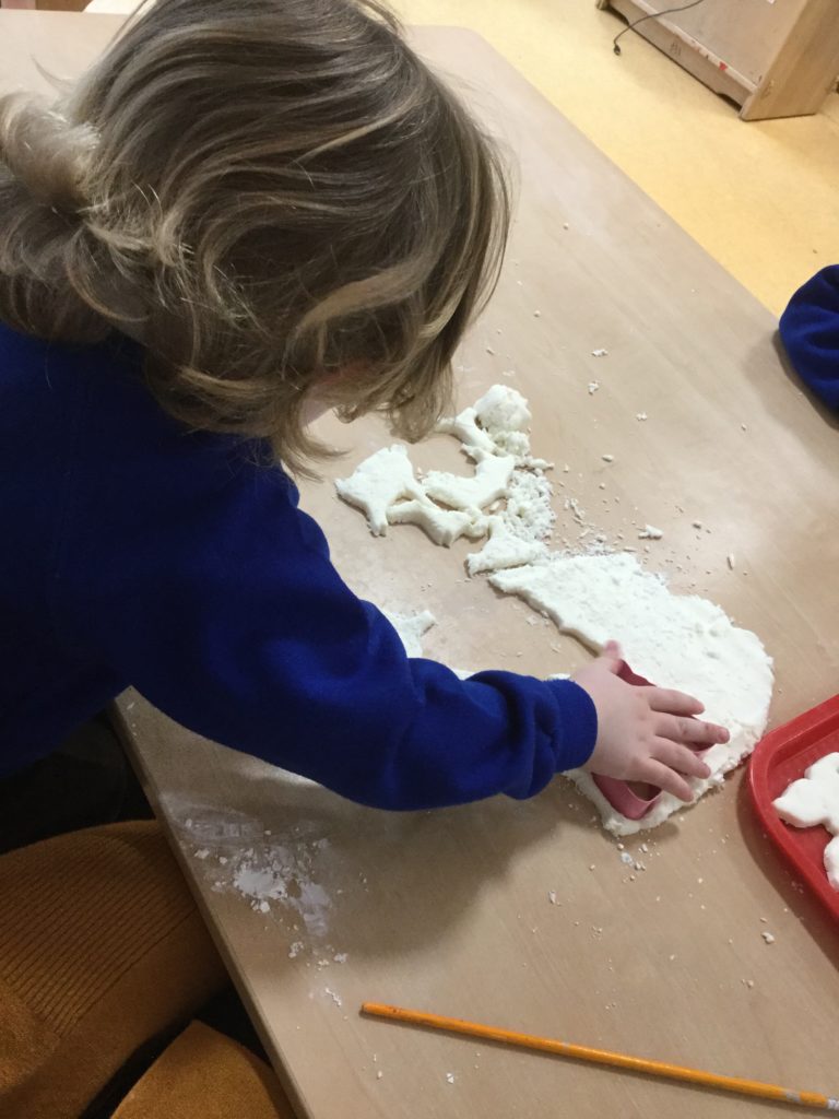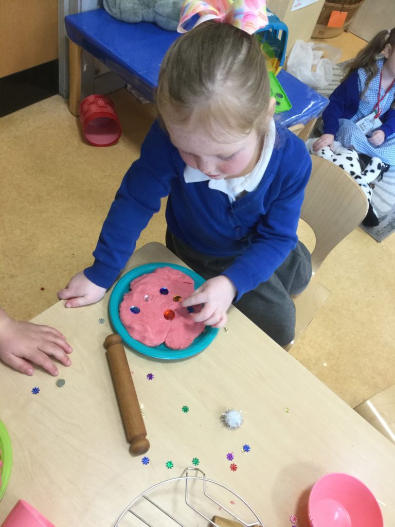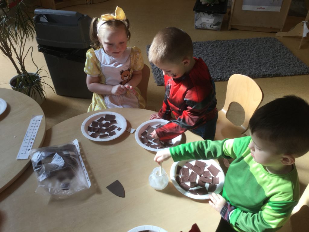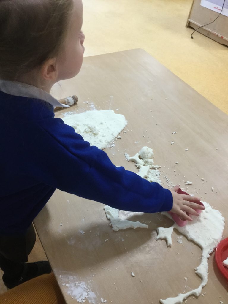 The children thought about what the caterpillar might want to take in his packed lunch when he goes to the moon. The children all agreed that he would need some biscuits. Together the children baked some biscuits for the caterpillar.