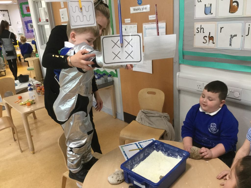 We also took part in some training with Jane and ran 2 km around the school Sports hall. It was very tiring and we learned that the caterpillar will have to be super-fit if he wants to be an astronaut and visit the moon.