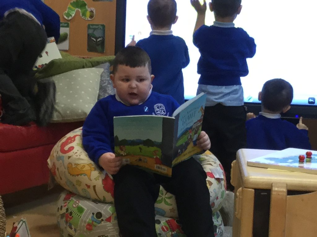 And on Friday he met some story book characters as the children dressed up to celebrate World Book Day.
