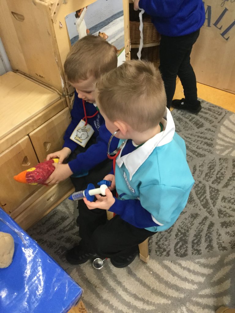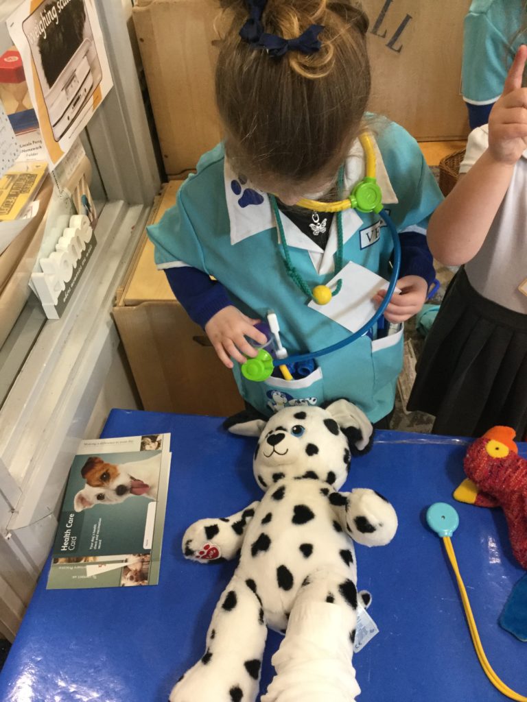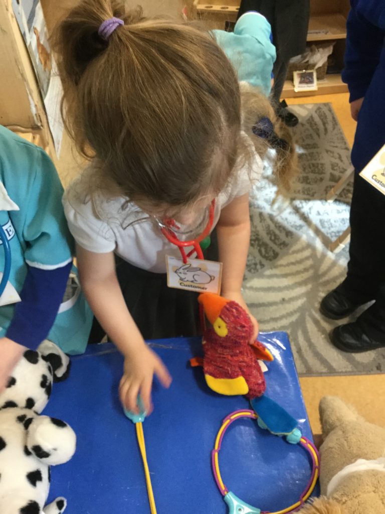 We noticed that the children seemed to have a real love of animals so we introduced a Vets into our role play area. The children really loved pretending to be Doctors and vets.