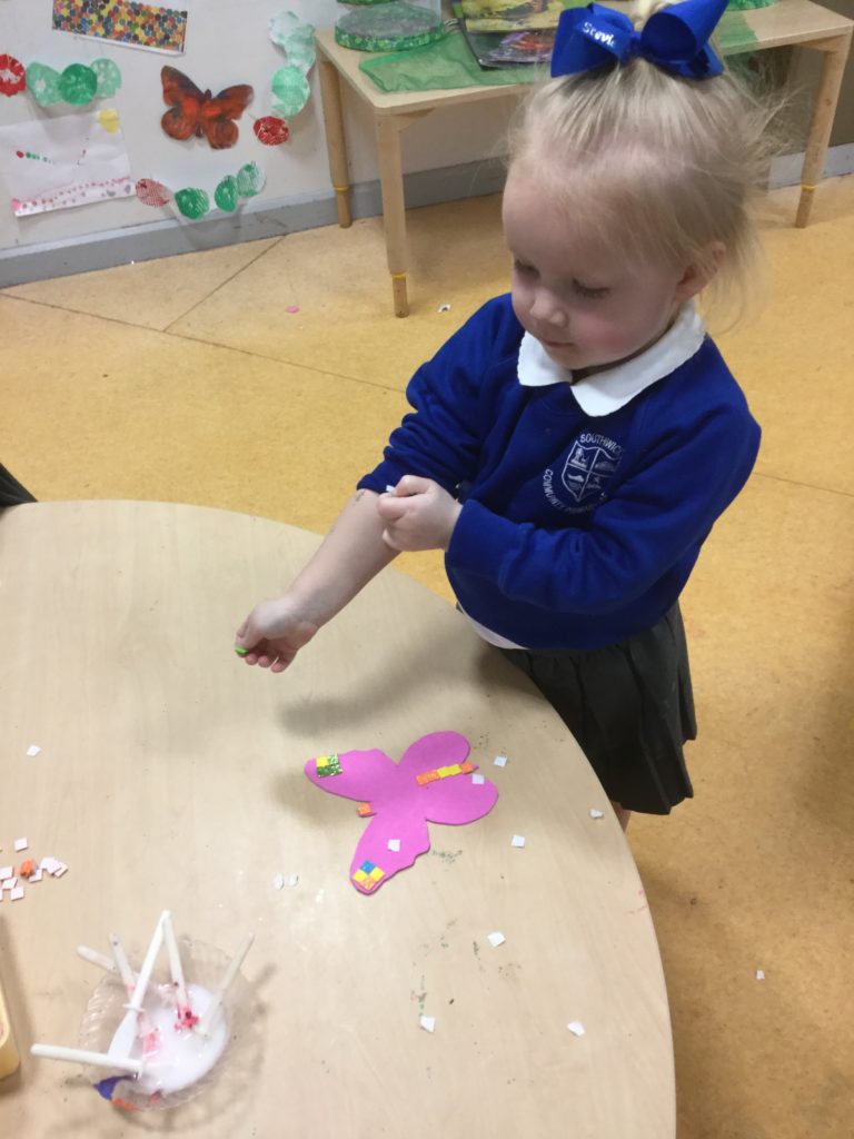 We began by reading the story with the children and they loved the caterpillar so much it inspired lots of different activities.