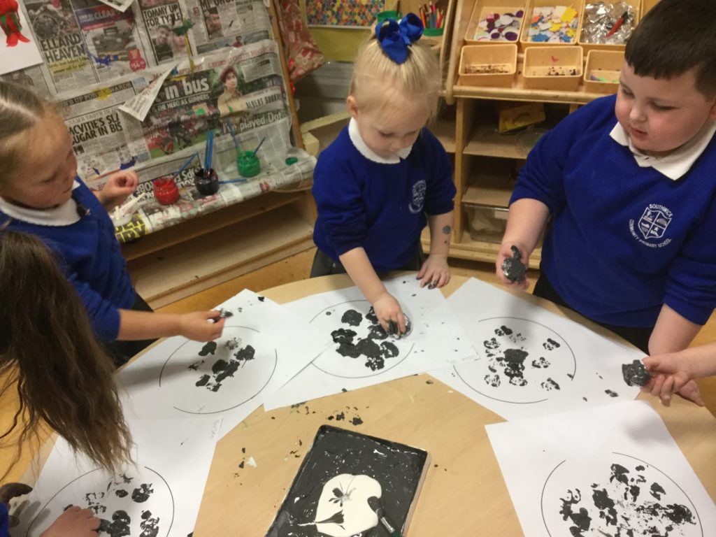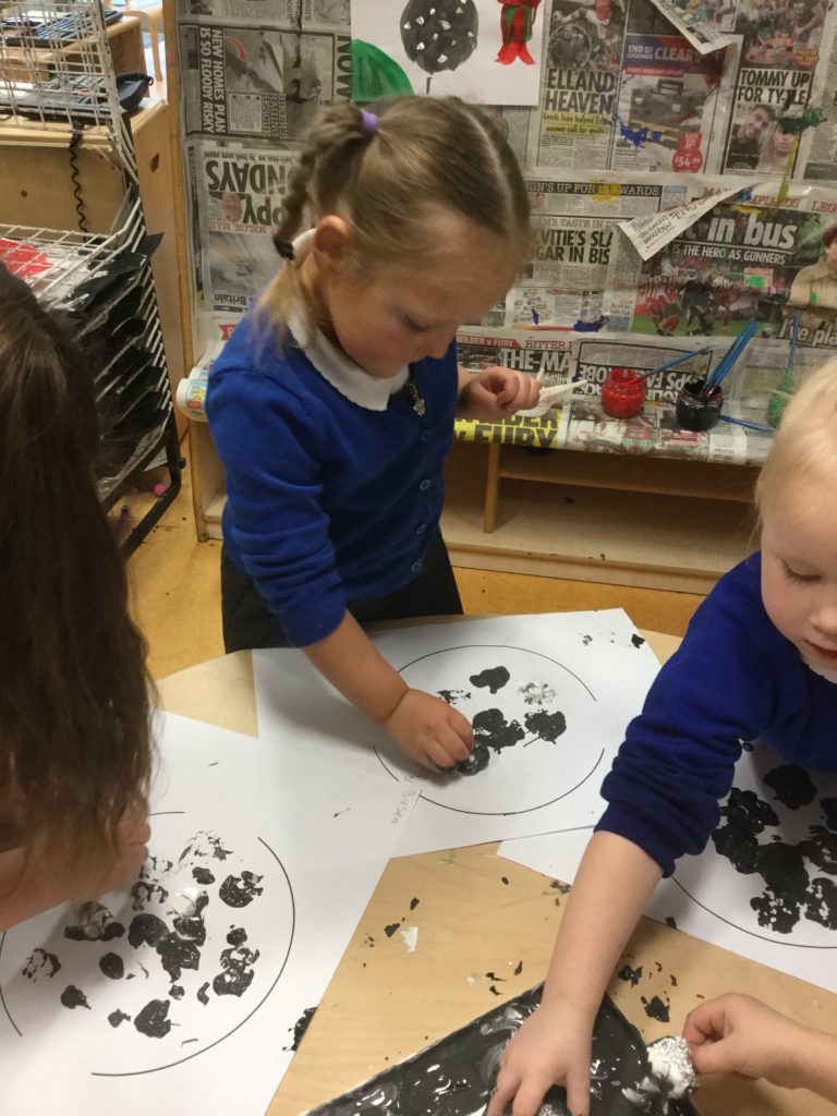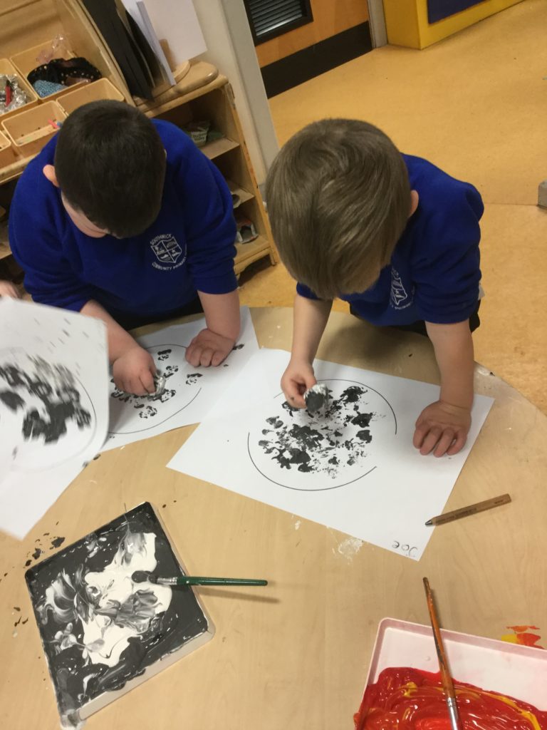 We then set off to make our very own Moon masterpieces. We wanted to make sure the moon had lots of texture so we used two special painting techniques. This is how it turned out.