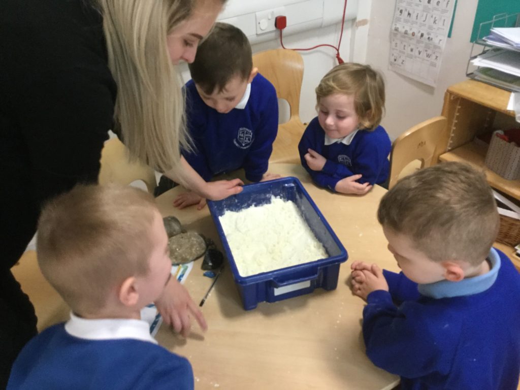 This week the children thought about the moon the caterpillar saw on the first night he was born. They wondered what the moon looked like and what it would be like to visit the moon.We had so much fun this week re-creating the Moon! Here’s a little sneak peek of what we got up to….