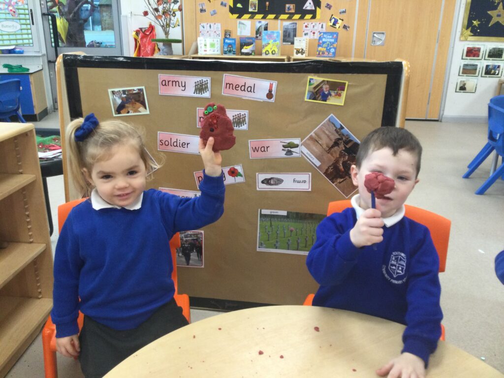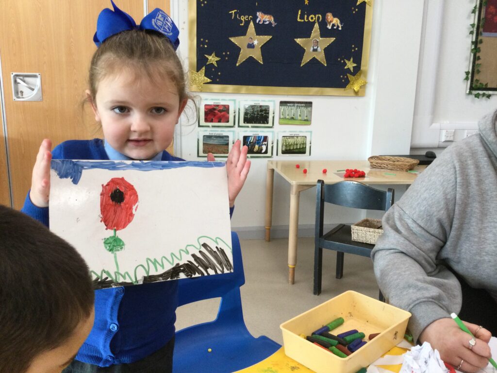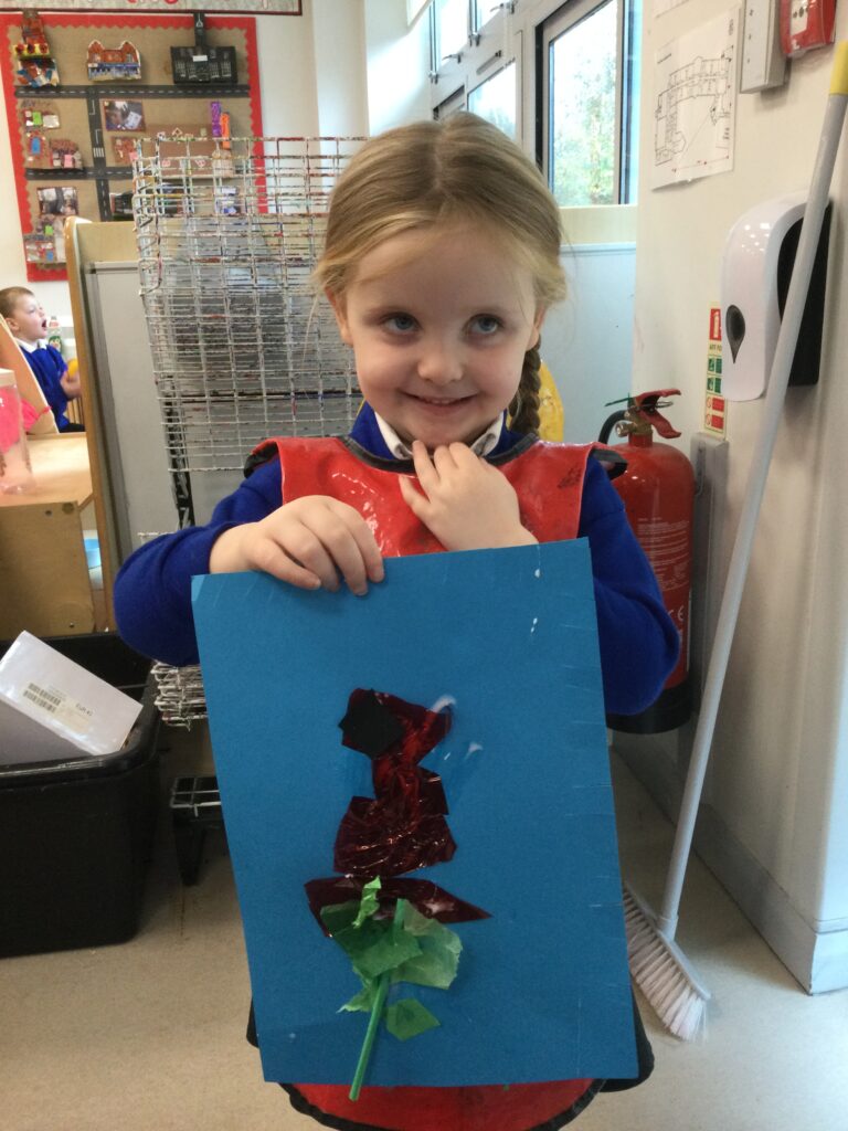 This week we have been looking at Remembrance day and why it is celebrated. We spoke about the importance of a poppy and why people use this as a symbol to remember. We have been making poppies using lots of different techniques such as playdough, painting and drawing. We made a wreath to place onto the cenotaph to pay our respects.