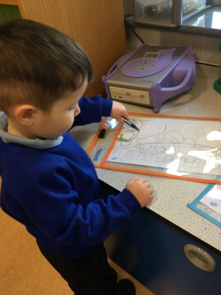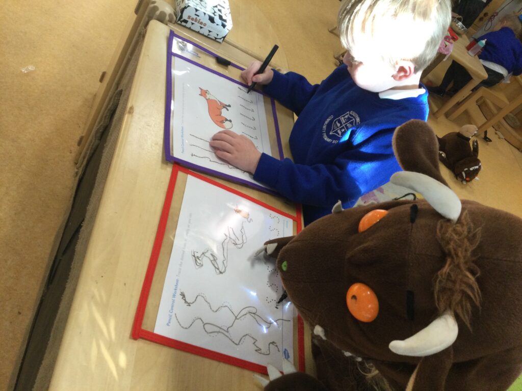 To work on our pencil hold & fine motor skills we completed some gruffalo tracing activities.