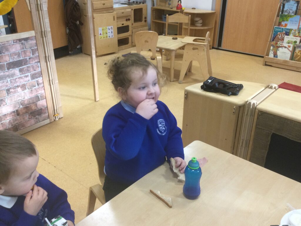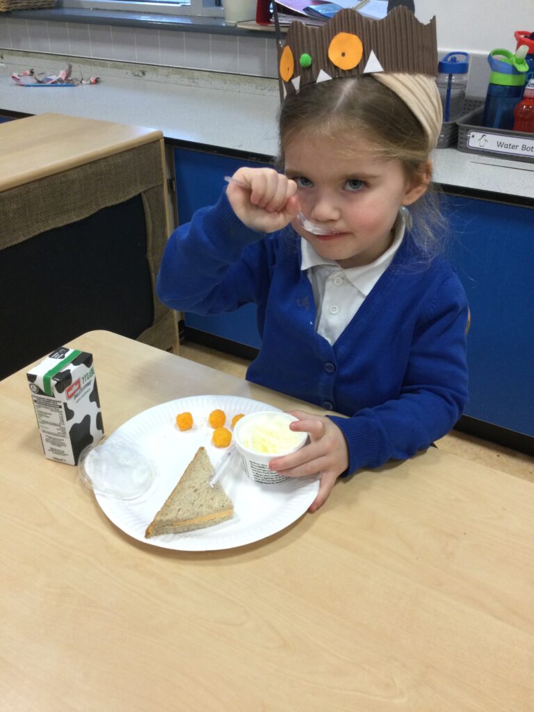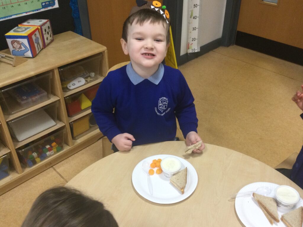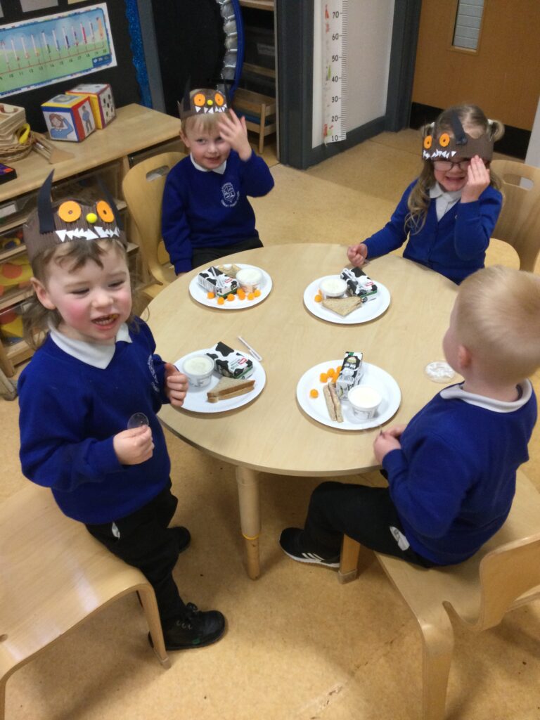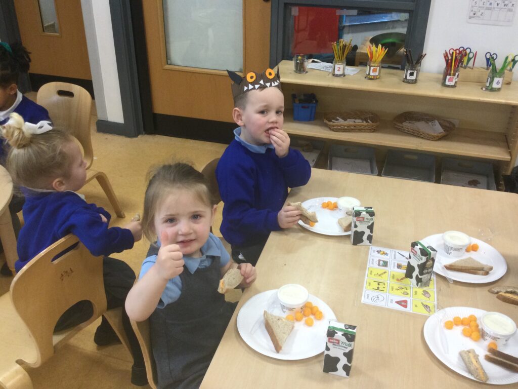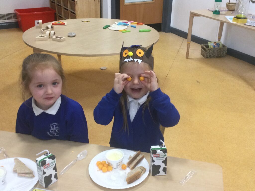 To end our gruffalo topic we had a party by imitating the food in the story. The children loved the gruffalo’s orange eyes & owl ice cream.