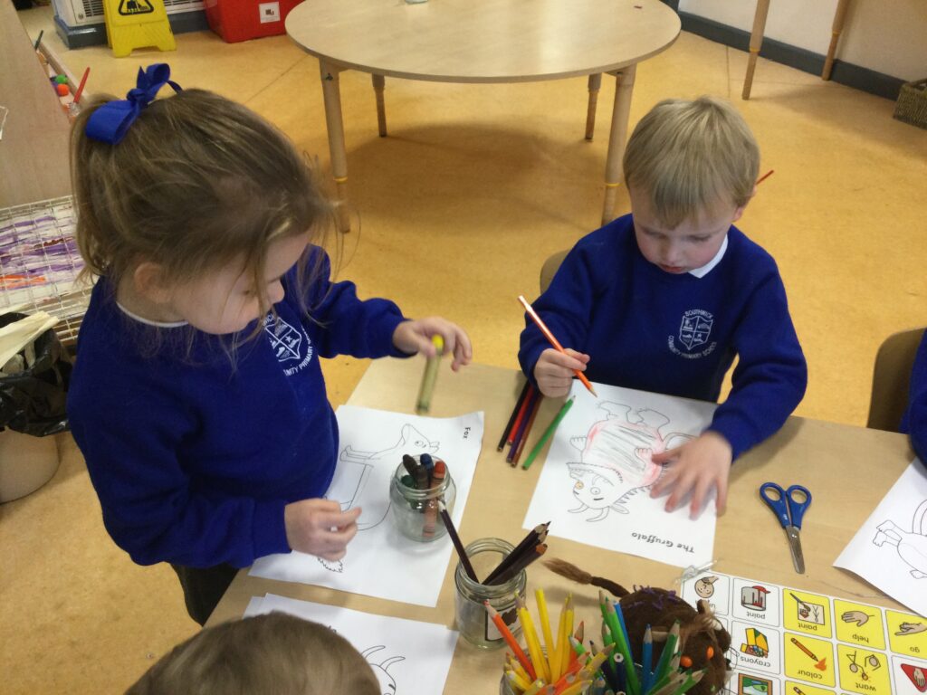 To start our new topic of into the woods we learnt about the Gruffalo story.