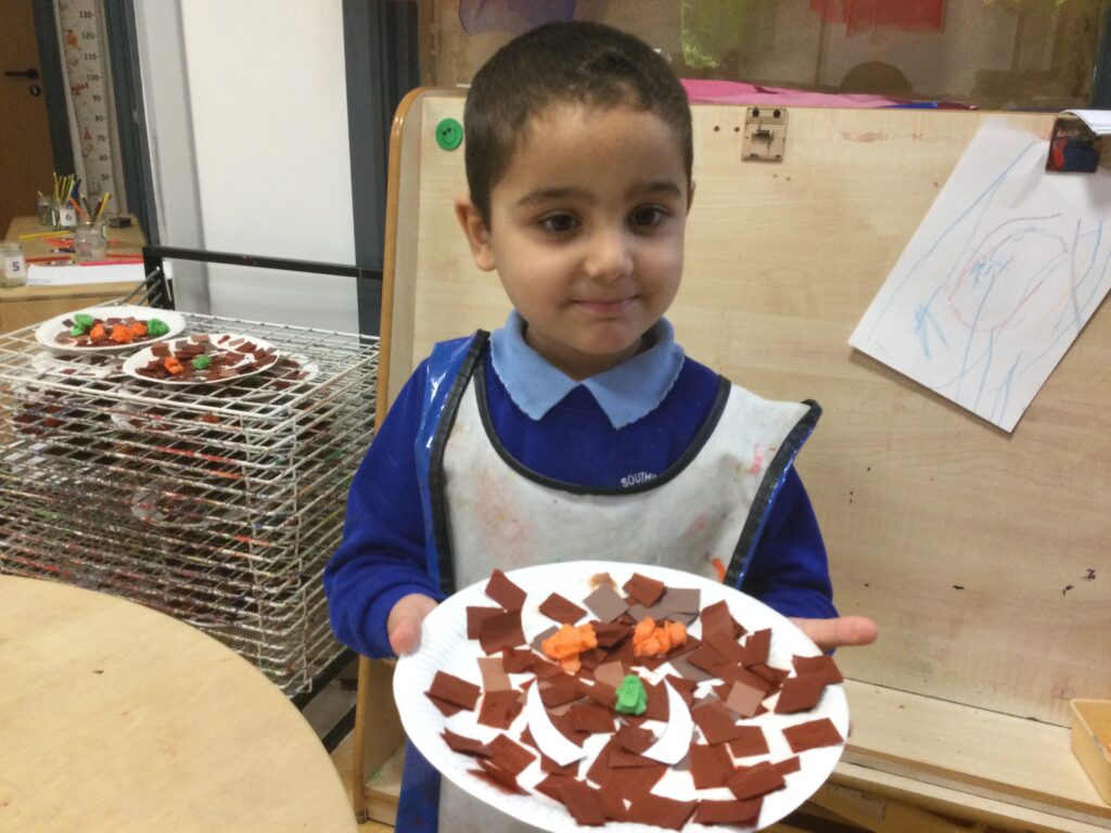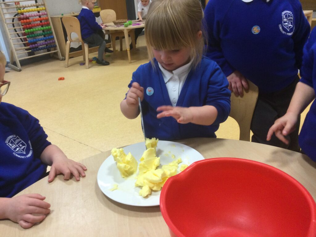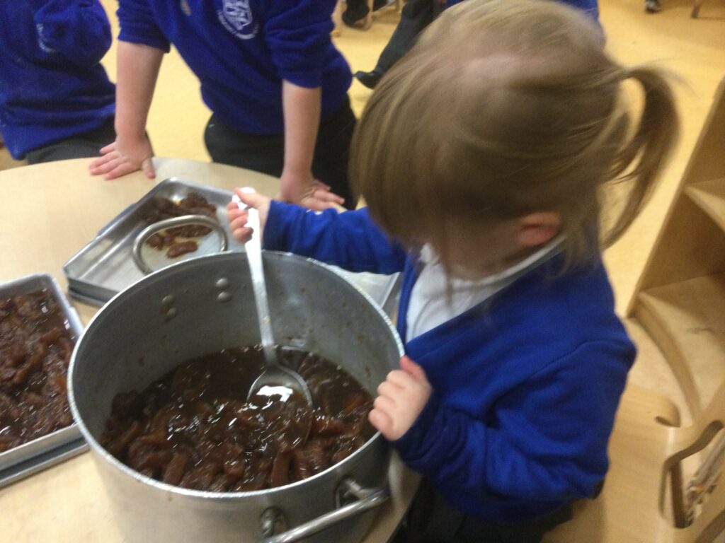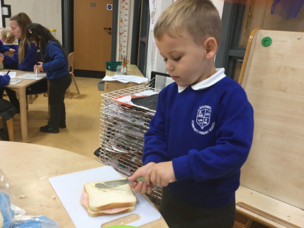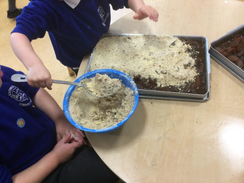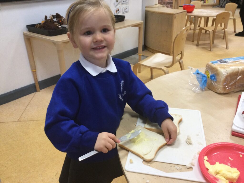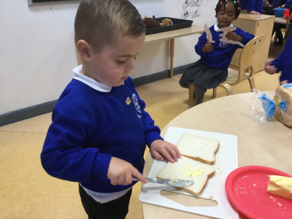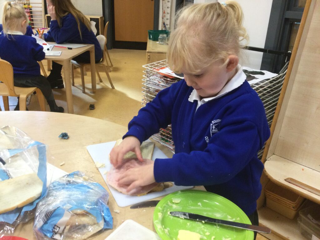 In order to show our support for the Macmillan charity we decided to have a Gruffalo party. We made ham and cheese sandwiches, Gruffalo crumble and Gruffalo claws. We had lots of fun making these! We had to make sure that our hands were nice and clean and follow the instructions carefully.