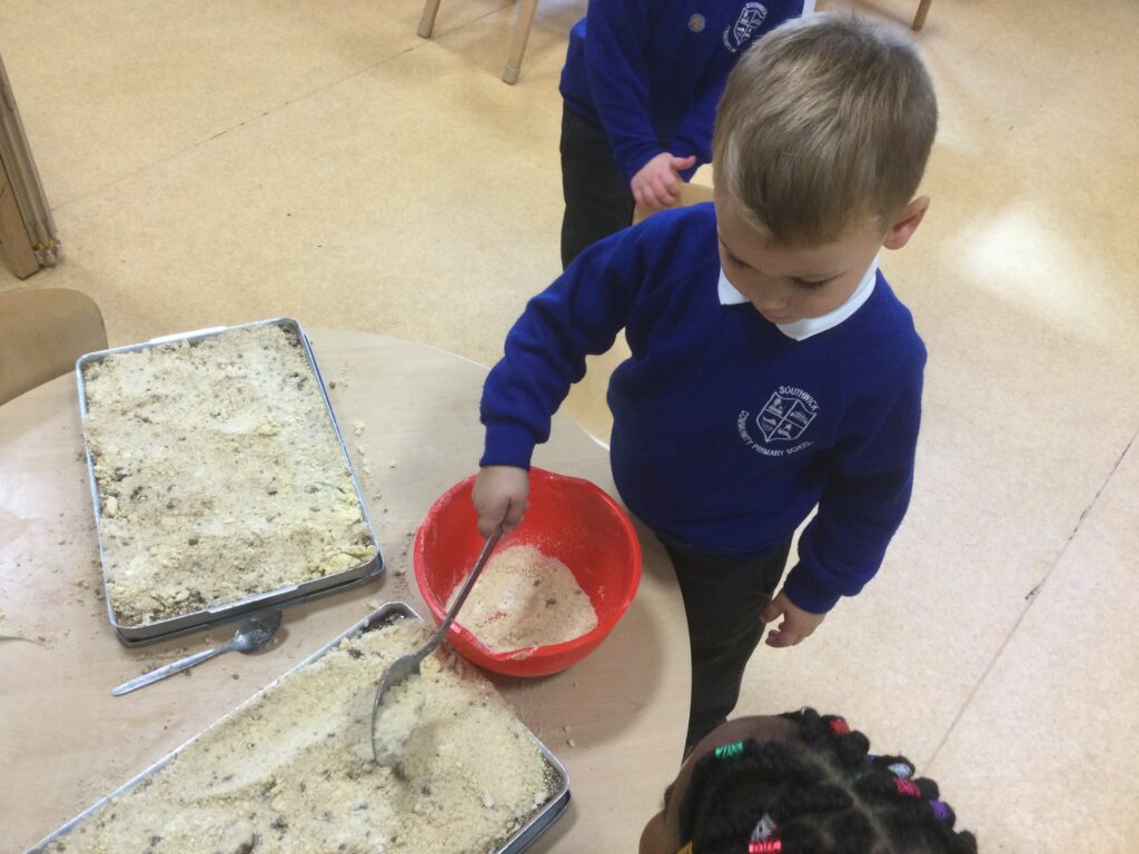 To end the week we had a Gruffalo Macmillan coffee party! We helped to make the sandwiches and gruffalo crumble.