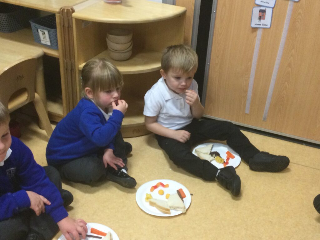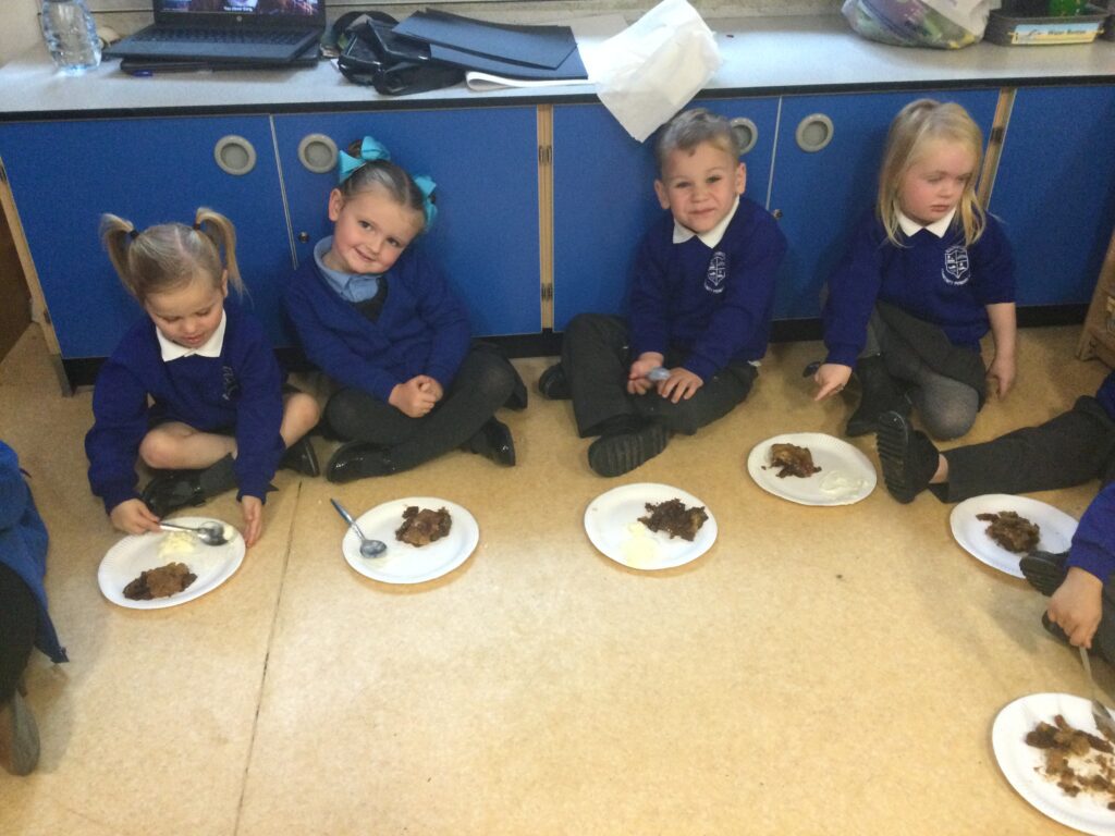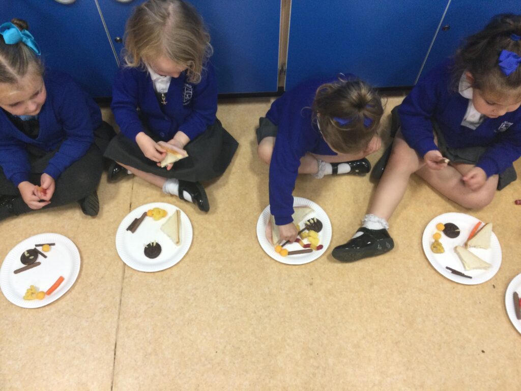 On Friday we had lots of tasty treats! We tried the Gruffalo’s orange eye balls, had some of snakes log pile house, Gruffalo crumble and owl ice- cream. We had a great party and raised lots of money for a very important charity.