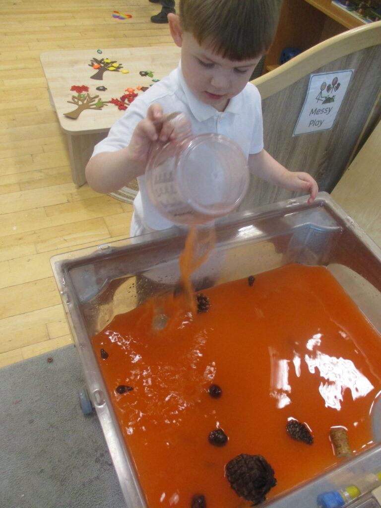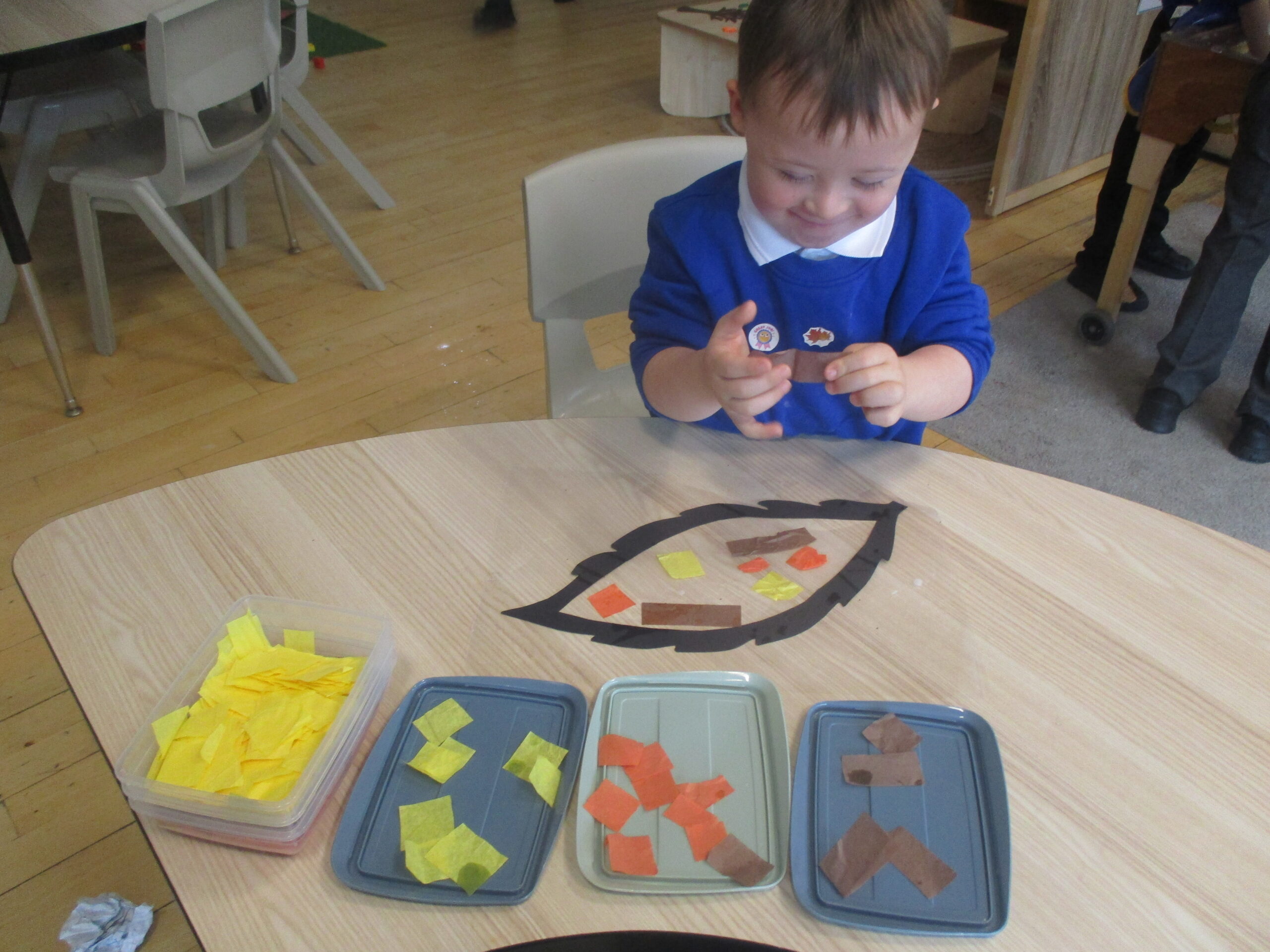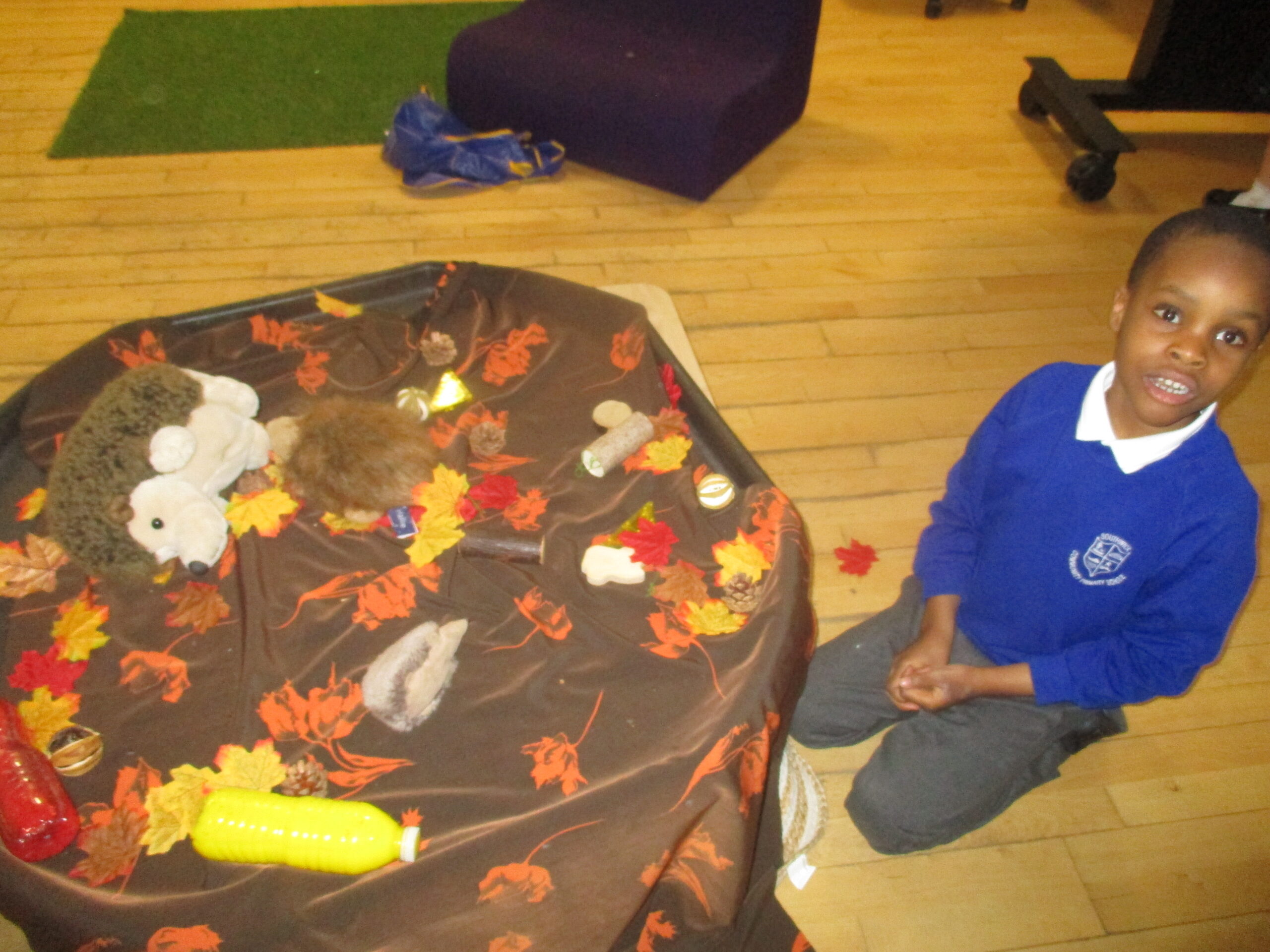 This week we have been learning about Autumn, we have enjoyed exploring the changes in autumn leaves and the textures of pine cones and conkers. We have looked at animals such as hedgehogs and squirrels and learnt the Makaton signs for these.