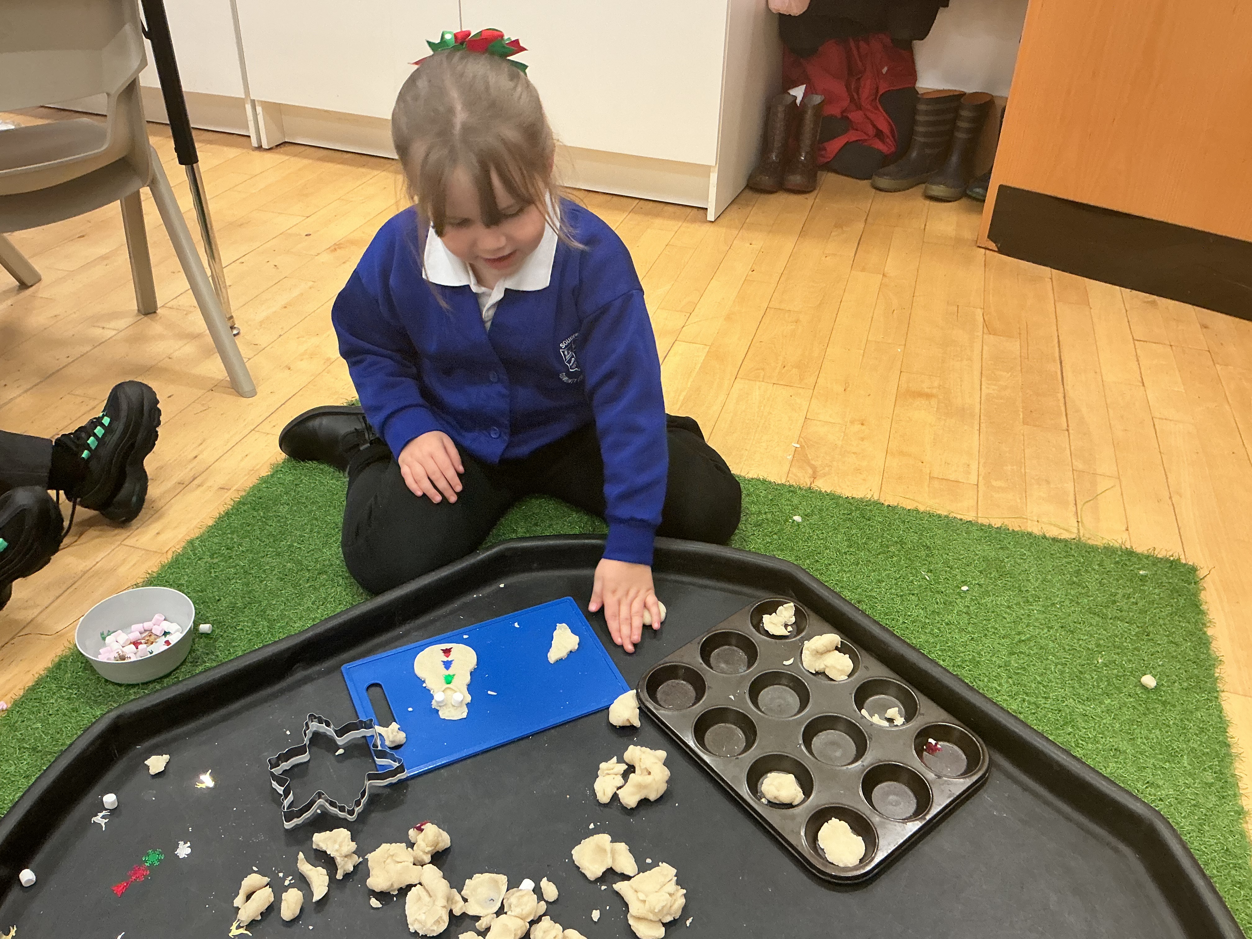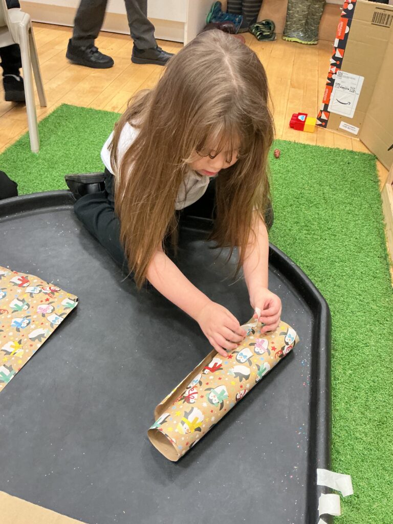The children practiced wrapping presents, using playdough to make pretend cookies and enjoying the Christmas party.