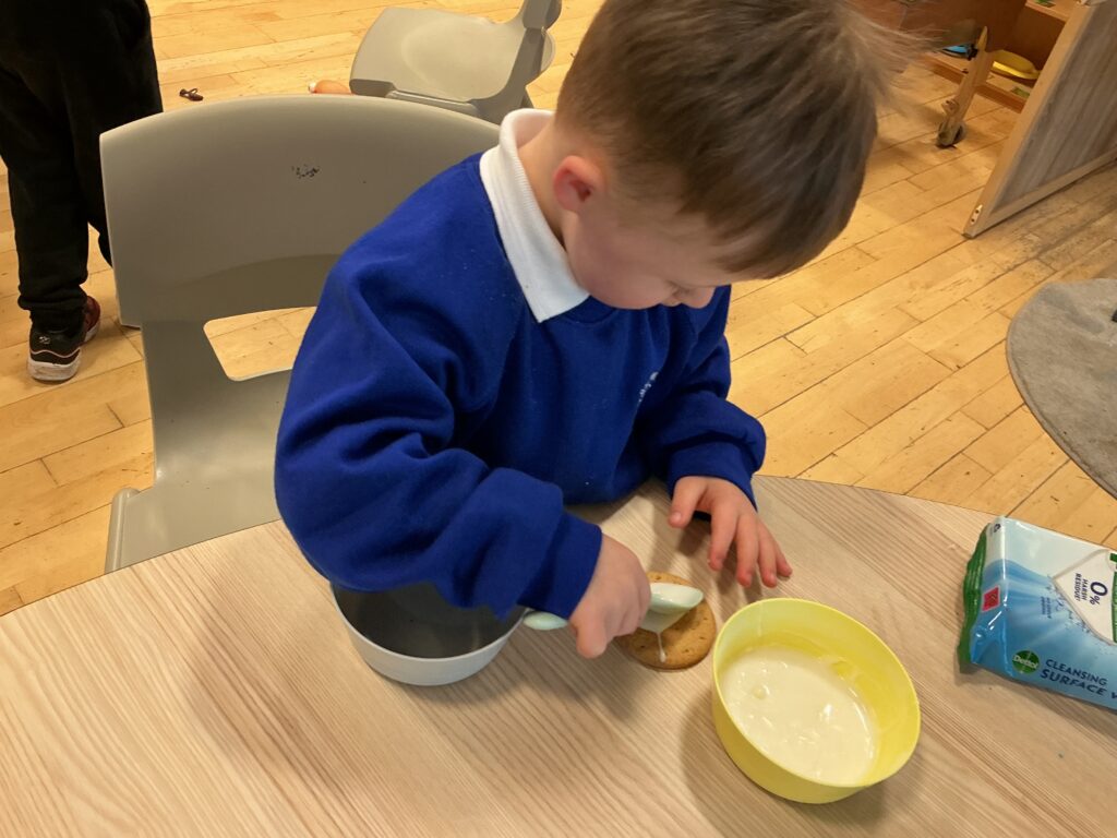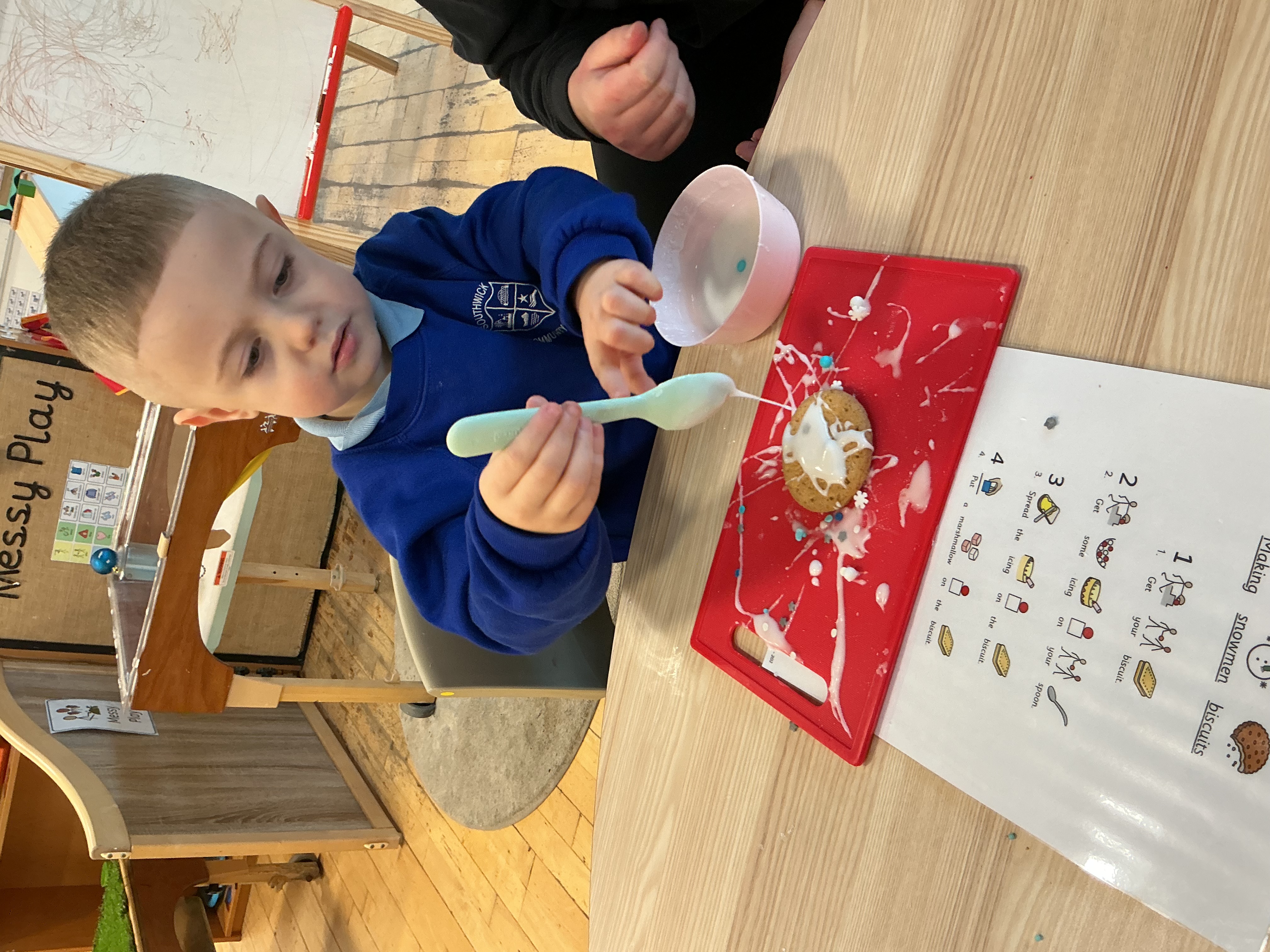 We started by watching a funny Christmas pantomime that made everyone laugh. Then, in class, the children made melted snowman biscuits using icing, marshmallows, and other treats. They loved decorating their own snowmen!