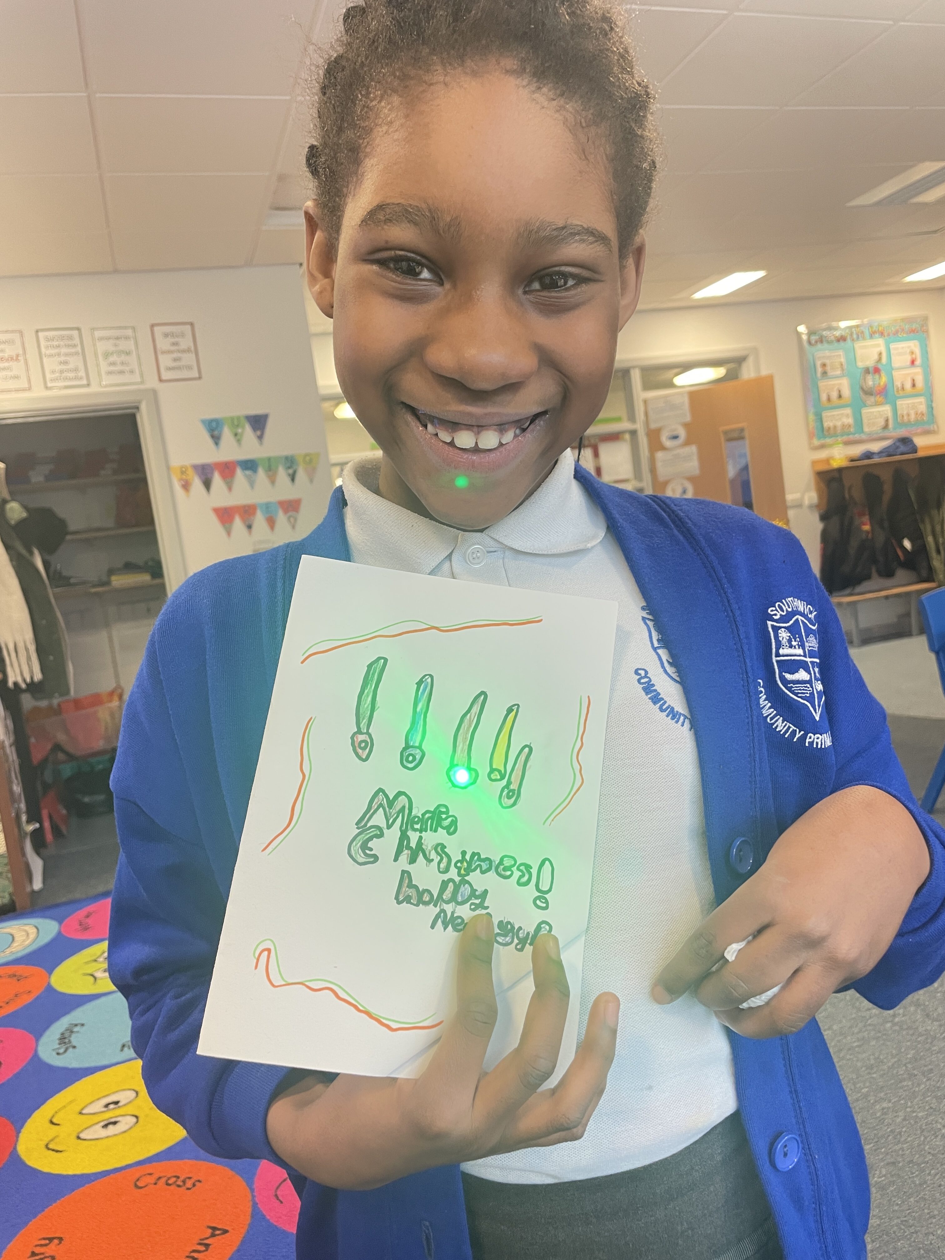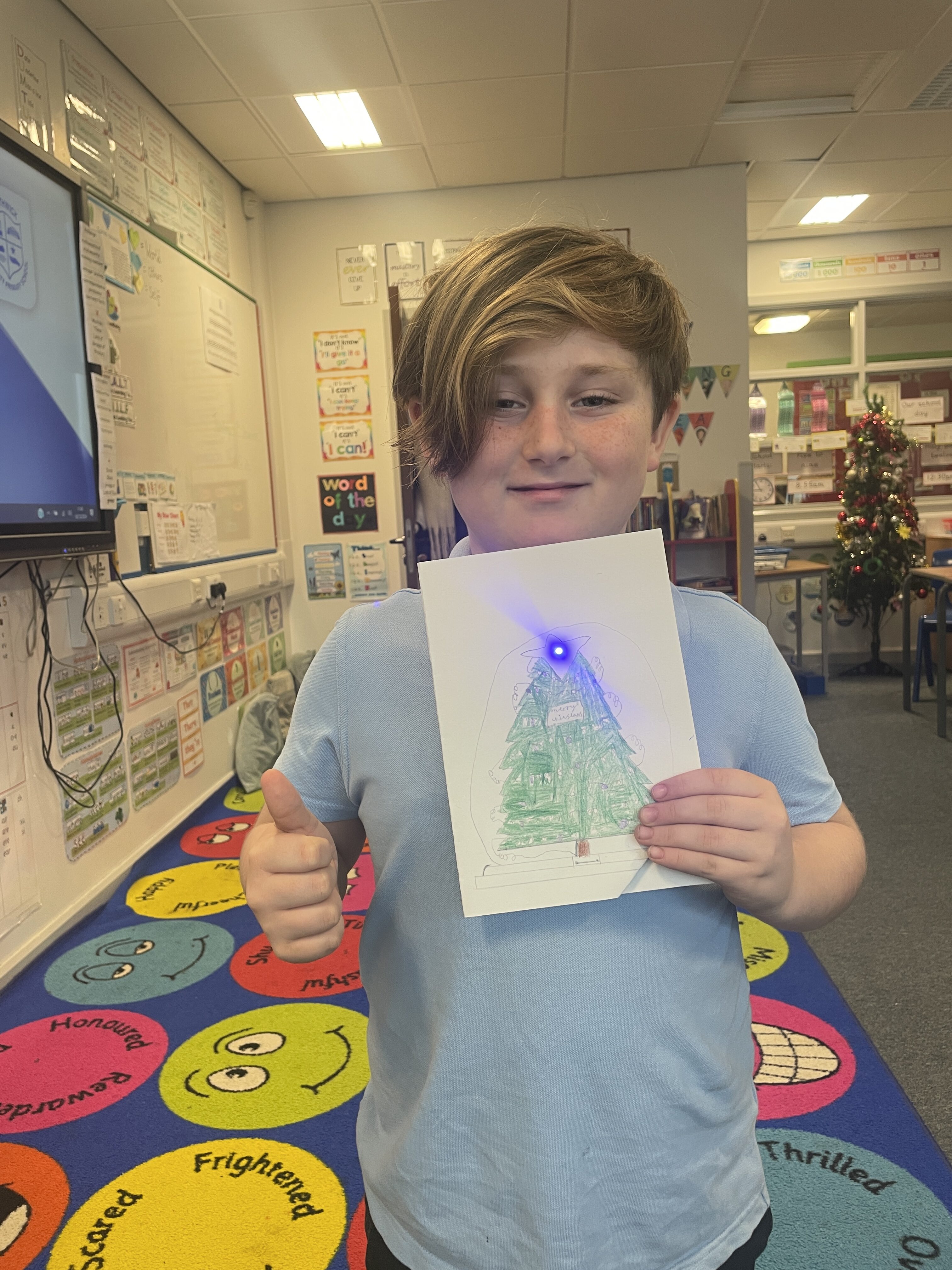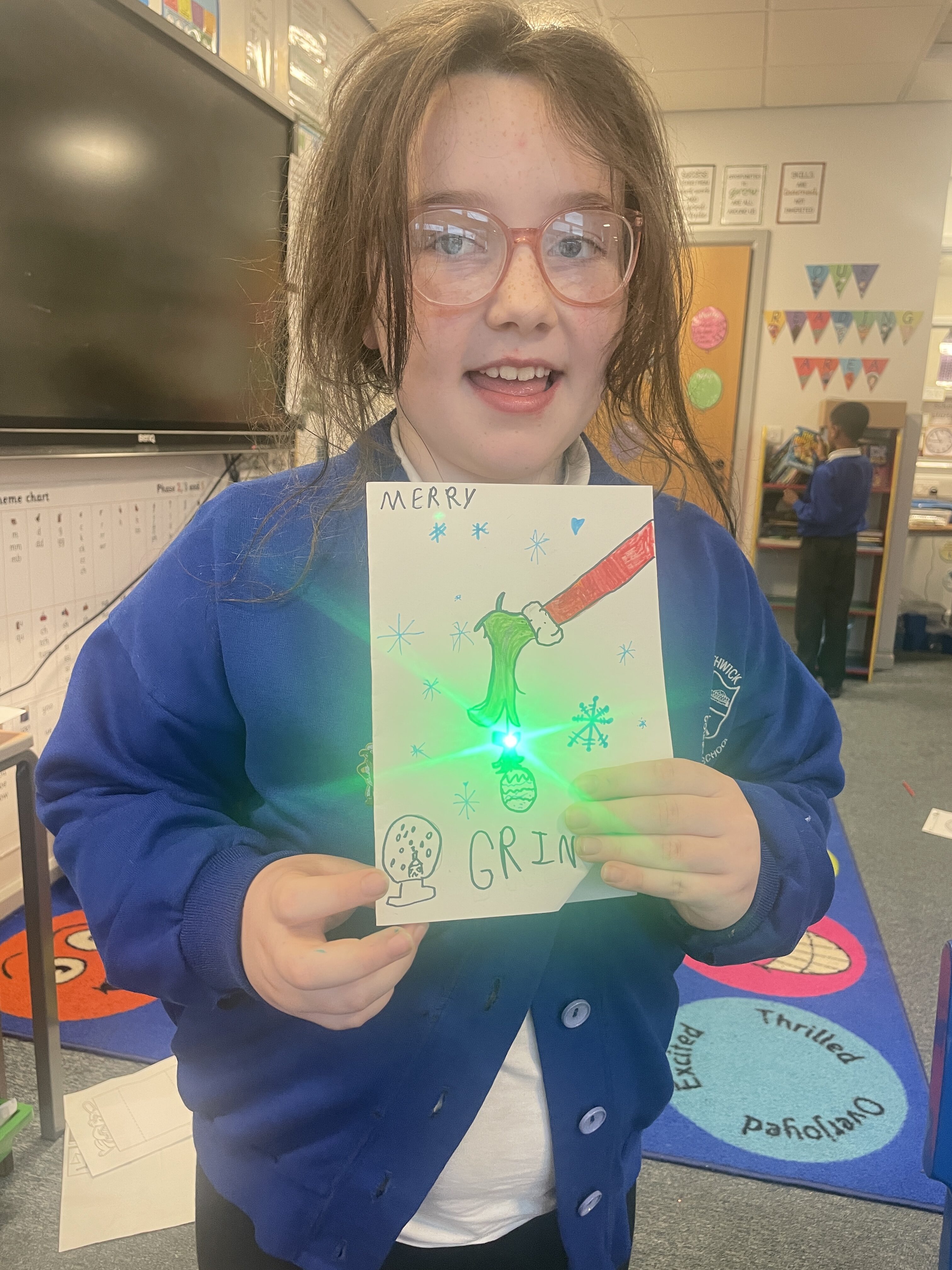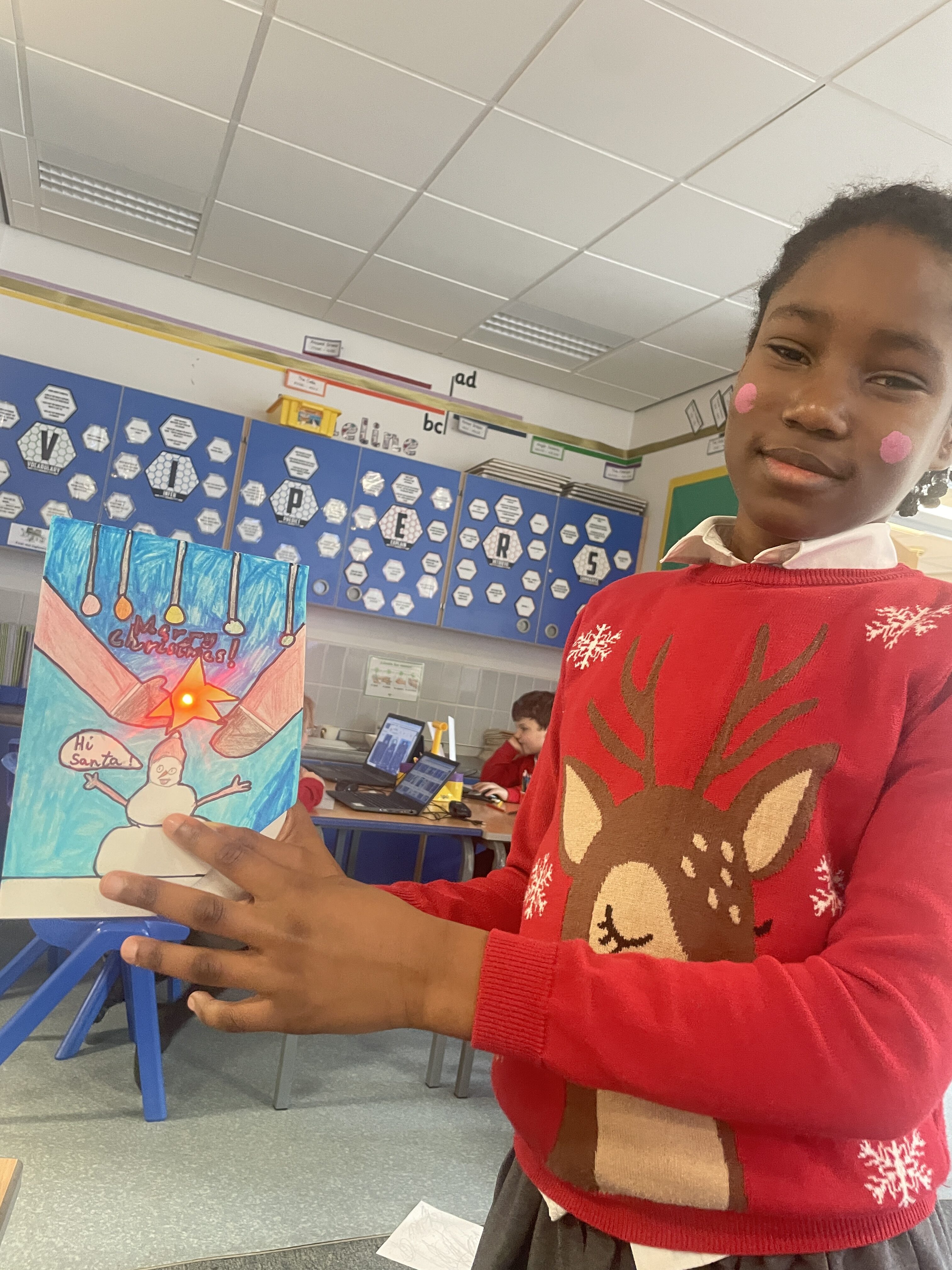 For Christmas we used our skills in electronics to make Christmas cards which light up! We think they are pretty spectacular!