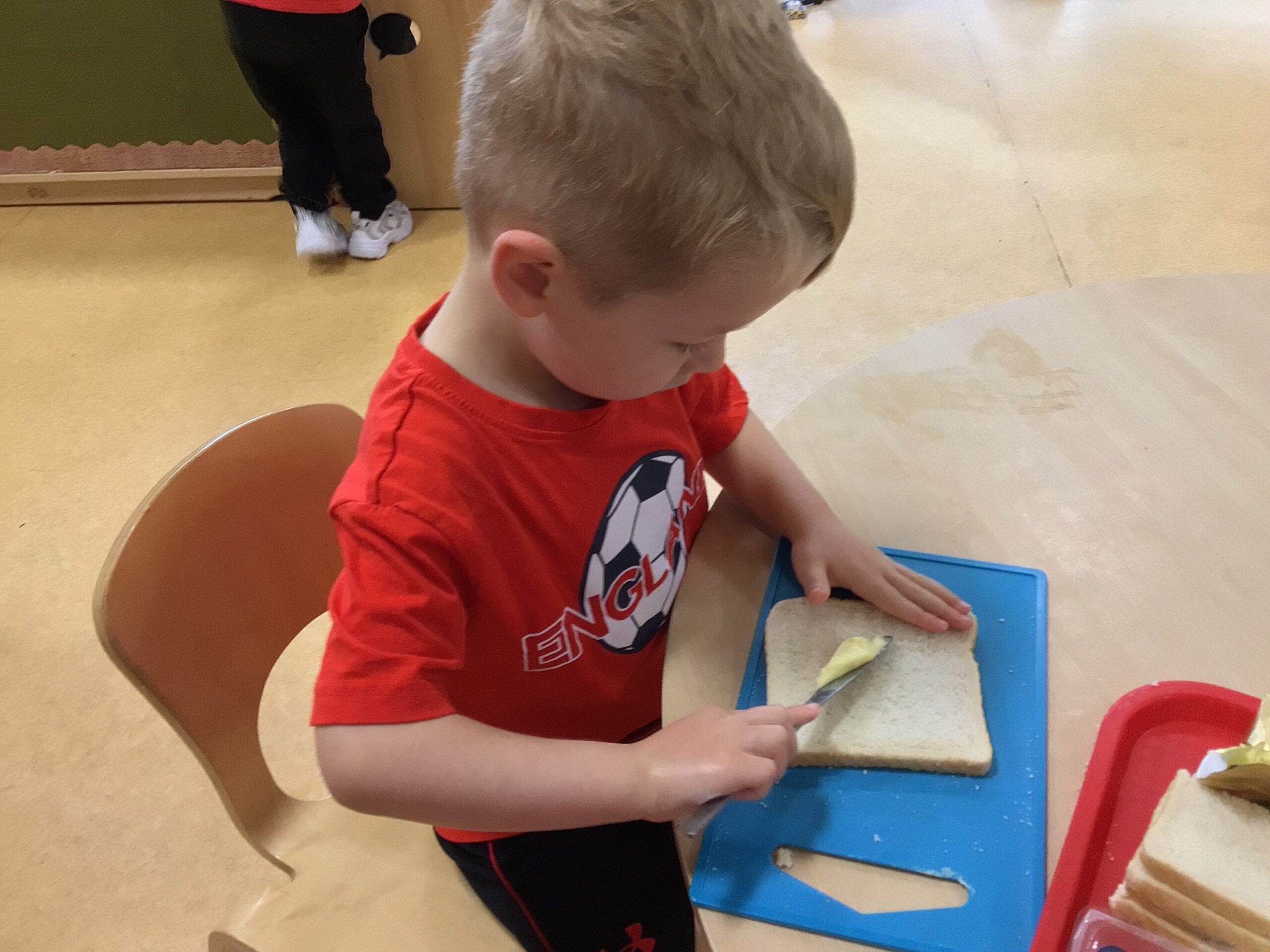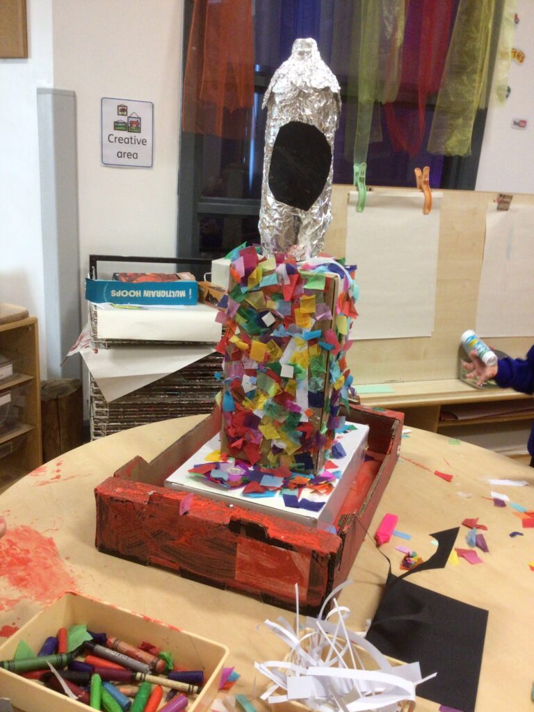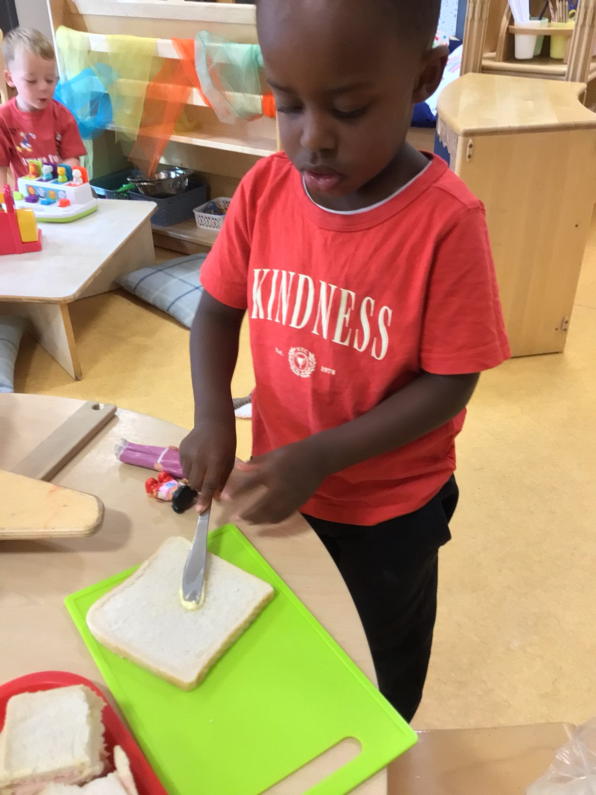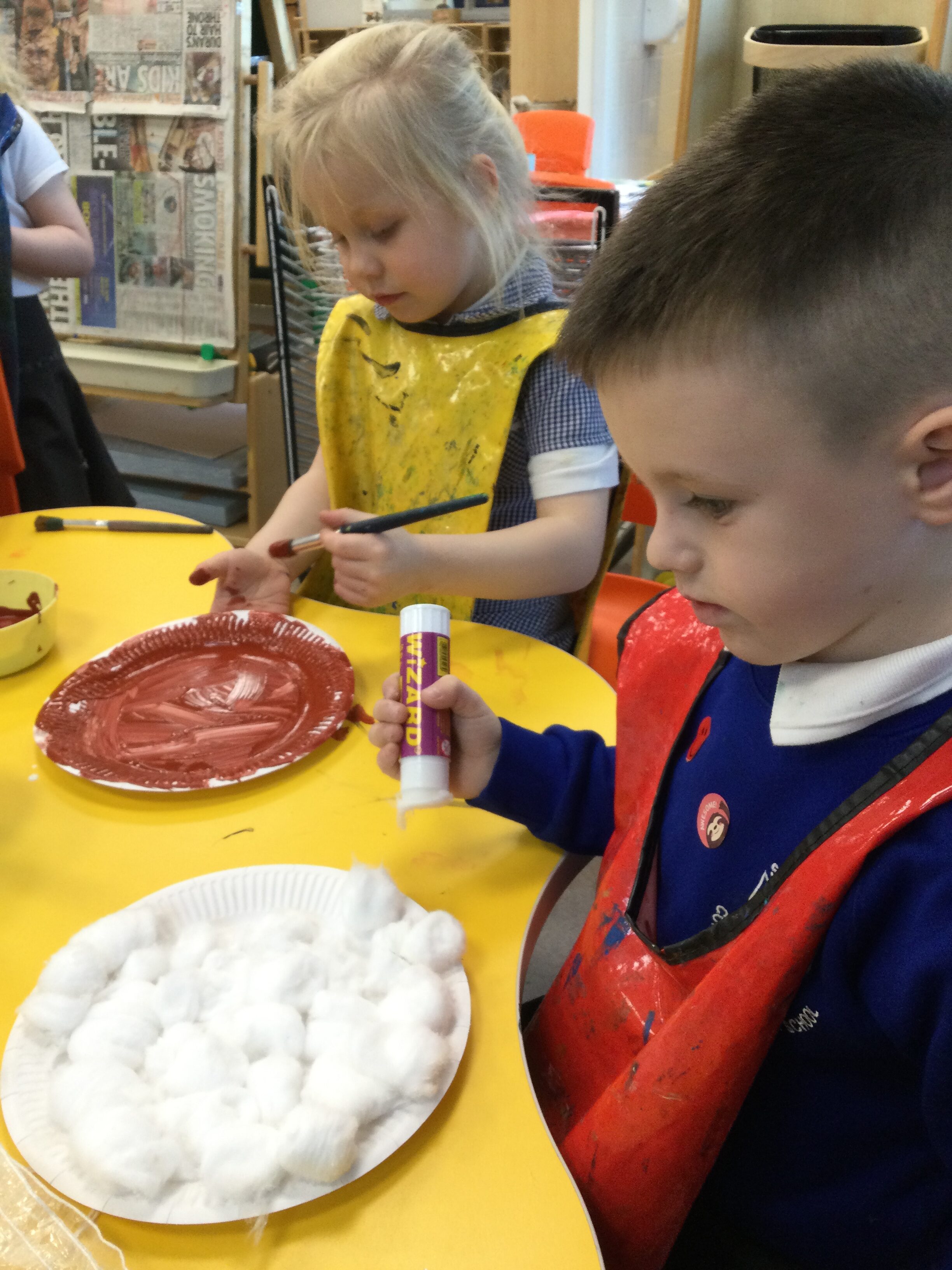In nursery this term we have explored lots of ways to cut, attach and change or models and designs. We have used different types of glues, tapes and fixings as well as muilt- media collaging. We have also been fantastic chefs, making sandwiches for our afternoon tea and chocolate sparklers to celebrate bonfire night.