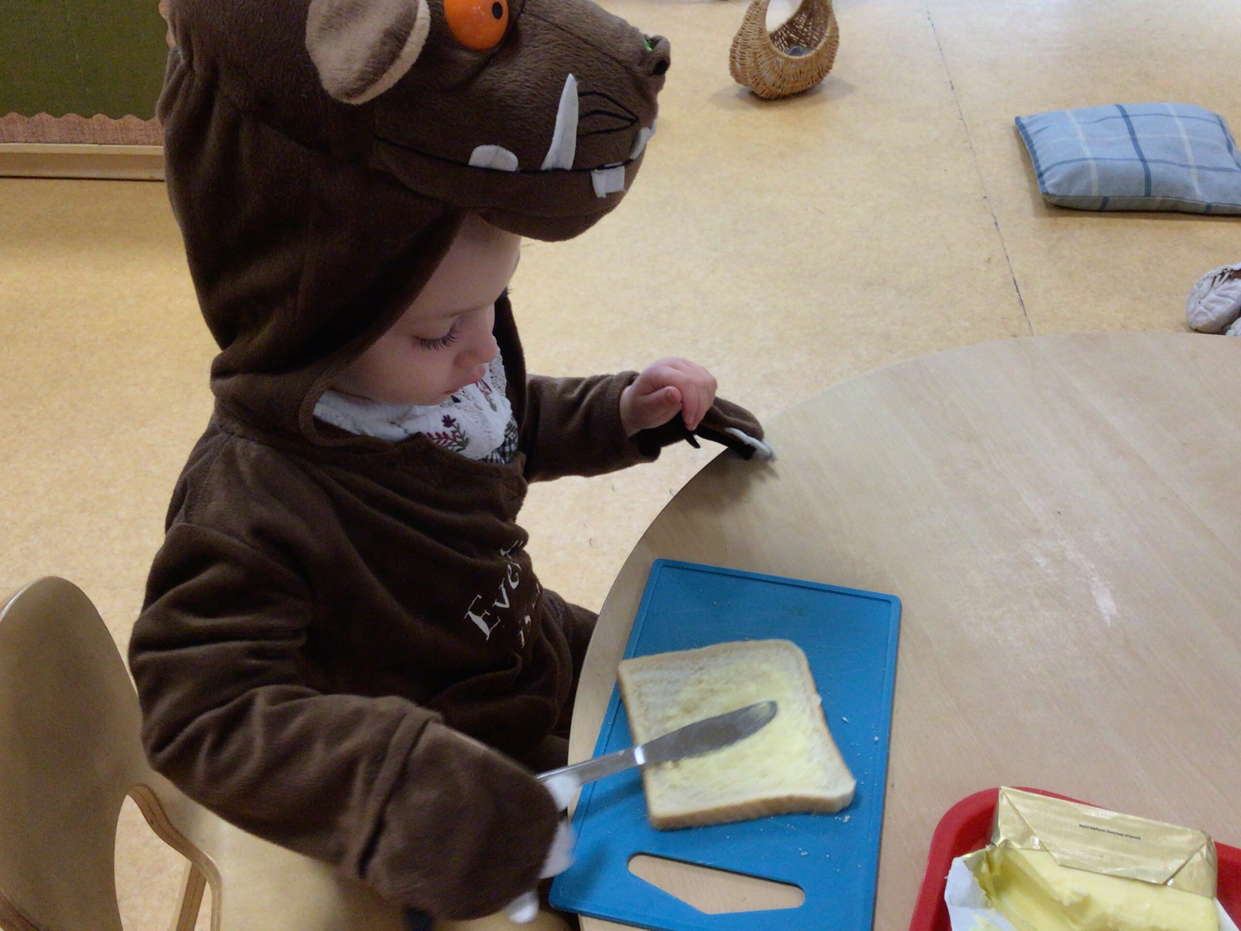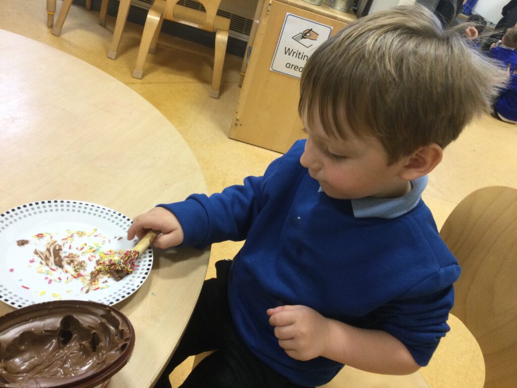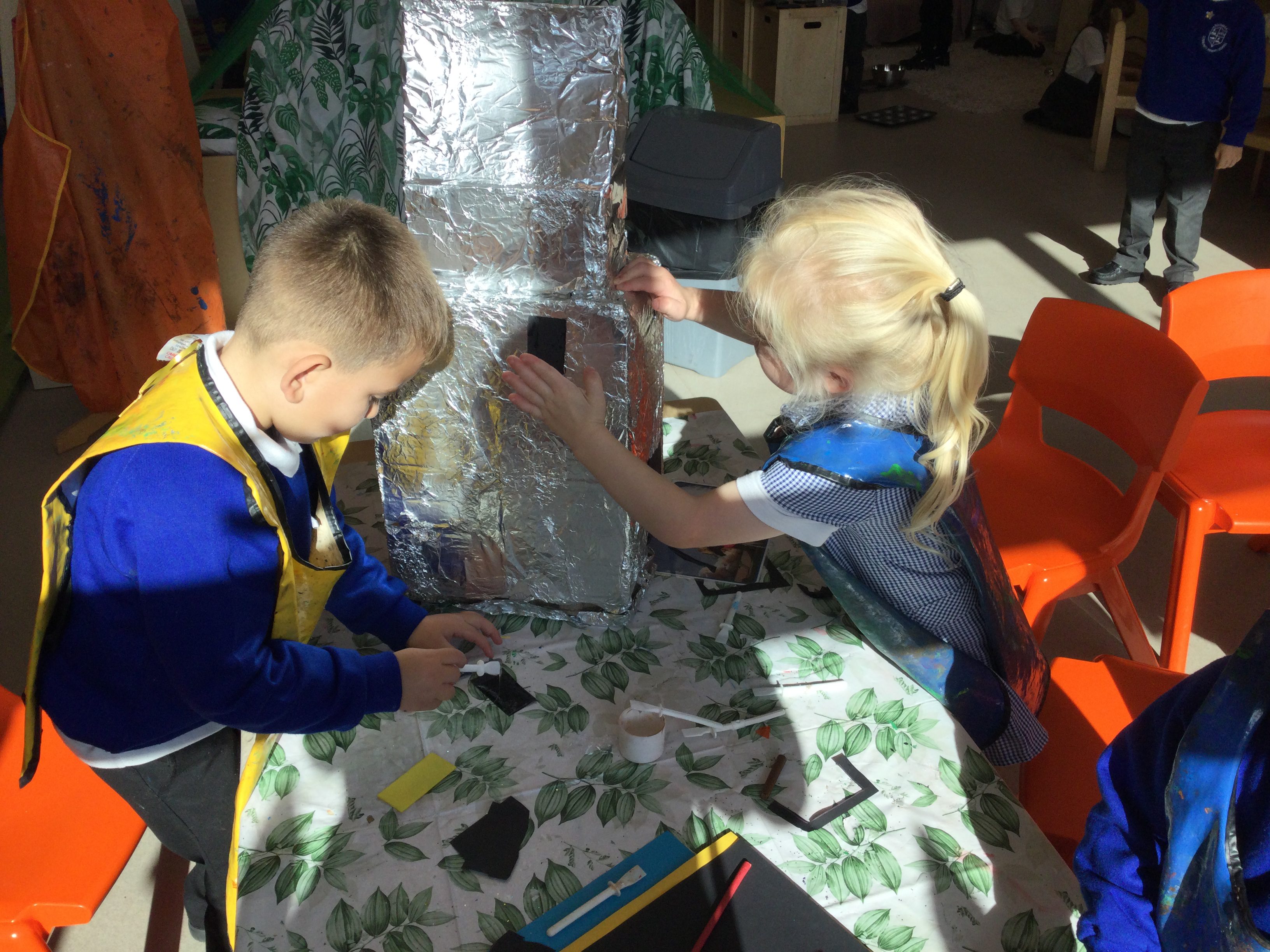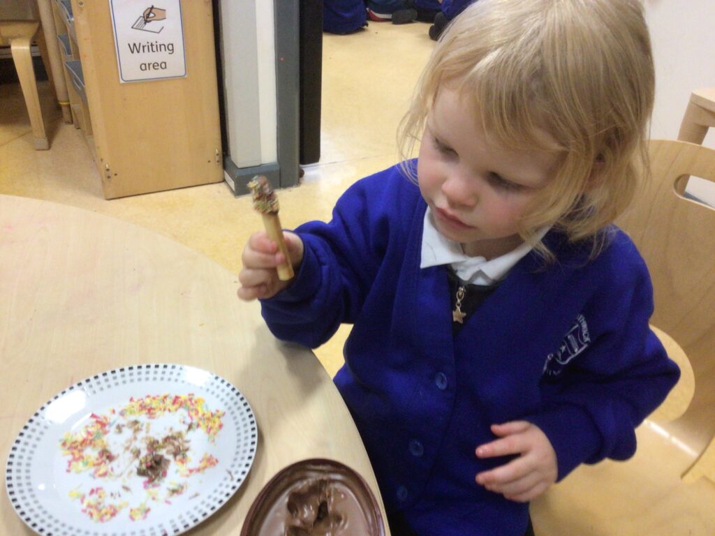 In nursery this term we have explored lots of ways to cut, attach and change or models and designs. We have used different types of glues, tapes and fixings as well as muilt- media collaging. We have also been fantastic chefs, making sandwiches for our afternoon tea and chocolate sparklers to celebrate bonfire night.