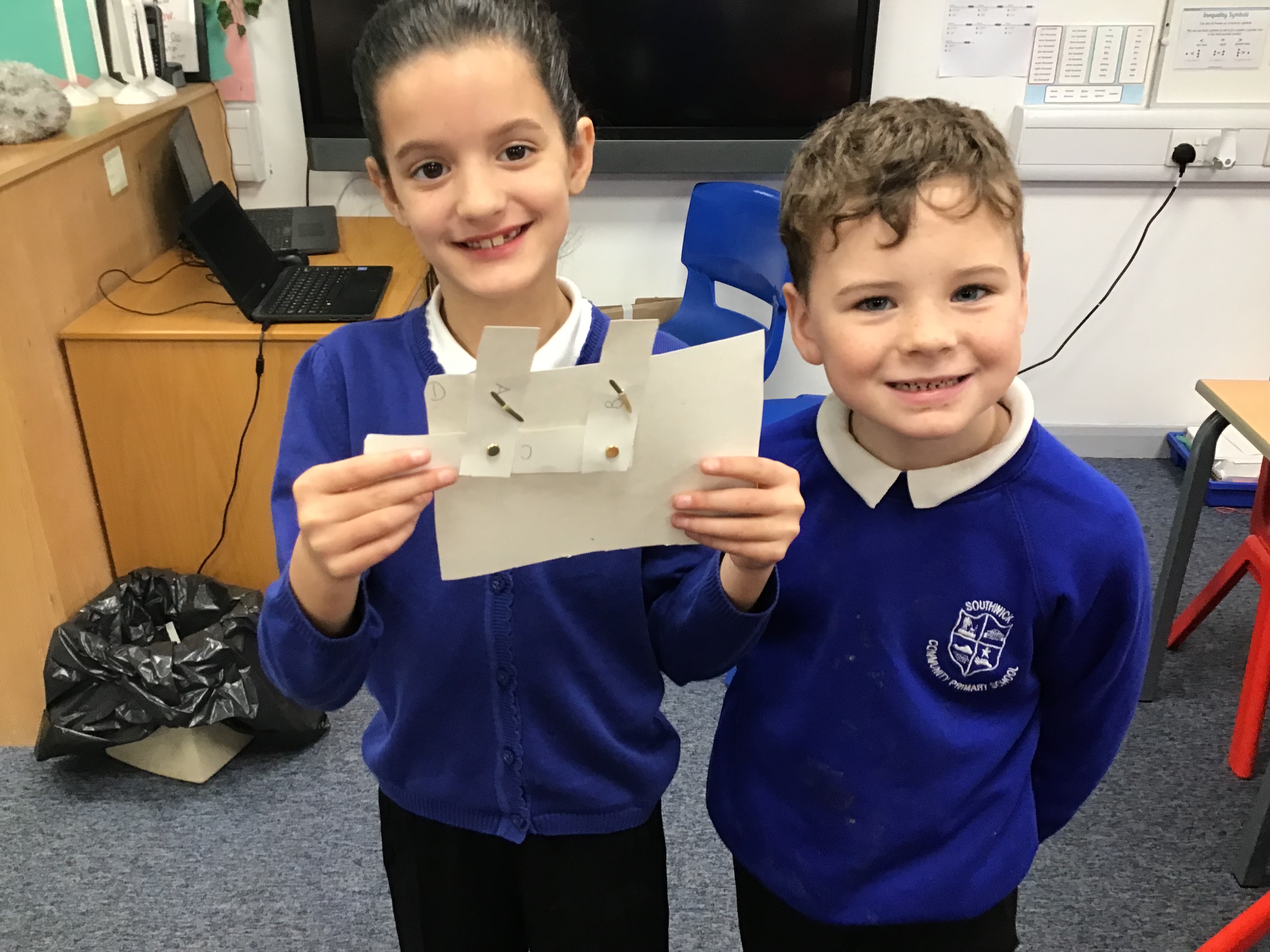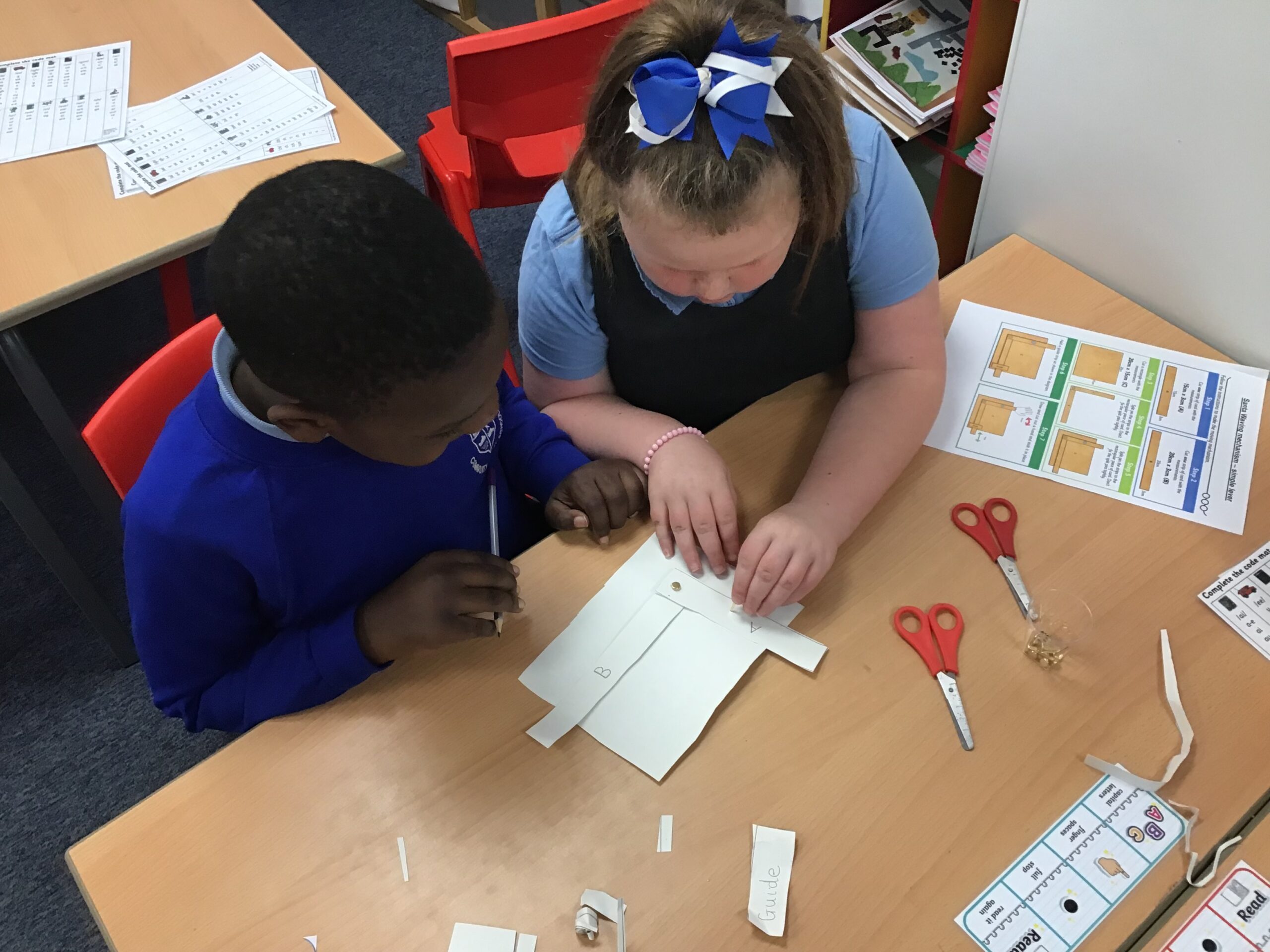 In year 3 we have been exploring levers and linkages. We explored and made a simple lever and a parallel linkage lever. We used our knowledge to then design and make a Christmas card using our chosen lever. We created a waving Santa using a simple lever and flying reindeers using a parallel linkage lever.