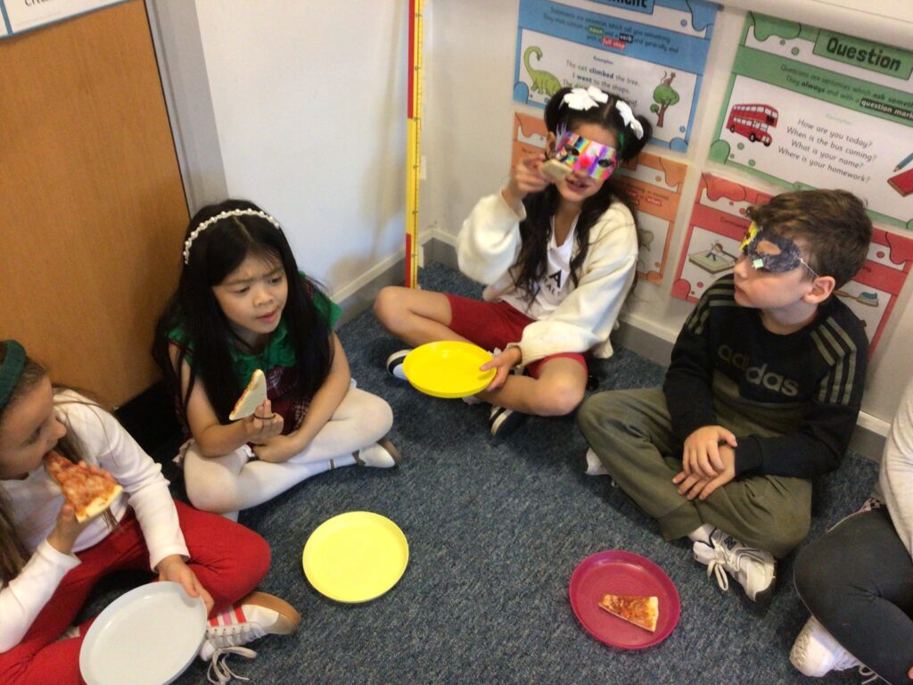 After, we made our very own Venetian masks. After dinner, we had an Italian food tasting session where we tasted pizza, mozzarella, olives and salami. The children were very brave and tried foods they hadn’t tasted before.