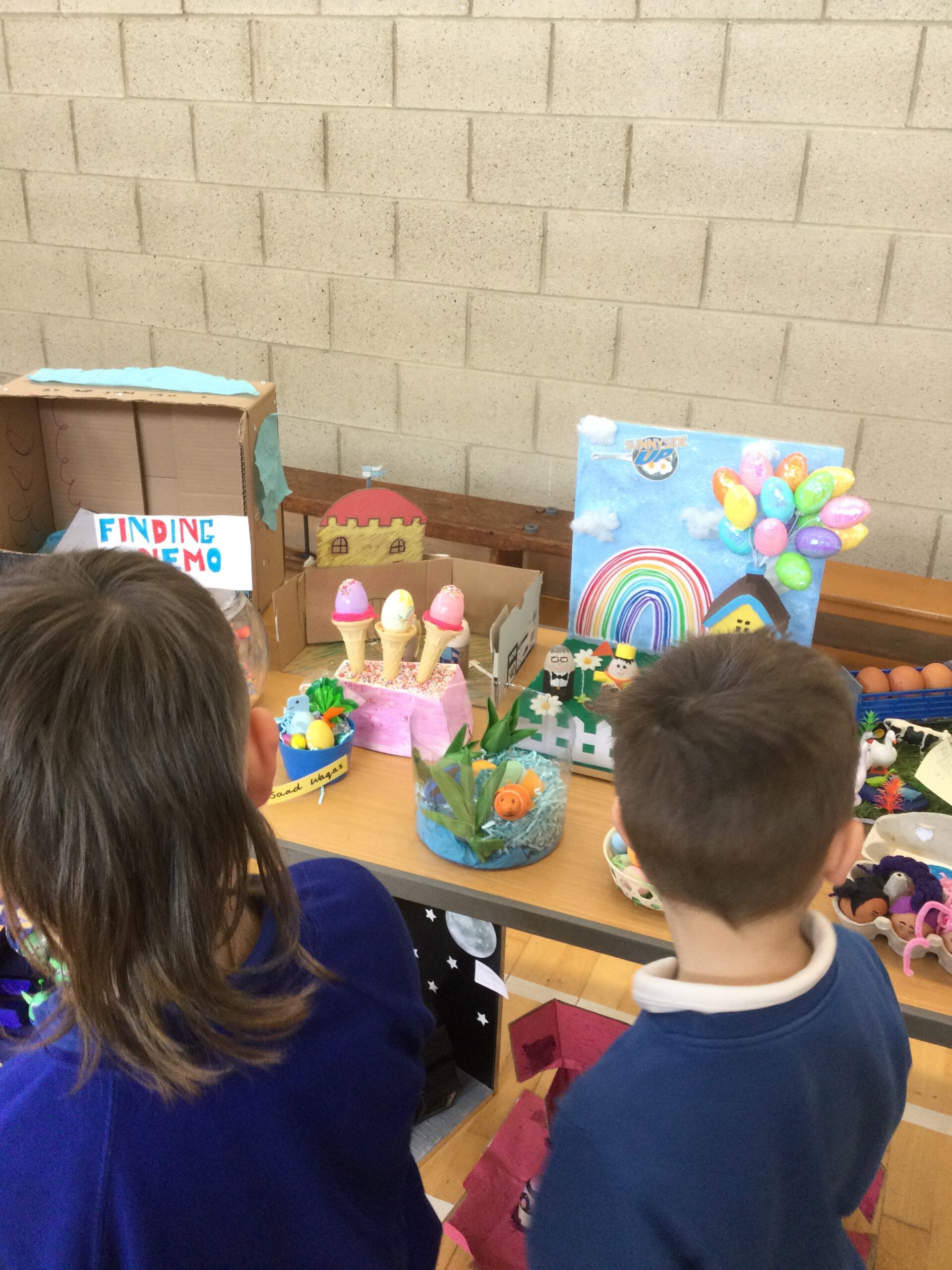 We also enjoyed taking part in some exciting Easter activities in school. We brought in our Easter egg competition entries and went down to the hall to admire everyone’s creative designs – there were some amazing efforts! 🥚