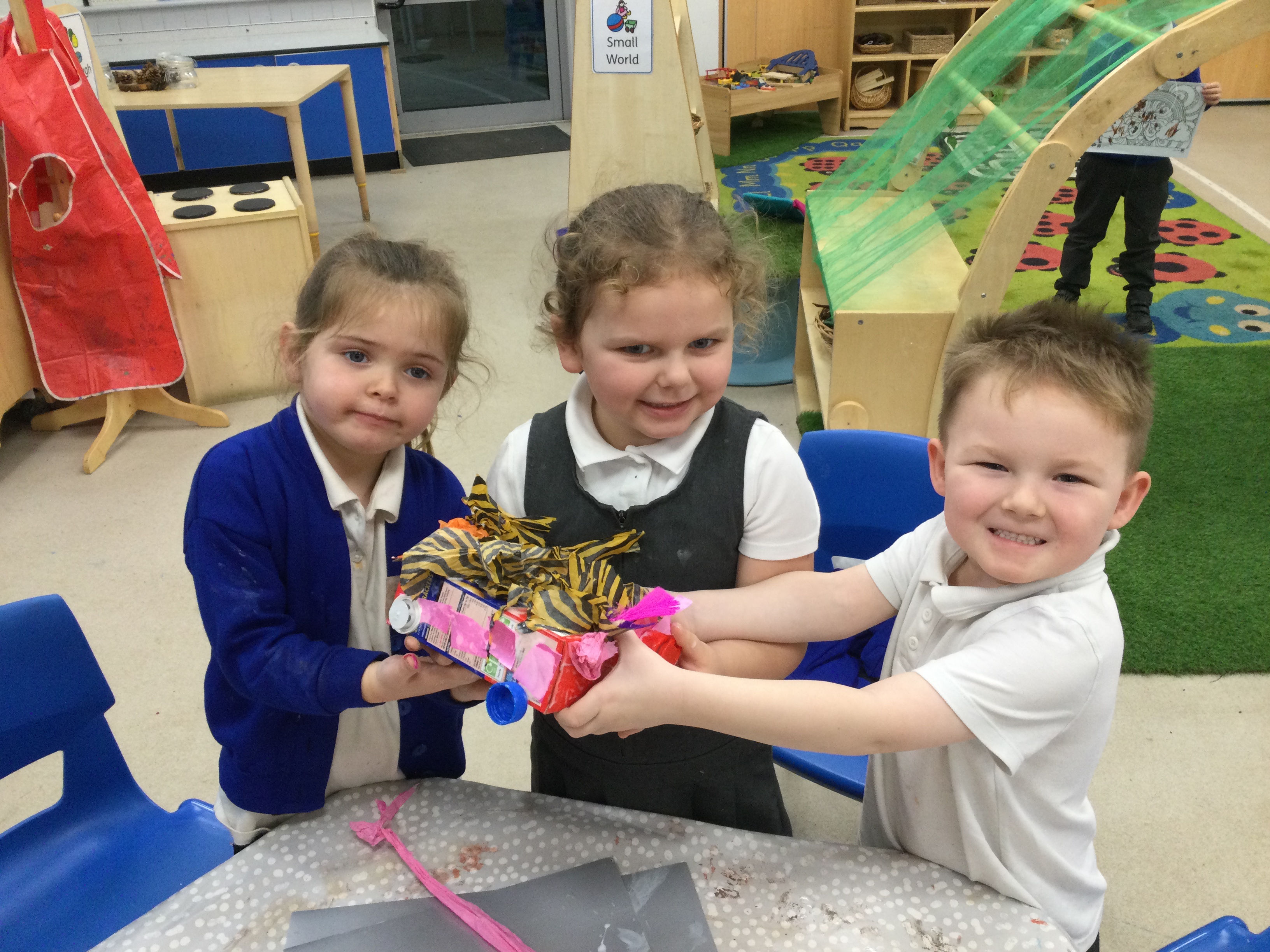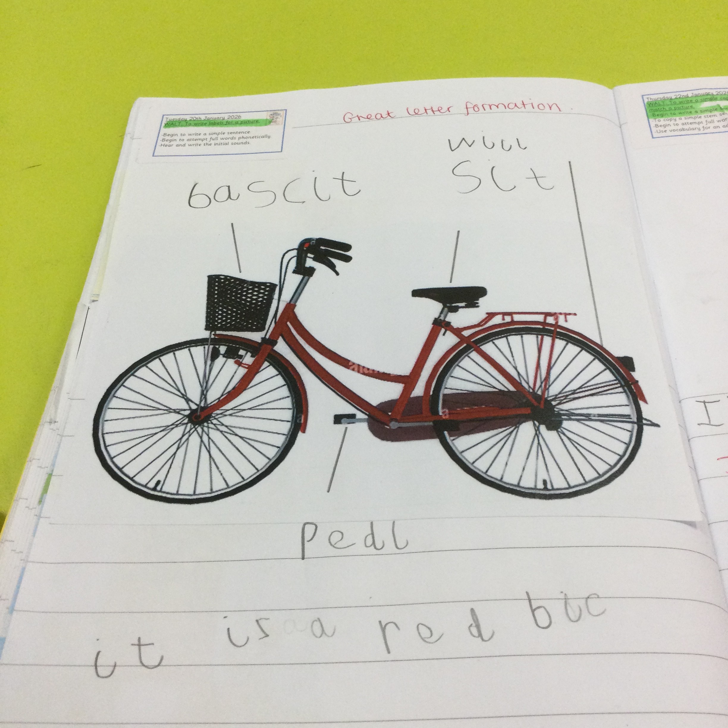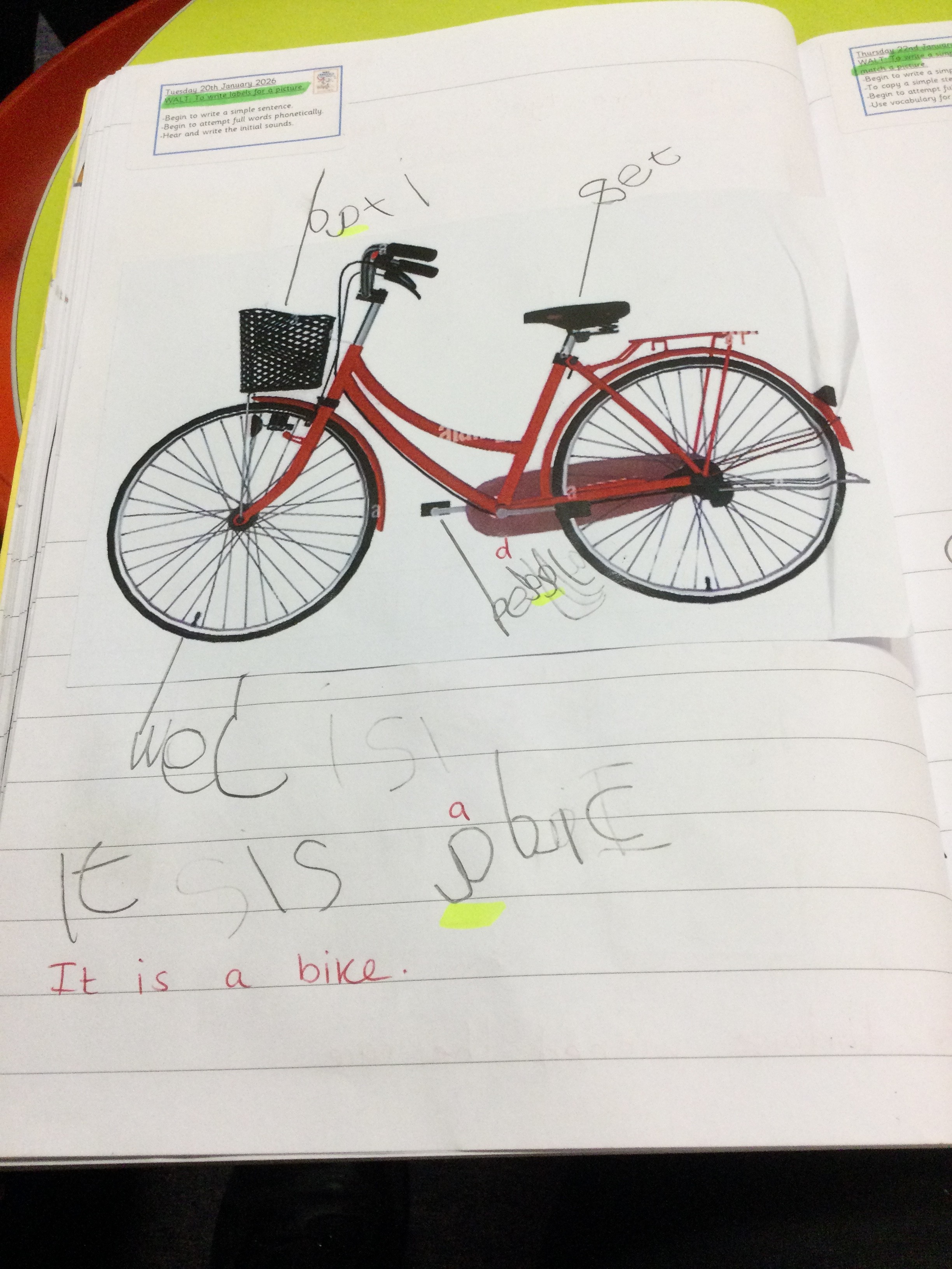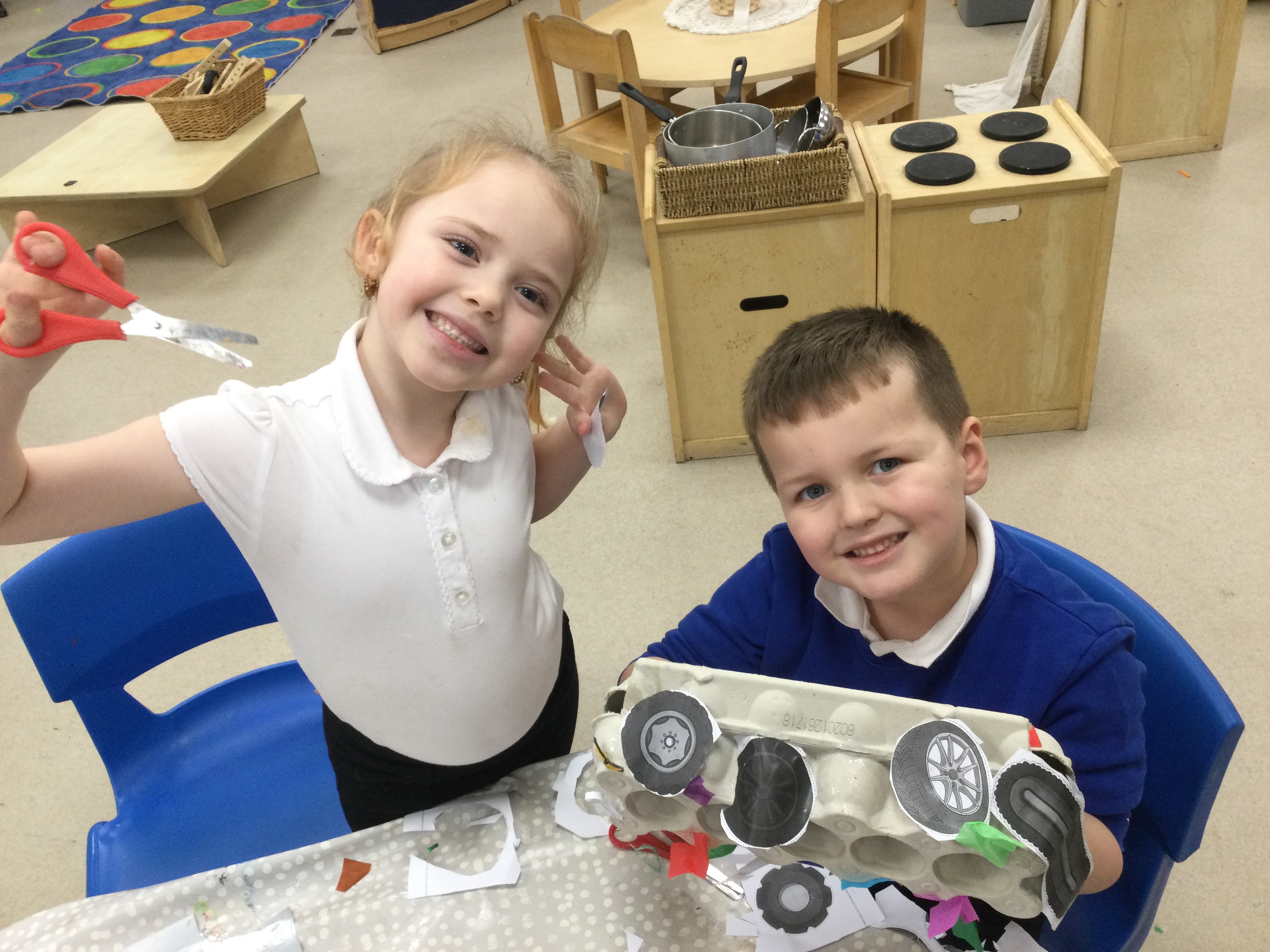 This week, our enquiry “How Does It Move?” focused on vehicles with wheels and how wheels help things to move. We read the story Mrs Armitage on Wheels and talked about the different parts of a bike. The children labelled the parts and shared ideas about new items they could add.