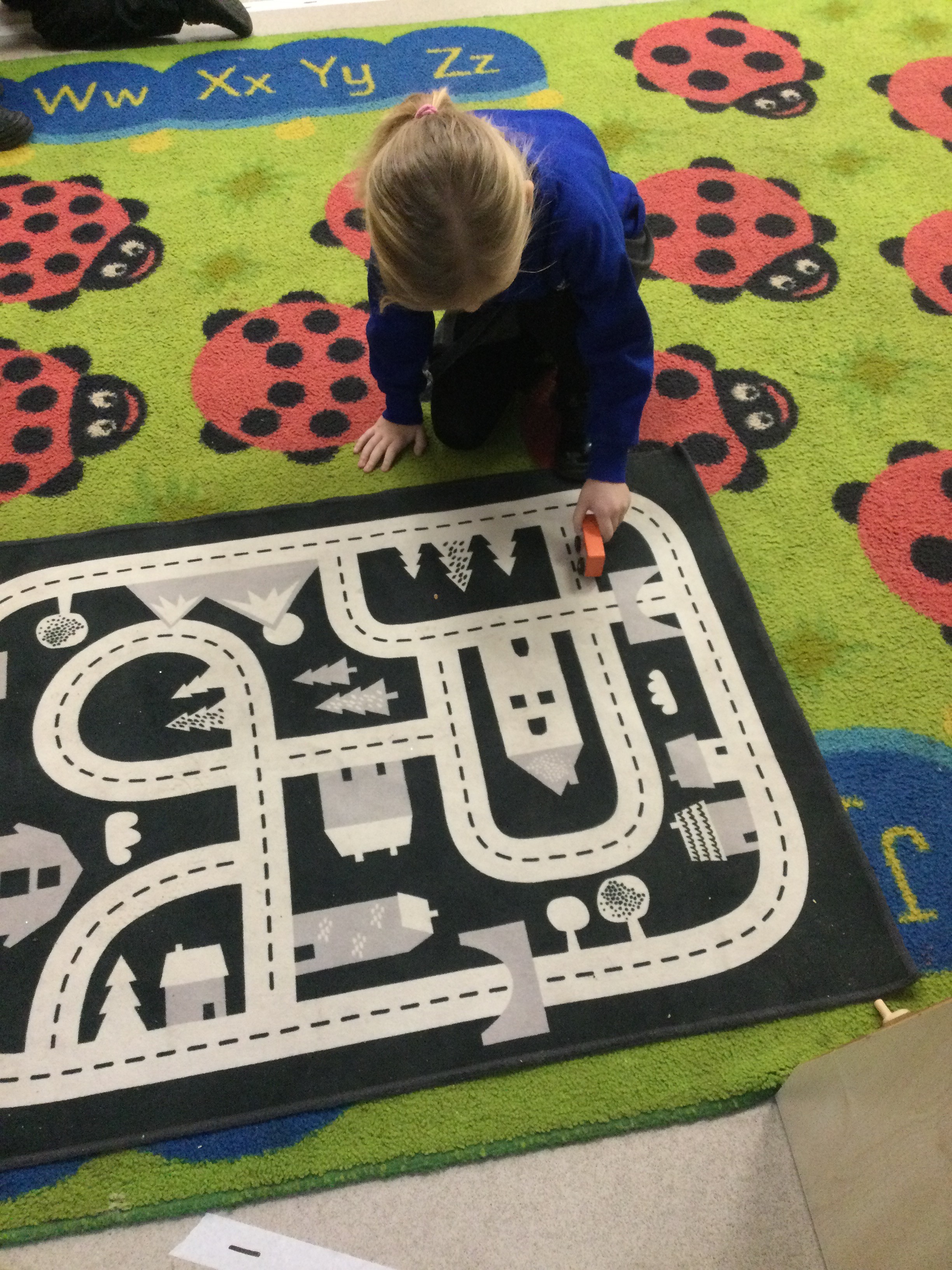 The children continued their learning in small world play, where they explored cars and talked about how they move in different ways.