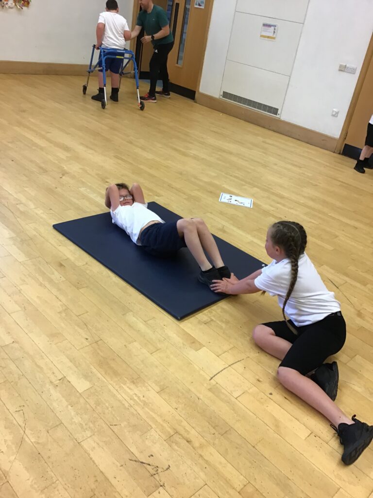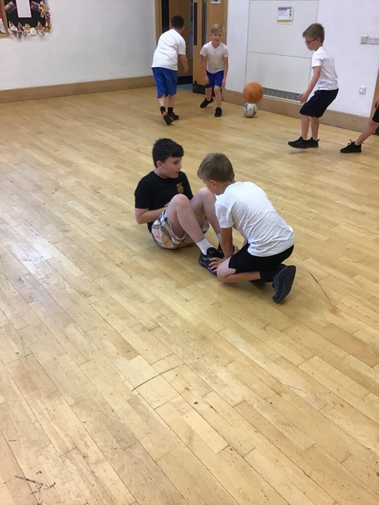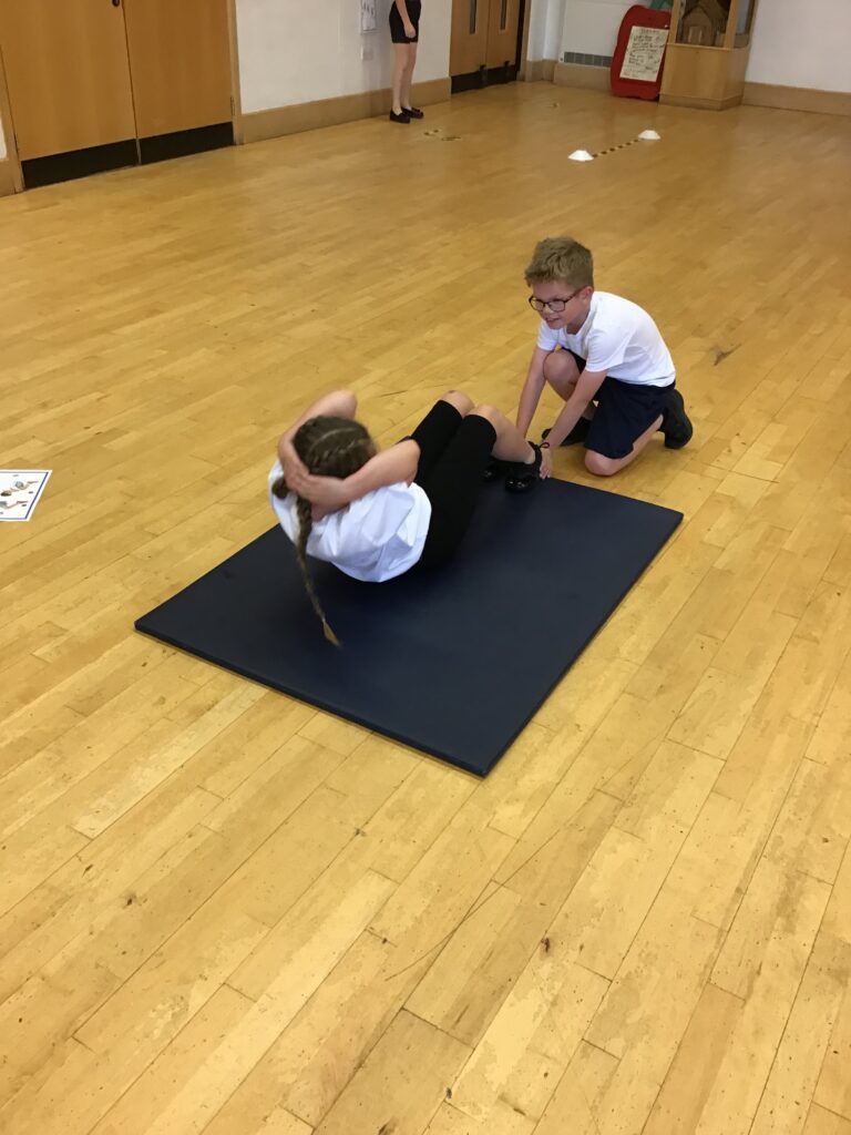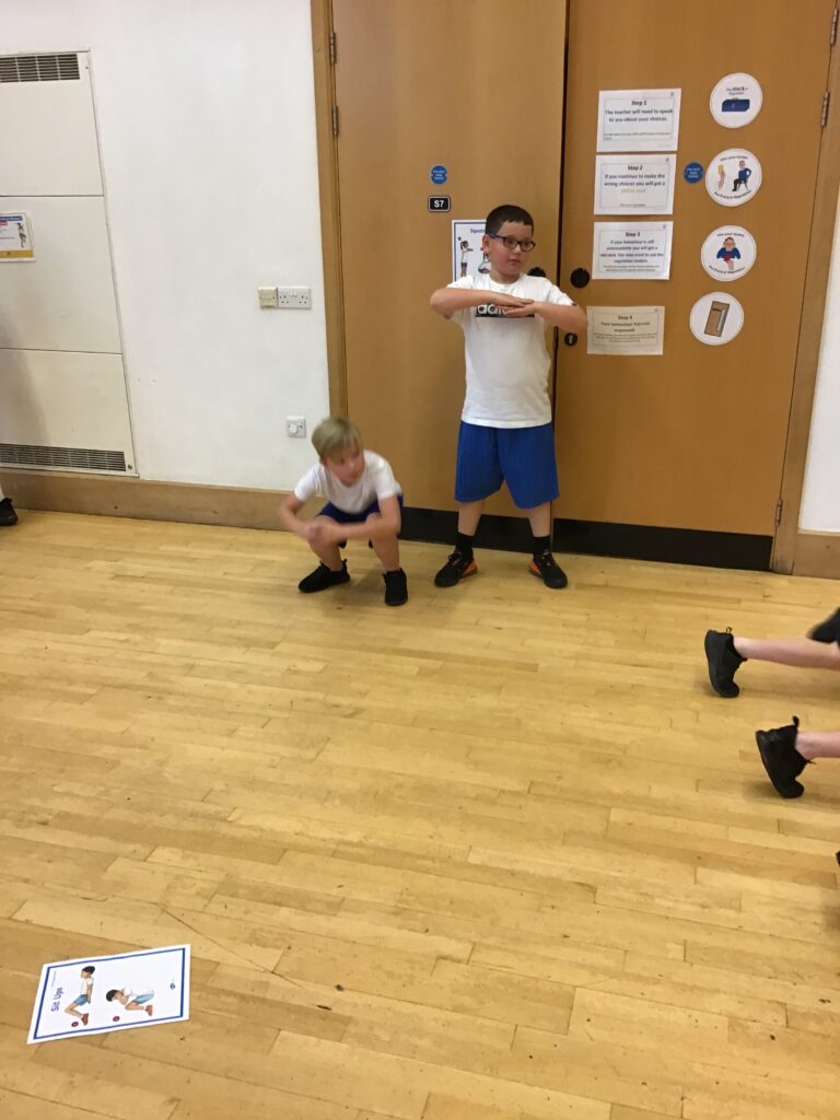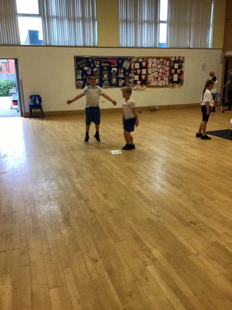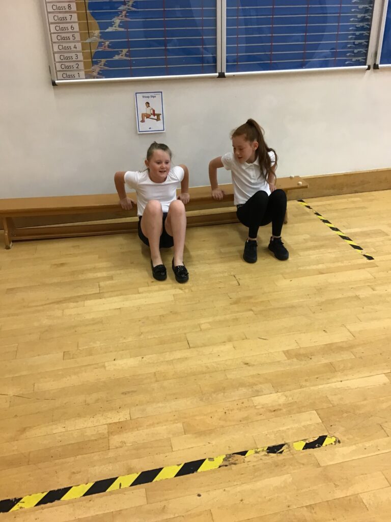 Take a look at us in action during our P.E lesson today. We had a go at lots of different exercises. You could tell how hard we worked when we realised we’d left sweat marks on the floor!