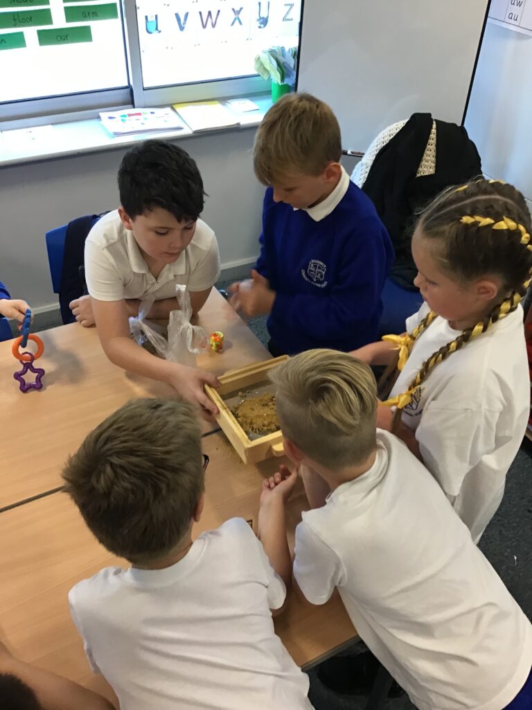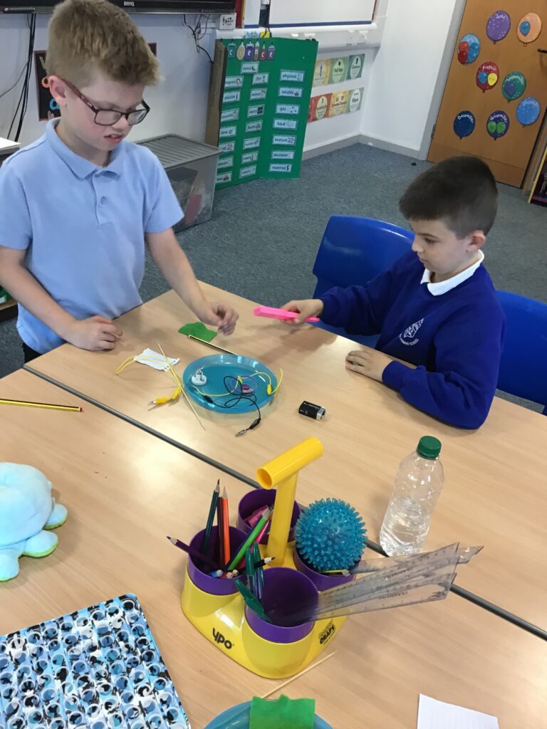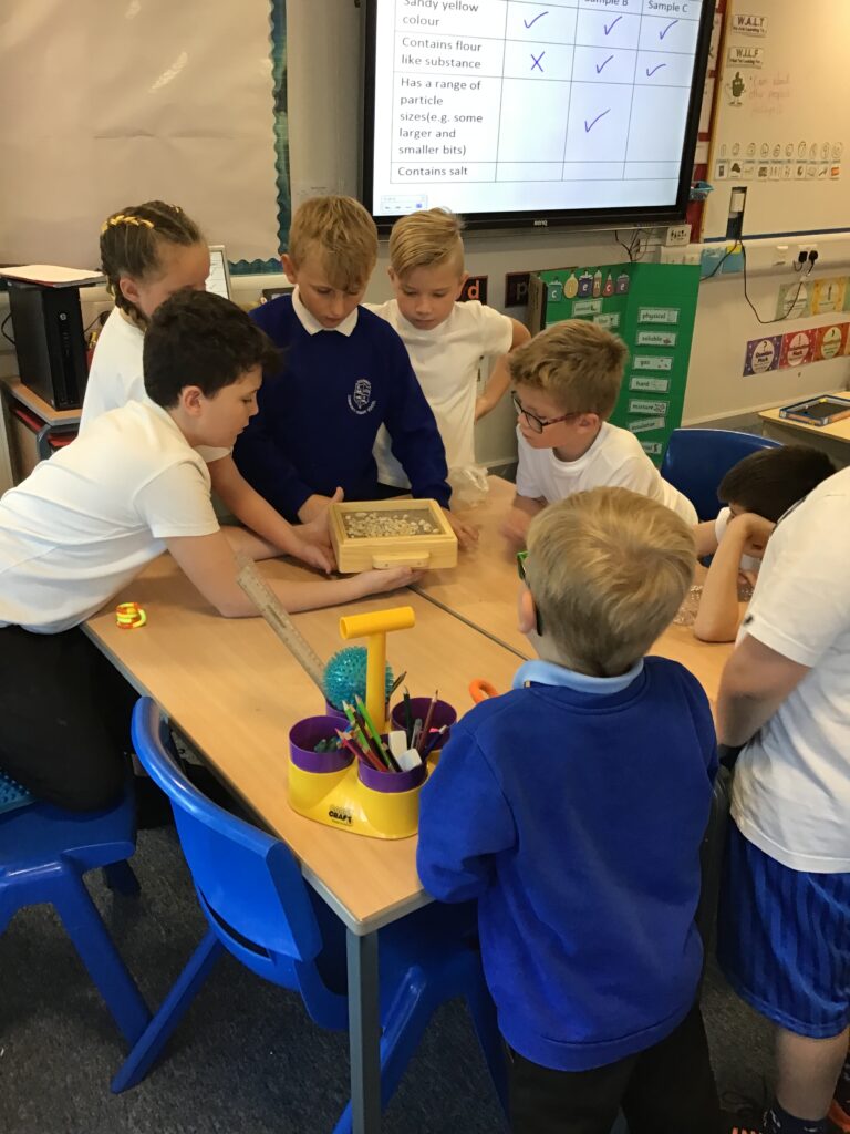 In science today we were given a range of materials to test based on their properties. We investigated how hard they were, how flexible they were, if they were magnetic, if they were electrical conductors and whether or not they were transparent. We were amazing at using scientific vocabulary like waterproof, rough, flexible, strong, absorbent, magnetic, opaque and electric conductor.