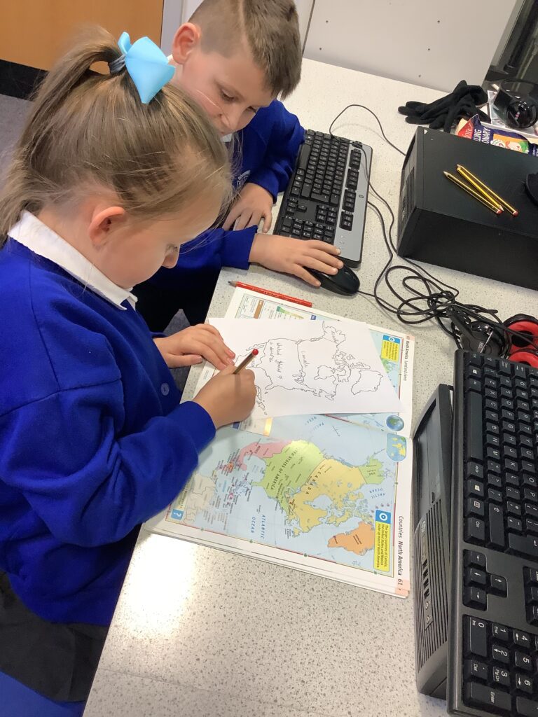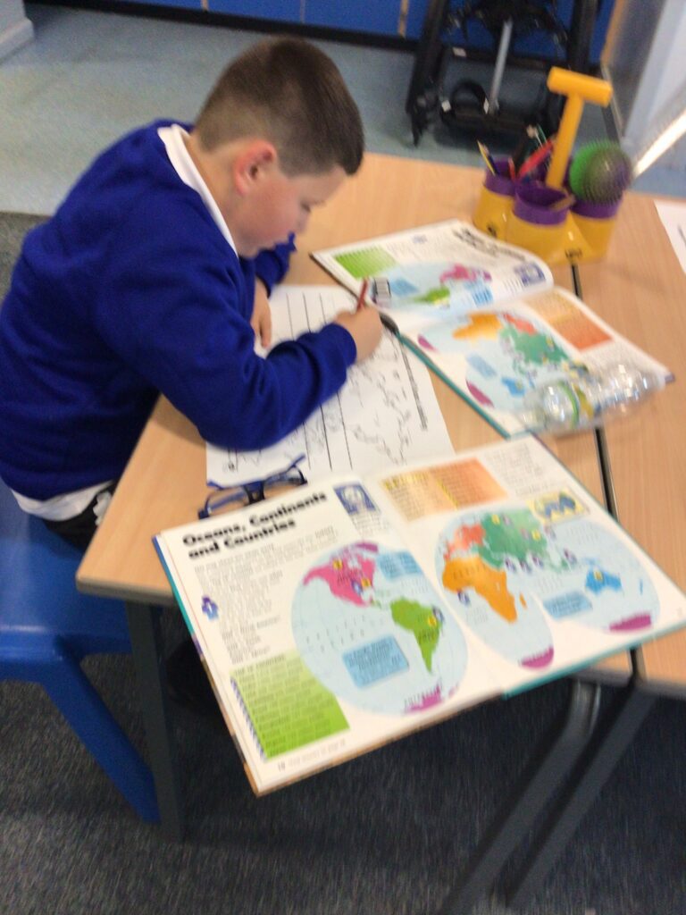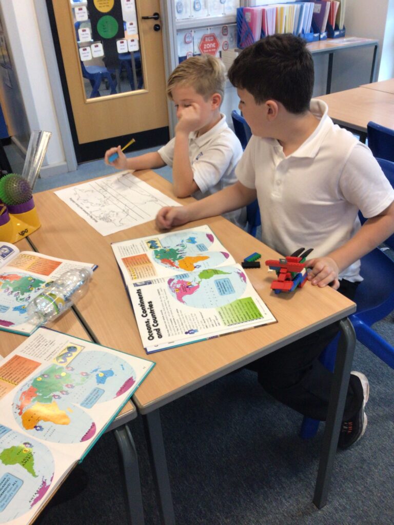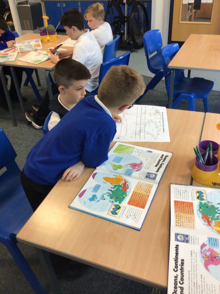 In our Geography sessions we have started to look at how our Earth is made up and divided. We have learnt about the seven continents and 5 oceans. We used maps and atlases to help us locate them on a world map.