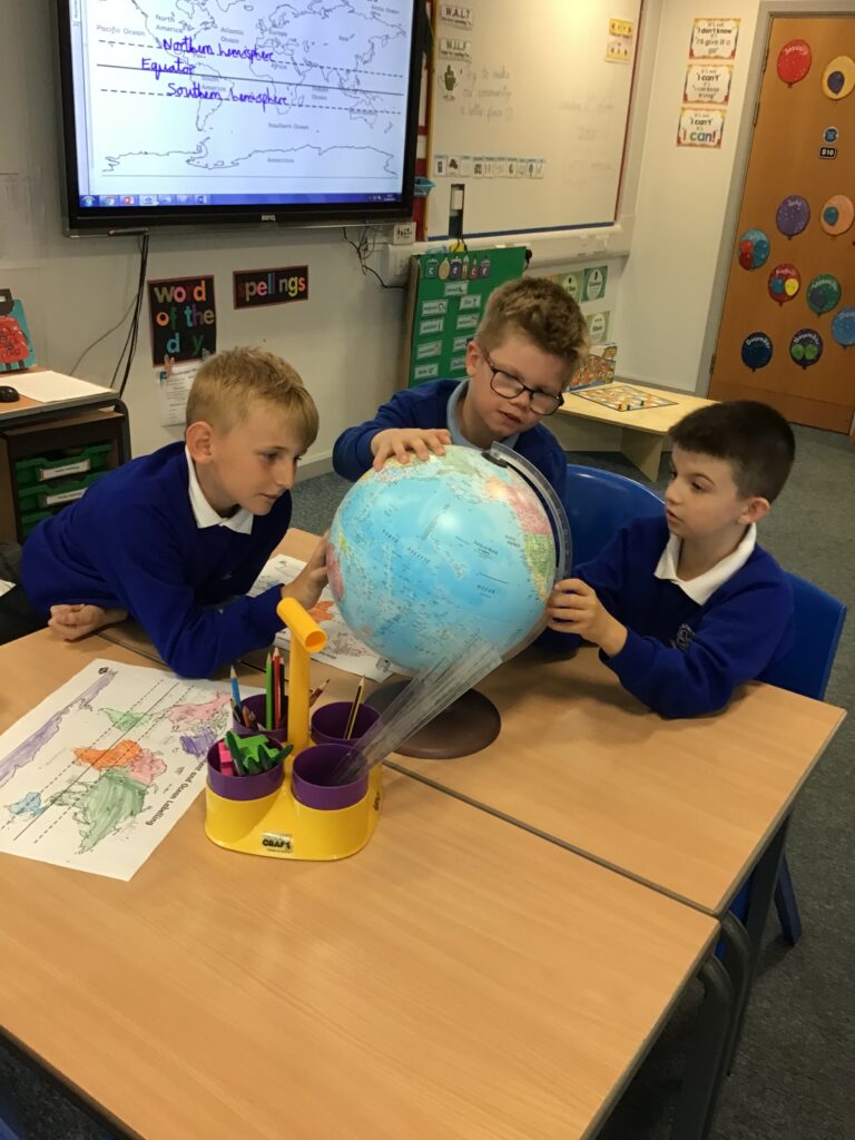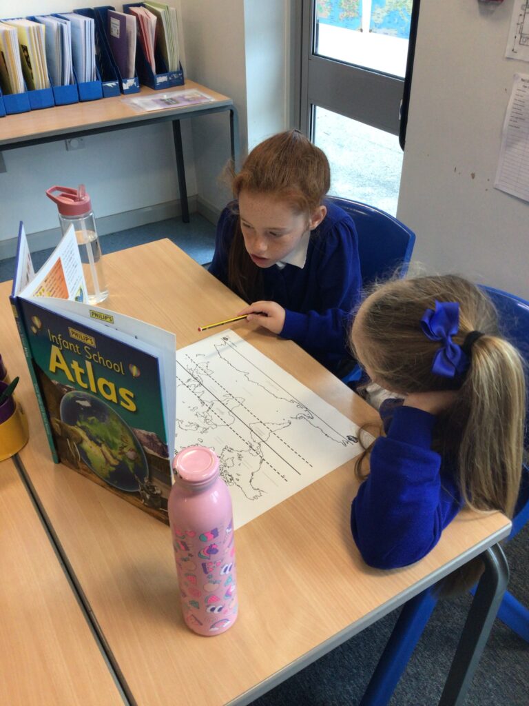 We have also started to learn about the equator, Northern and Southern Hemispheres, the Tropics of Cancer and Capricorn and the North and South pole. Take a look at us in action developing our map and atlas reading skills!
