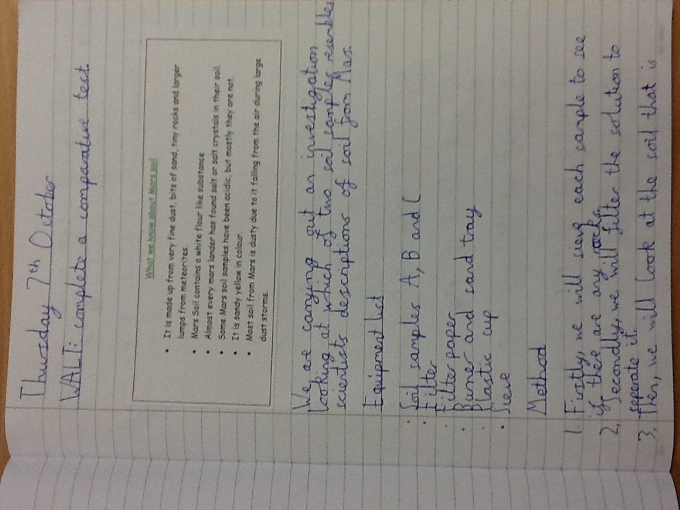 Space scientists hope that real samples of Mars soil will be brought back to earth from Mars, but in the meantime, we mimicked the work of space scientists using mock samples of soil sent. We had 3 different samples of mock soil to investigate. We acted like scientists to find out which sample best matched a description of Mars soil. We used sieving, filtering and evaporation to help us decide which sample was the best match to Scientists description of mars soil.