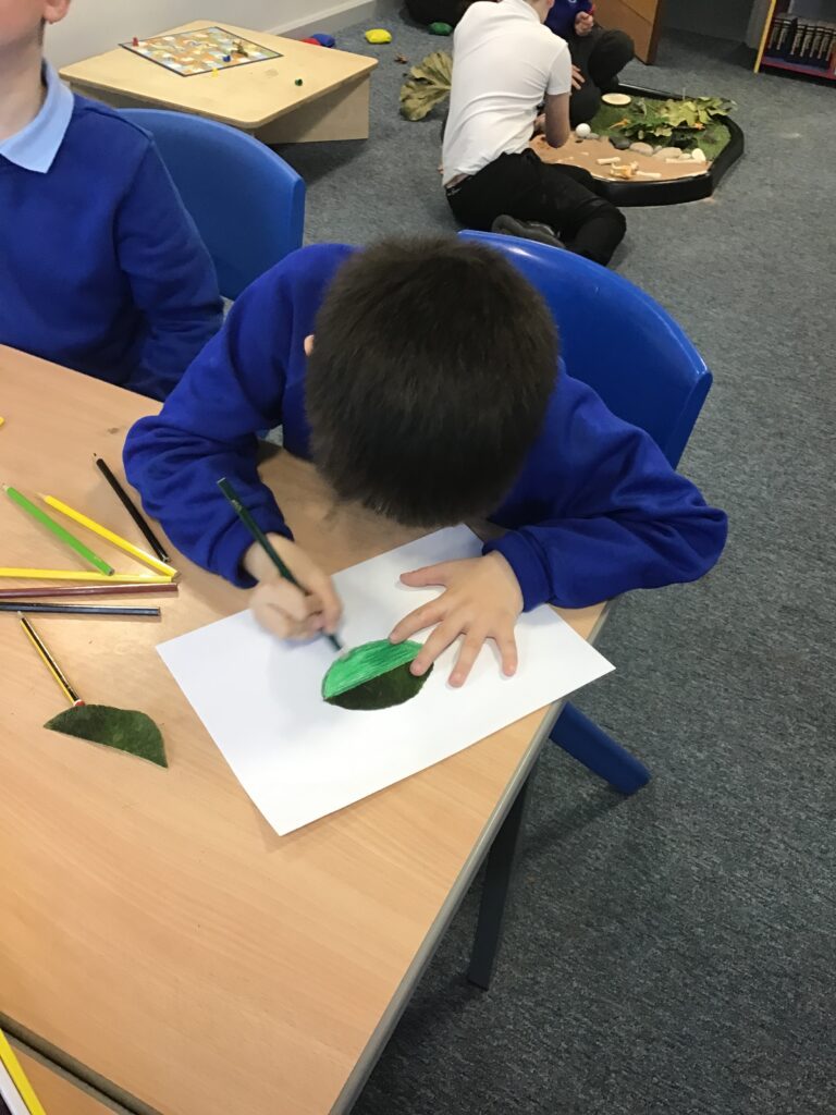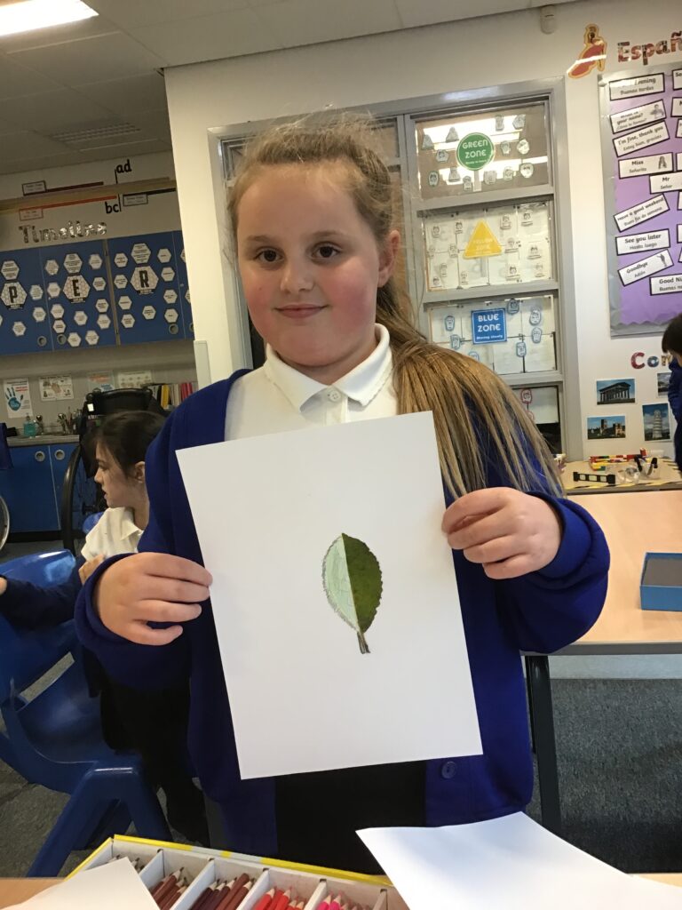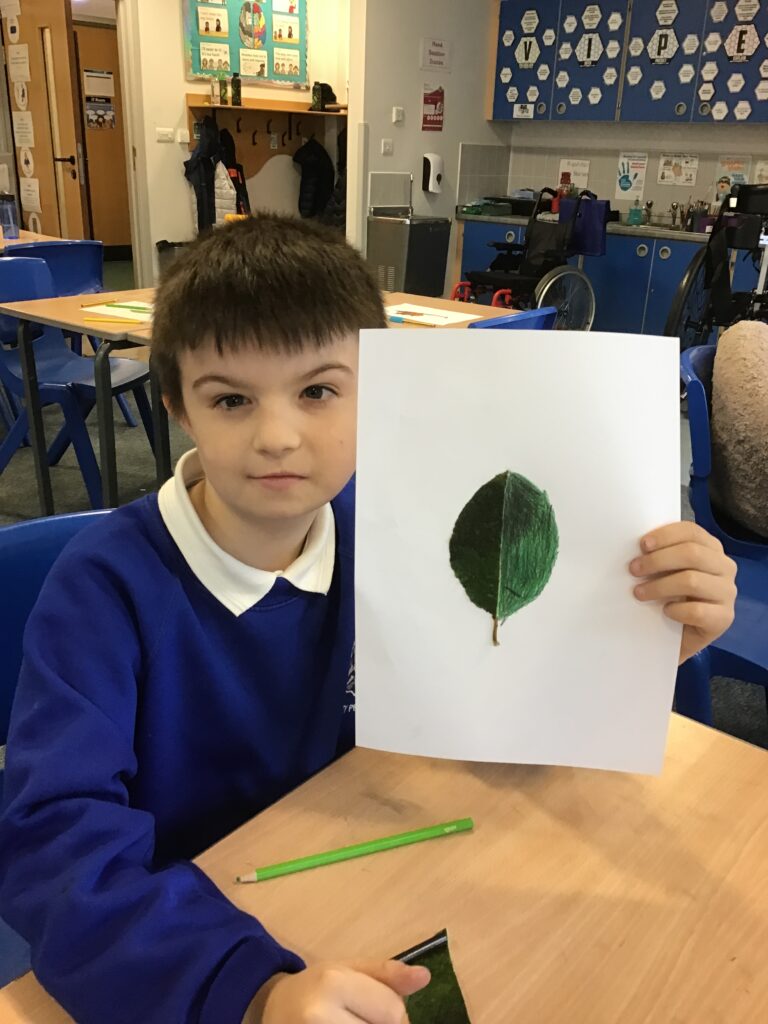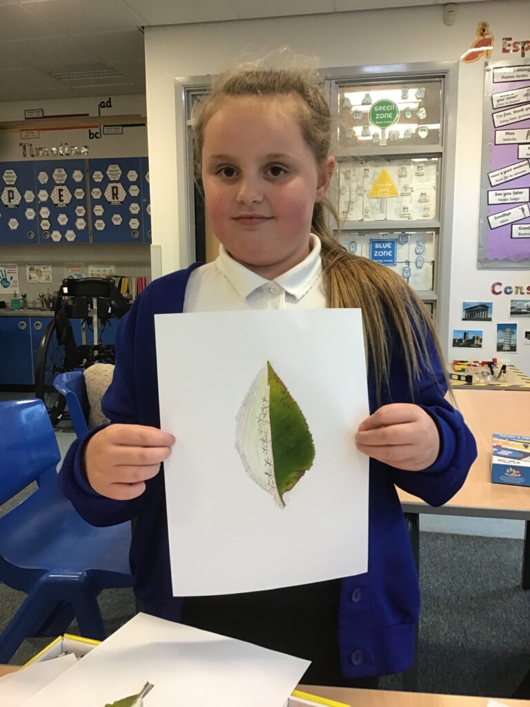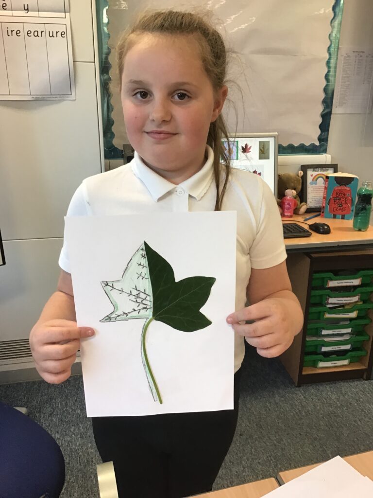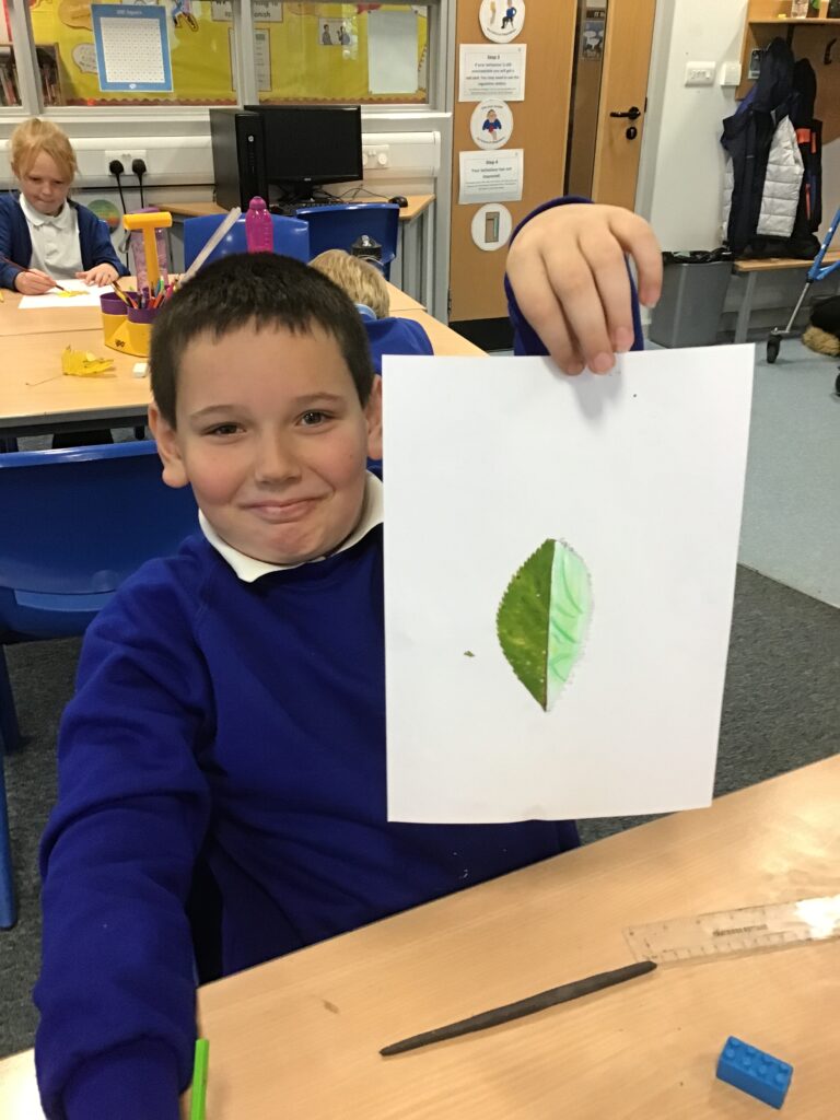 As part of outdoor classroom day we went outside on a nature hunt to collect different leaves of different shapes, sizes, colours and textures. We then chose our favourites to have a go at sketching. We cut our leaves in half and then sketched the other side of the leaf. We tried our best to pay very close attention to detail. Don’t they look great?