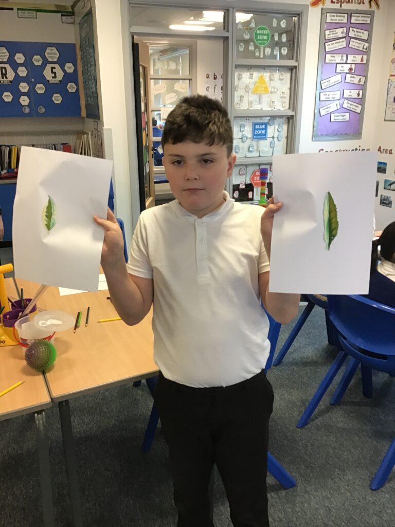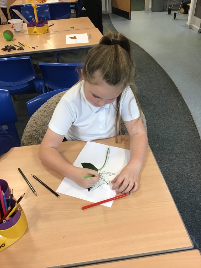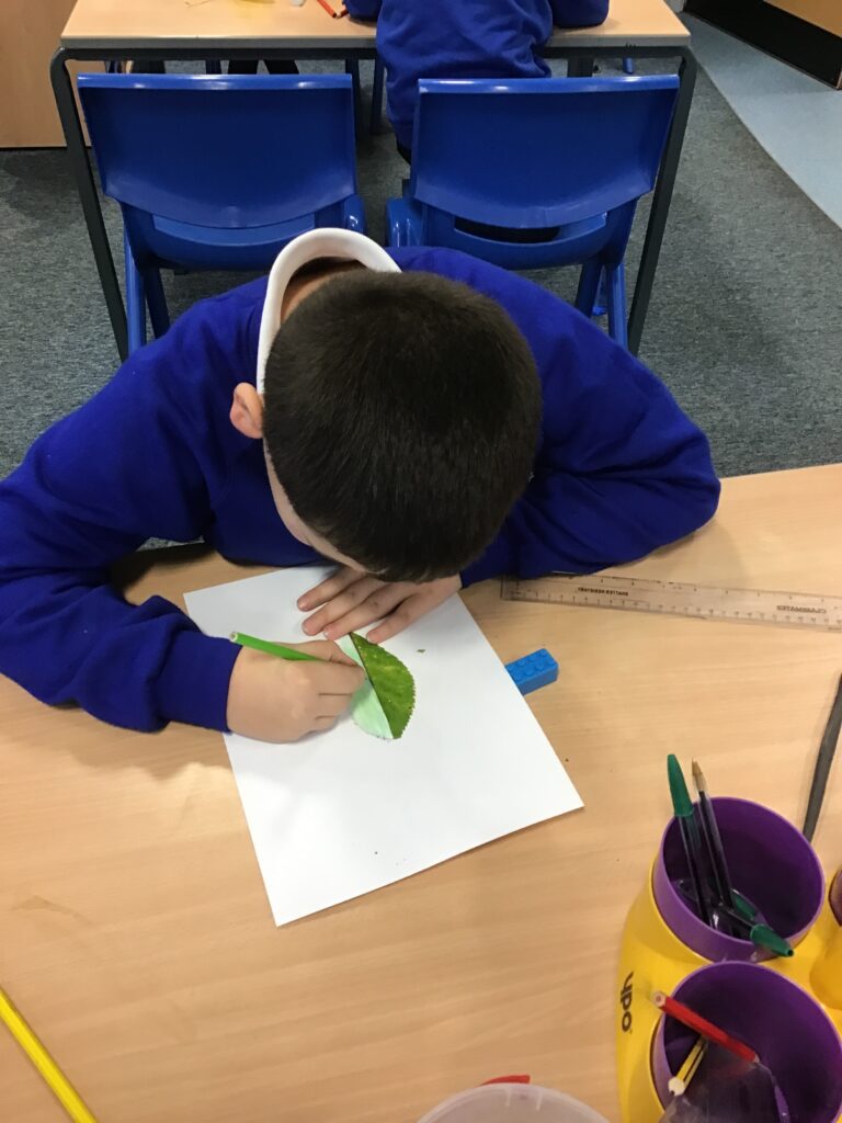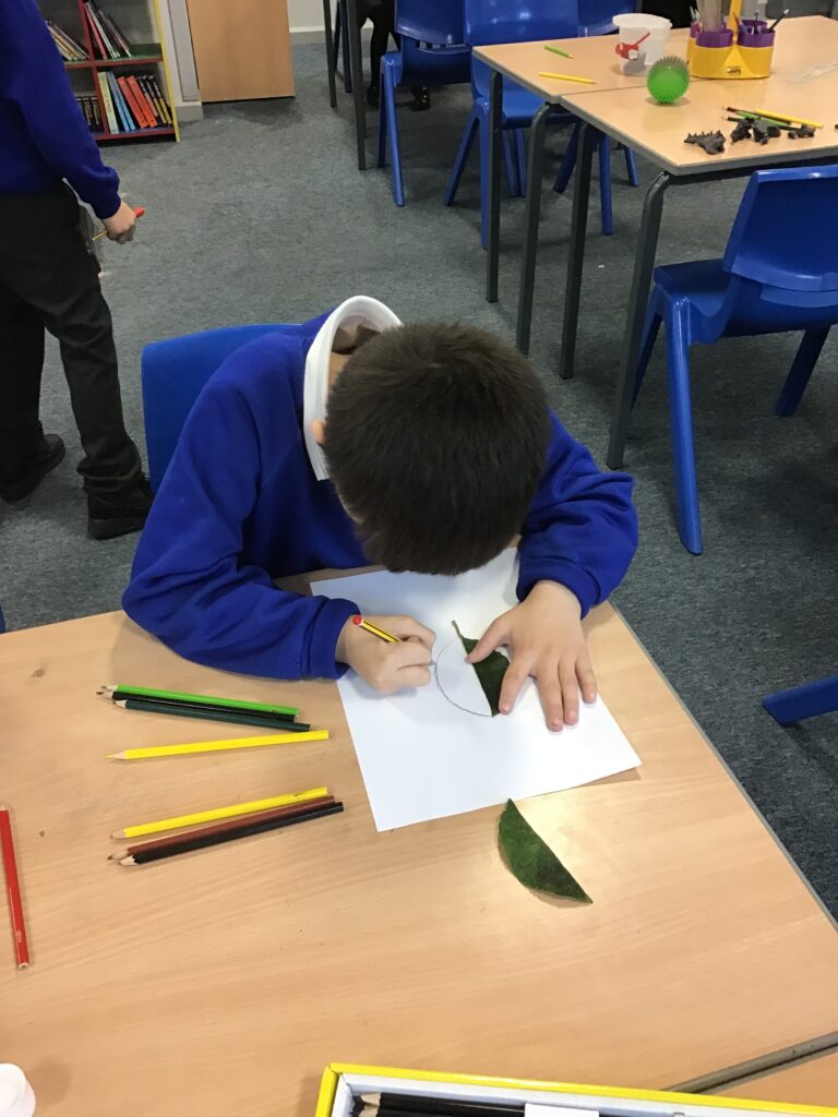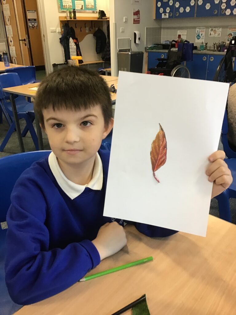 As part of outdoor classroom day we went outside on a nature hunt to collect different leaves of different shapes, sizes, colours and textures. We then chose our favourites to have a go at sketching. We cut our leaves in half and then sketched the other side of the leaf. We tried our best to pay very close attention to detail. Don’t they look great?