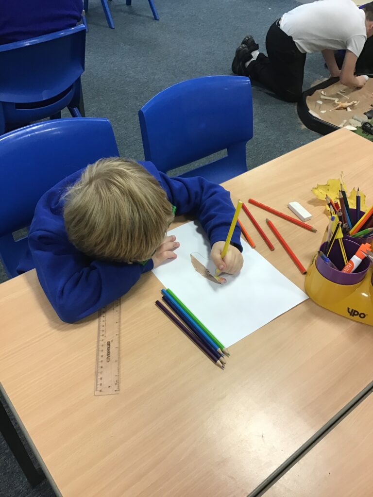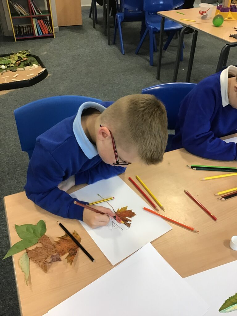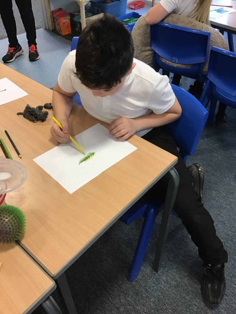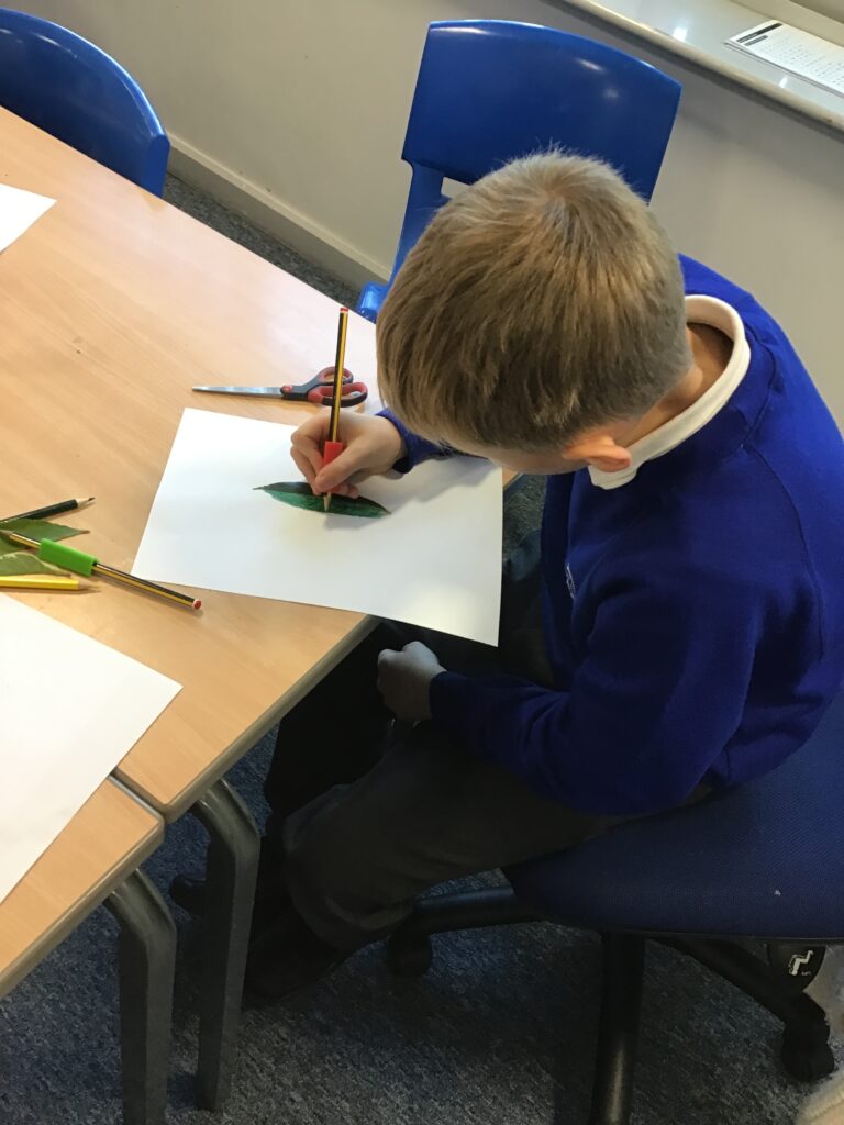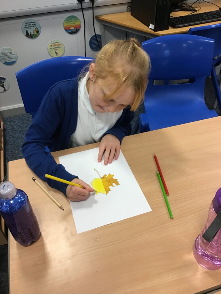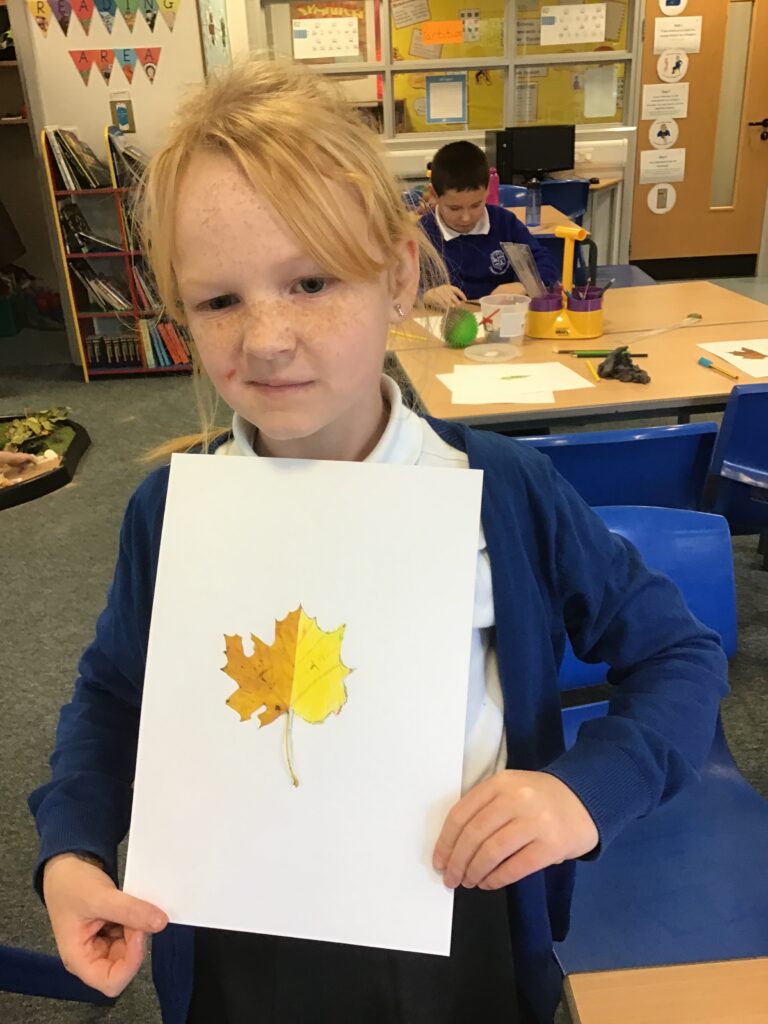 As part of outdoor classroom day we went outside on a nature hunt to collect different leaves of different shapes, sizes, colours and textures. We then chose our favourites to have a go at sketching. We cut our leaves in half and then sketched the other side of the leaf. We tried our best to pay very close attention to detail. Don’t they look great?
