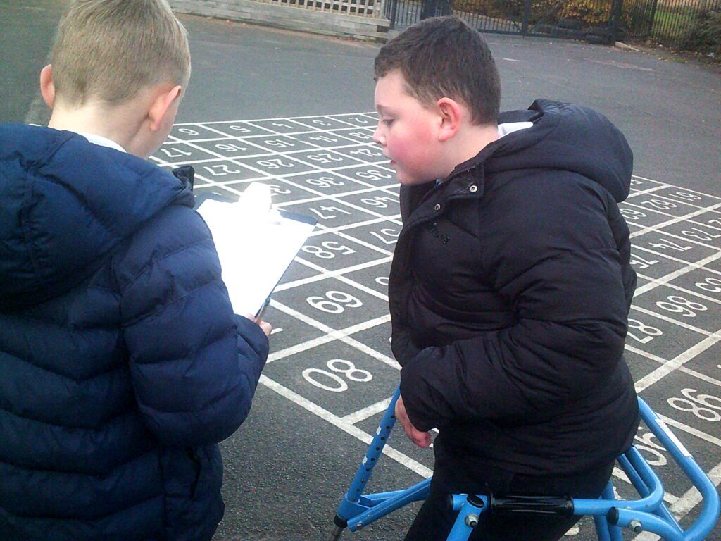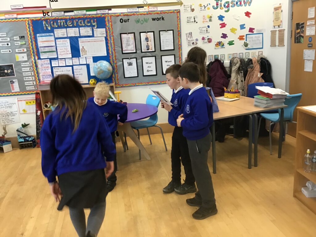 On Thursday 4th November it was outdoor classroom today. Mrs Barker and Miss Slater’s maths groups took their lessons outdoors. Both groups went on a times table hunt around the school yard. We had to solve the answers to different times table calculations and then search the yard for the corresponding letters. This then allowed us to decipher a secret message… Multiplication Masters!