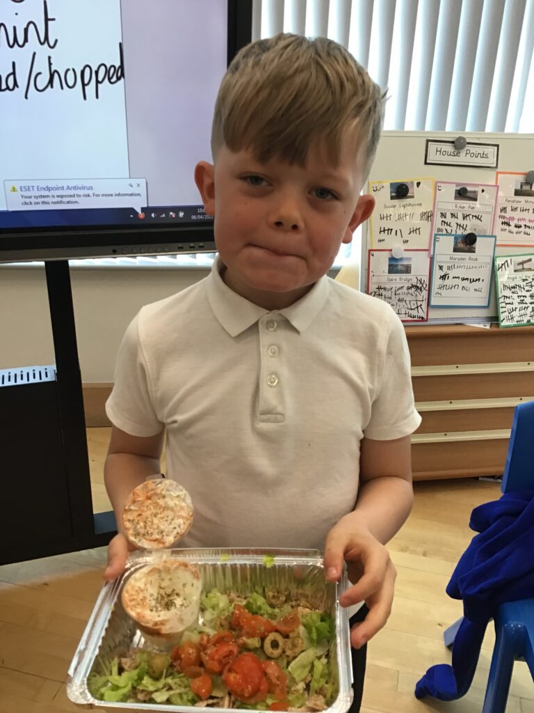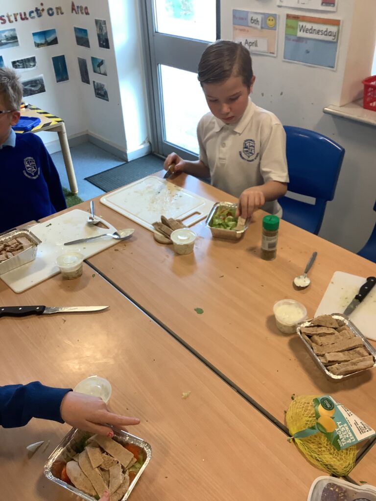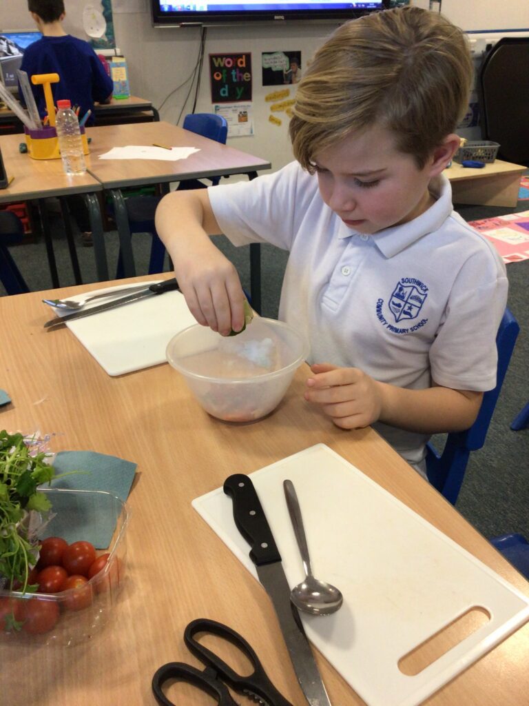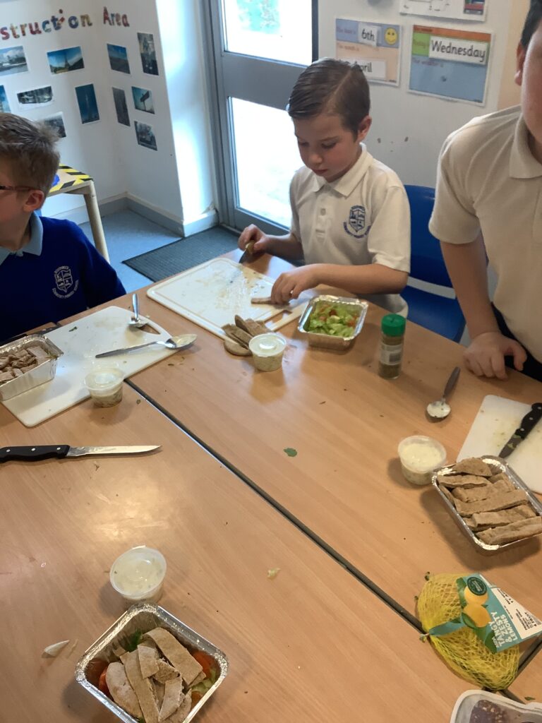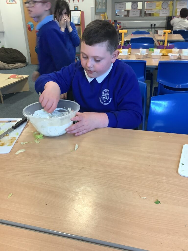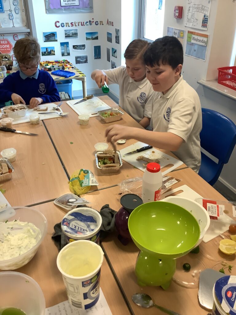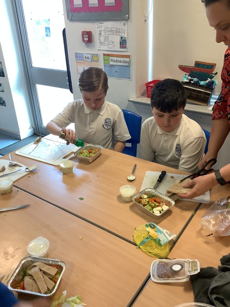 In History we have been studying the Ancient Greeks.  As part of this work we have looked at Greek food and carried out taste testing. We enjoyed making our own Greek salads and tzatziki, which we flavoured with our choice of herbs and spices.  We then brought them home to share with our family as part of our 5-ways-to-wellbeing (connecting).