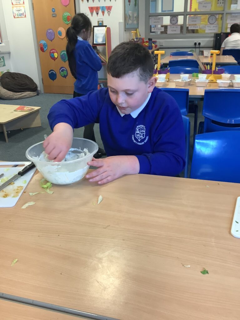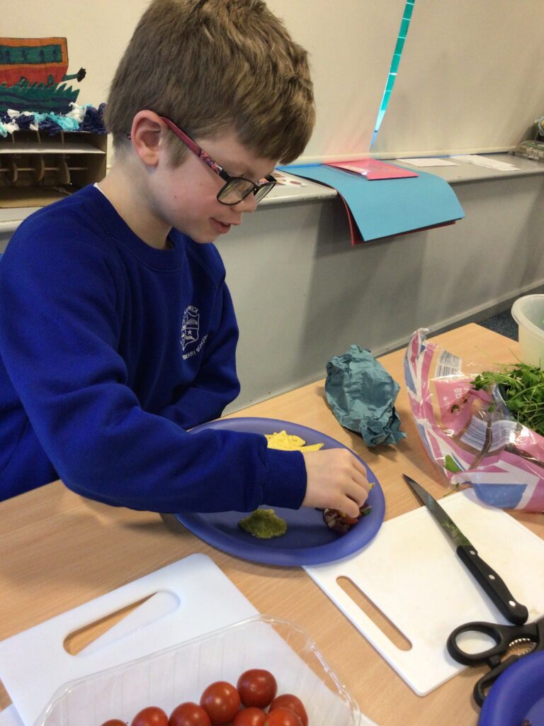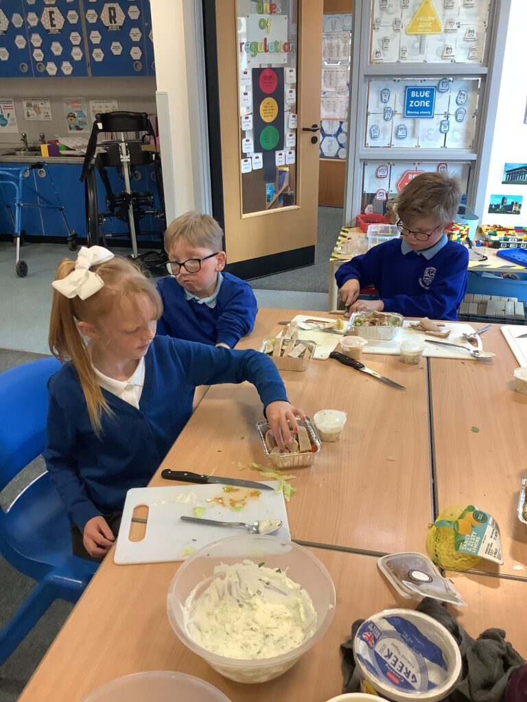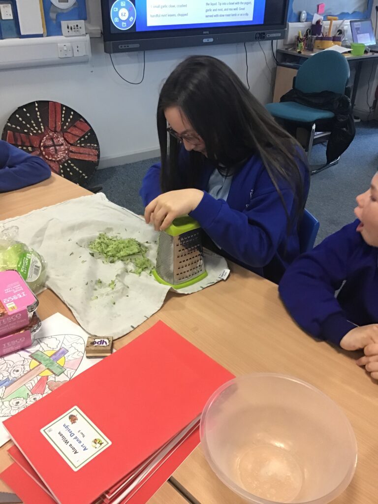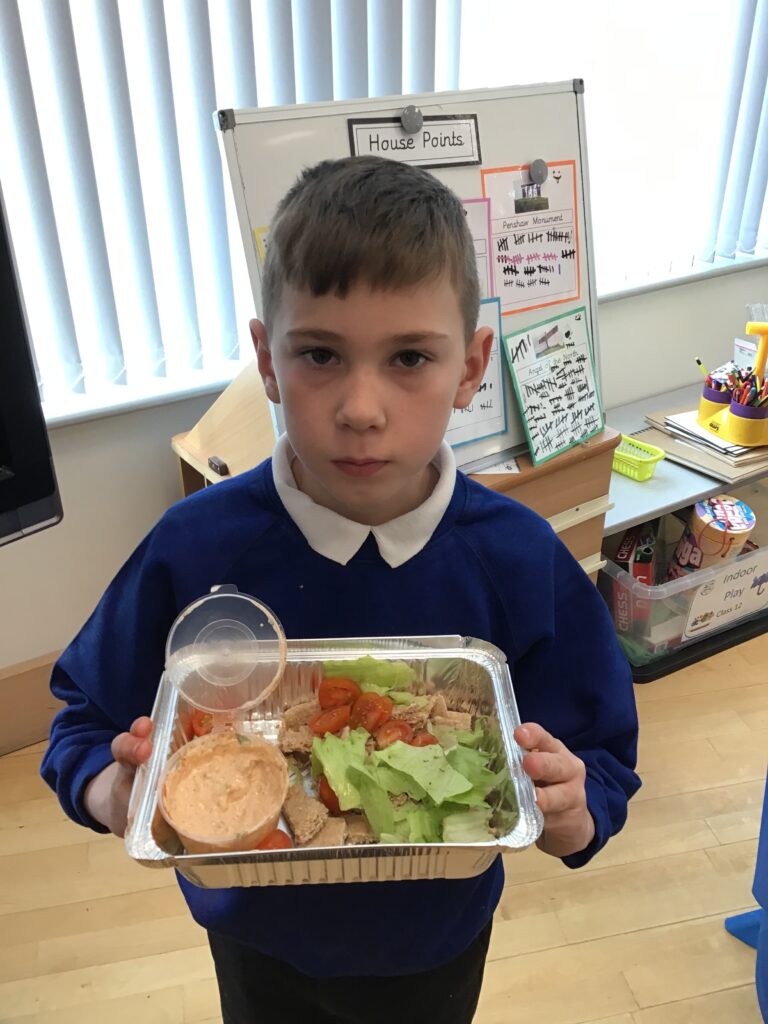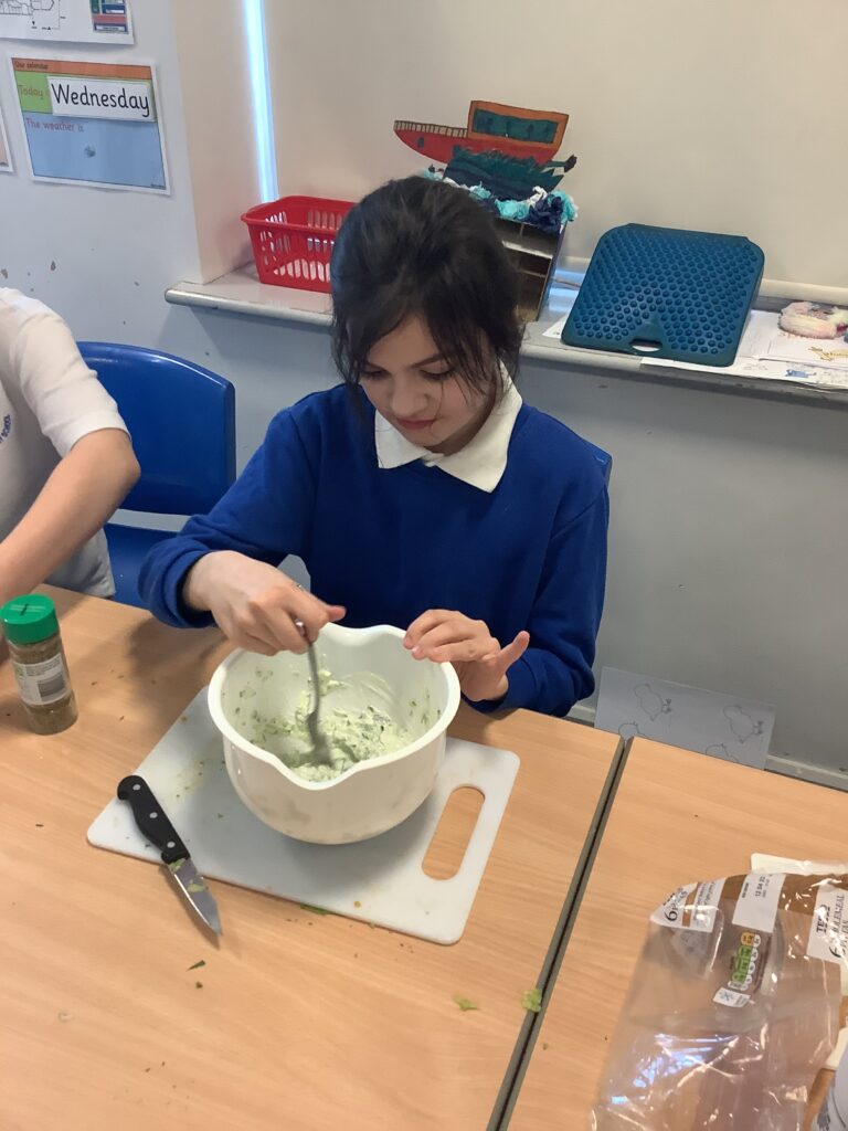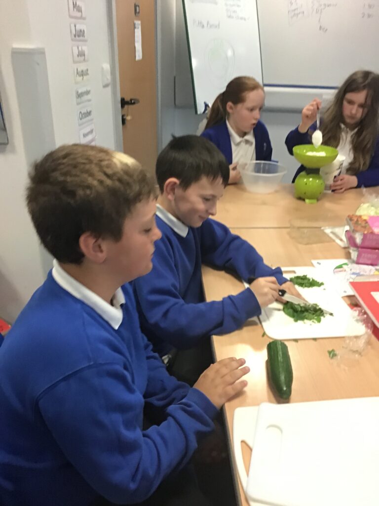 In History we have been studying the Ancient Greeks.  As part of this work we have looked at Greek food and carried out taste testing. We enjoyed making our own Greek salads and tzatziki, which we flavoured with our choice of herbs and spices.  We then brought them home to share with our family as part of our 5-ways-to-wellbeing (connecting).