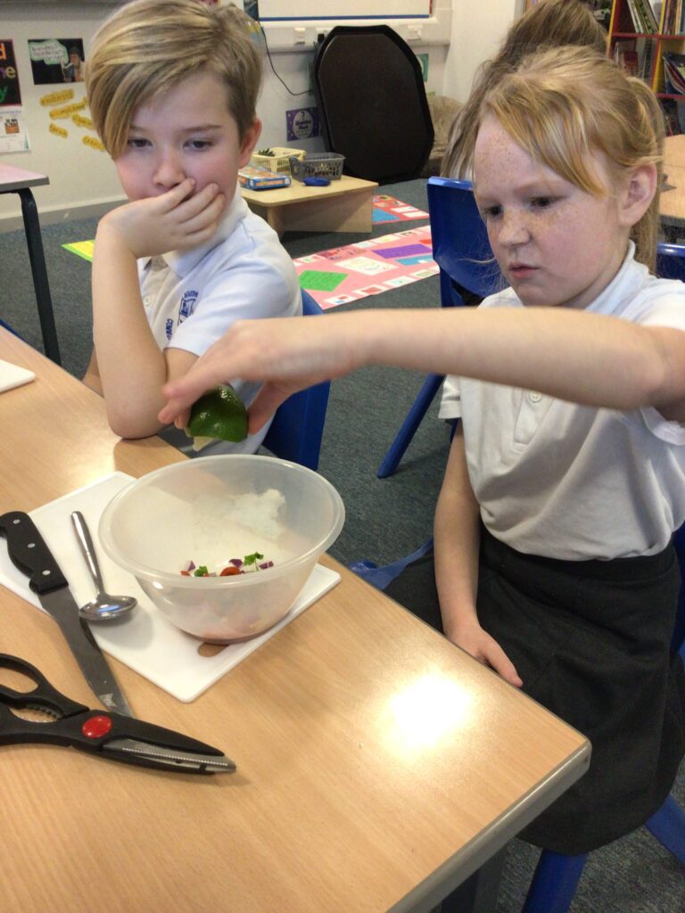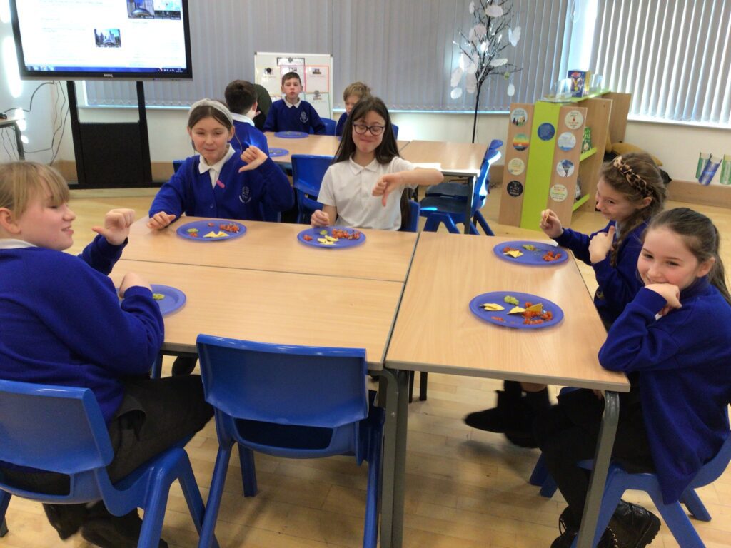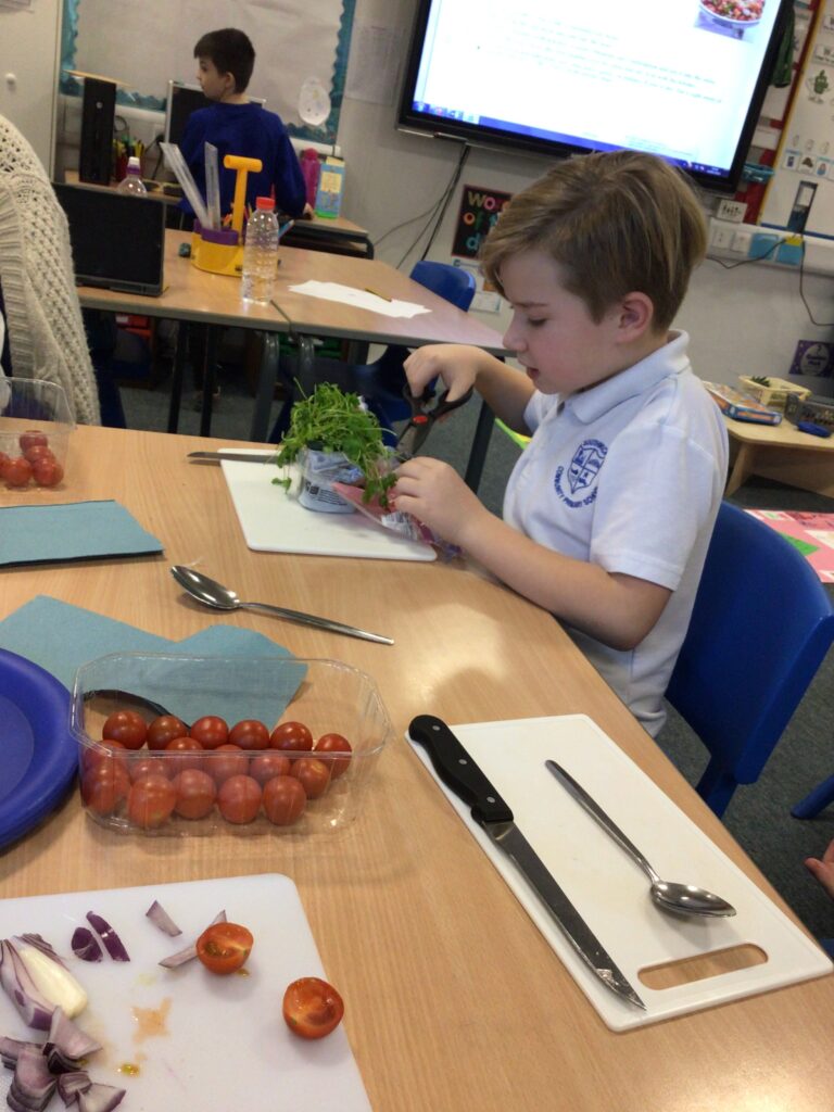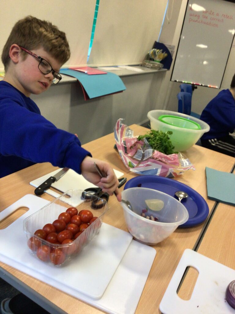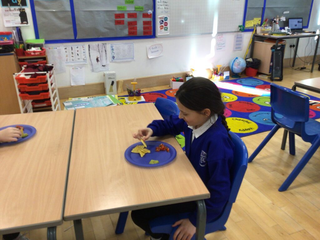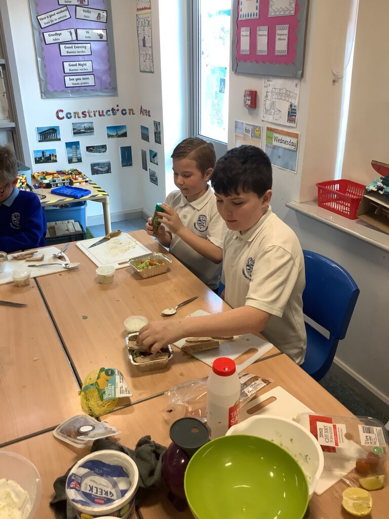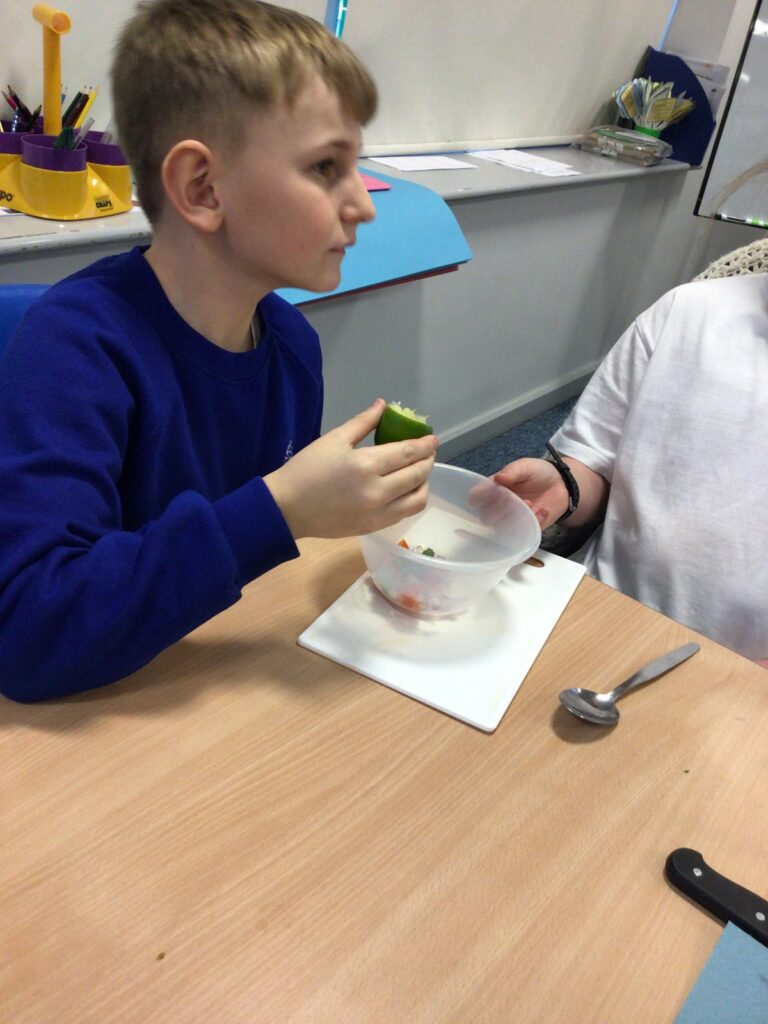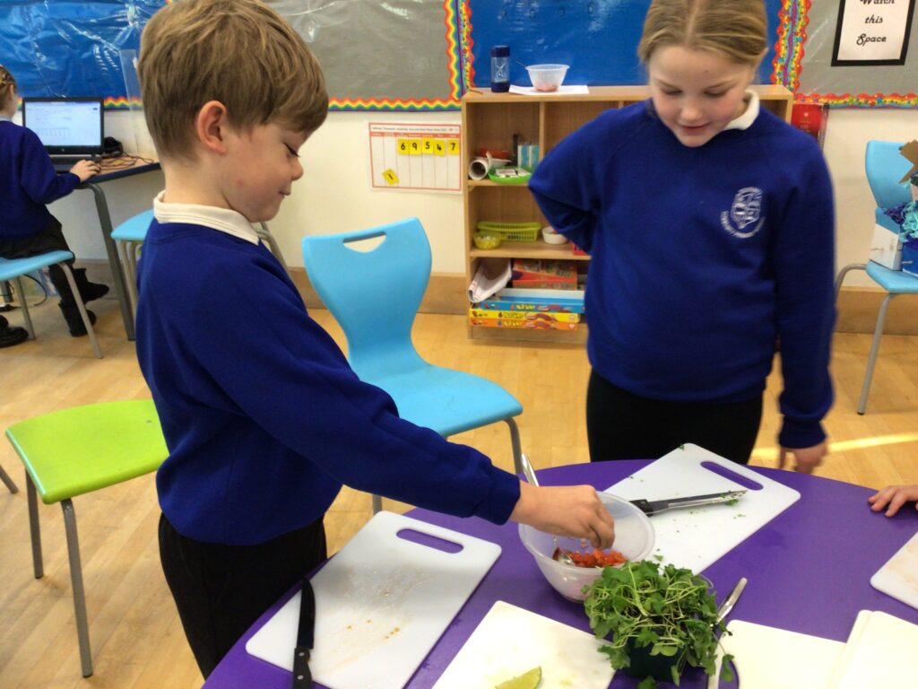 In History we have been studying the Ancient Greeks.  As part of this work we have looked at Greek food and carried out taste testing. We enjoyed making our own Greek salads and tzatziki, which we flavoured with our choice of herbs and spices.  We then brought them home to share with our family as part of our 5-ways-to-wellbeing (connecting).