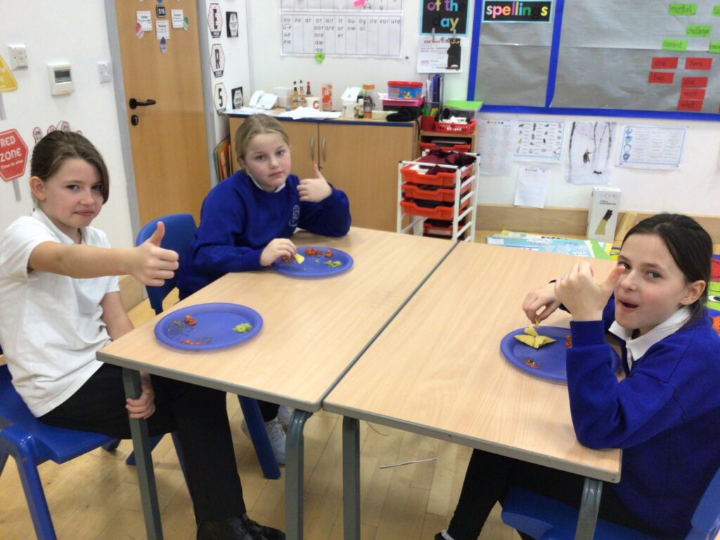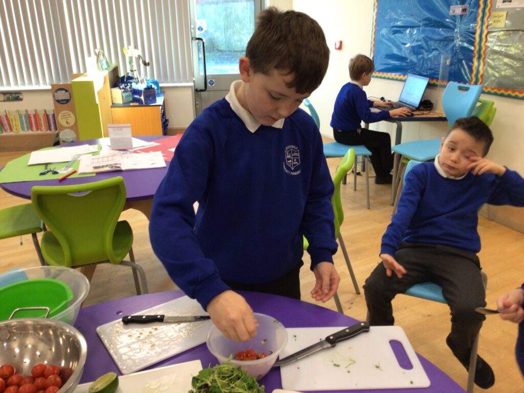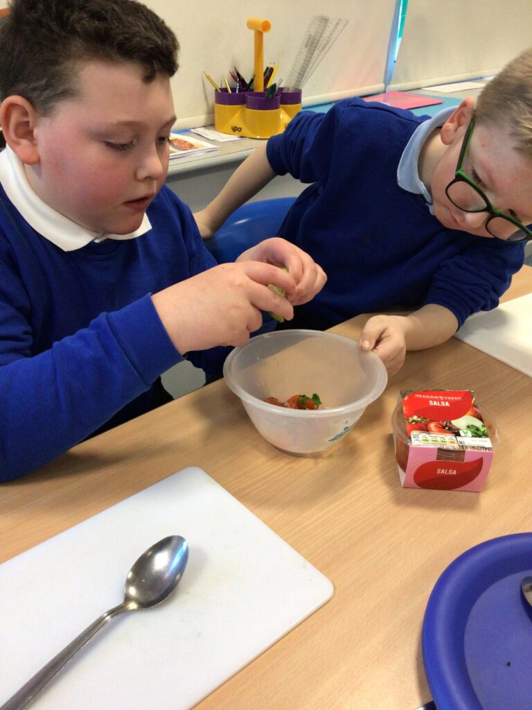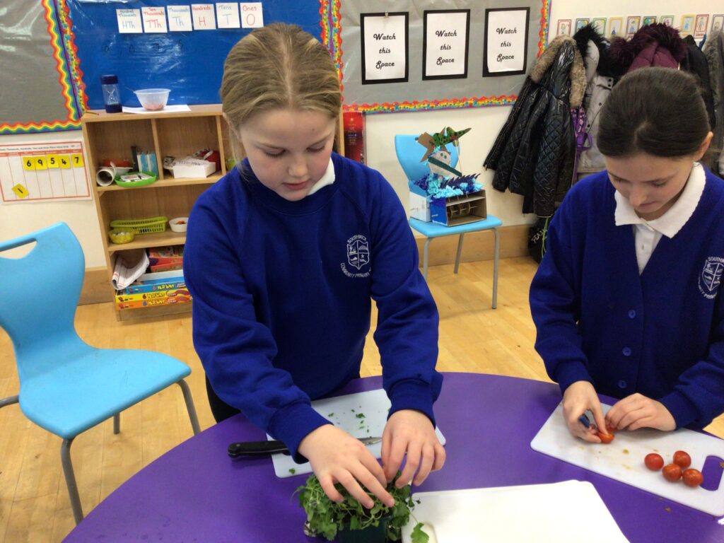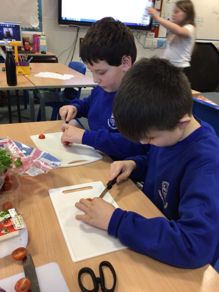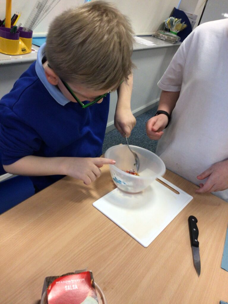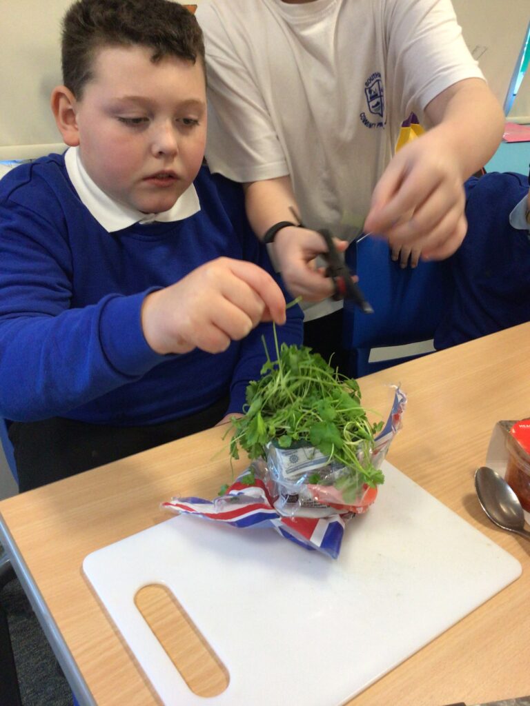 In History we have been studying the Ancient Greeks.  As part of this work we have looked at Greek food and carried out taste testing. We enjoyed making our own Greek salads and tzatziki, which we flavoured with our choice of herbs and spices.  We then brought them home to share with our family as part of our 5-ways-to-wellbeing (connecting).