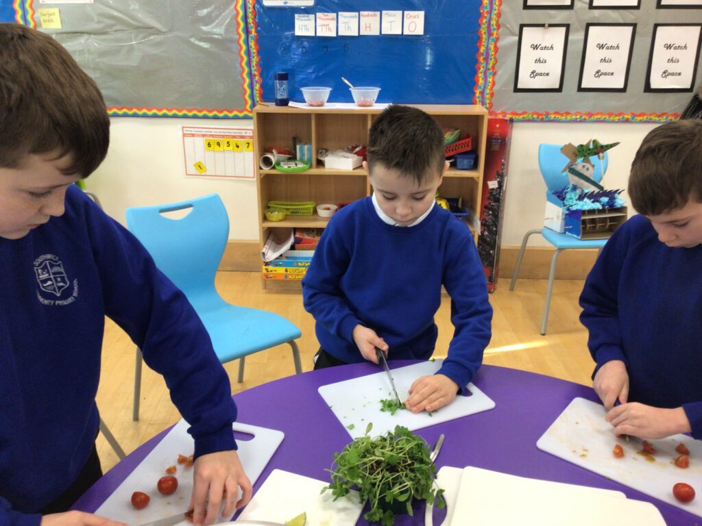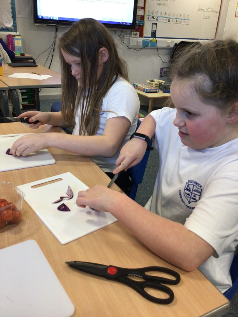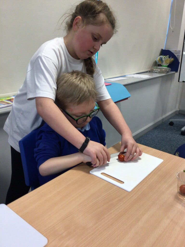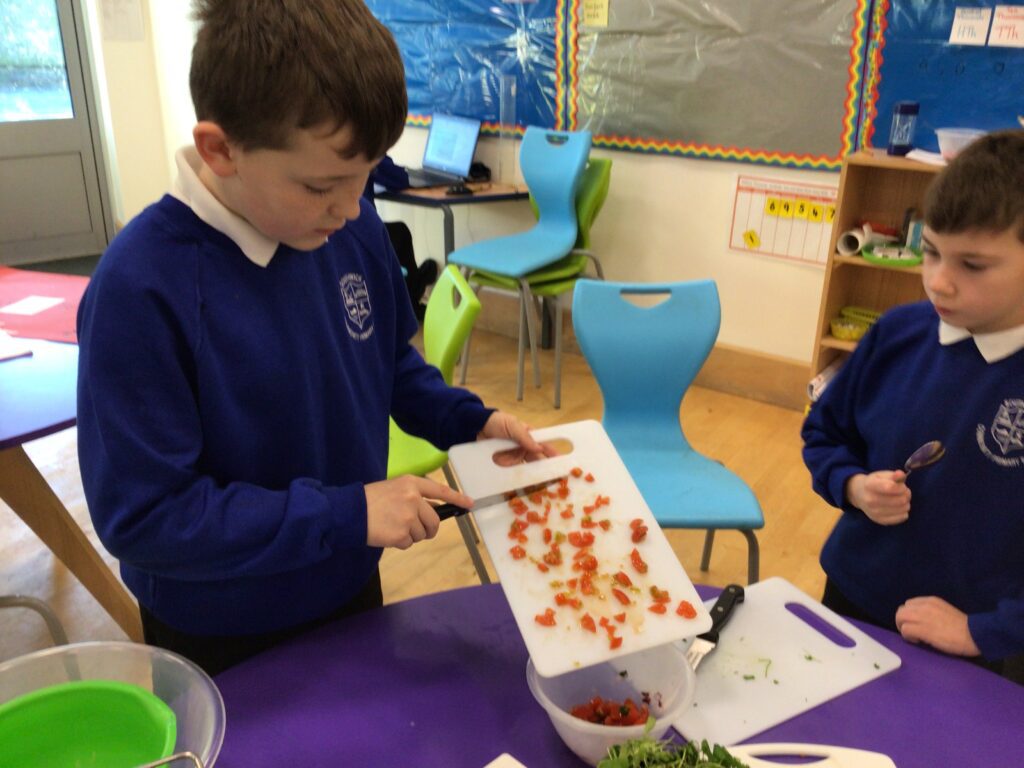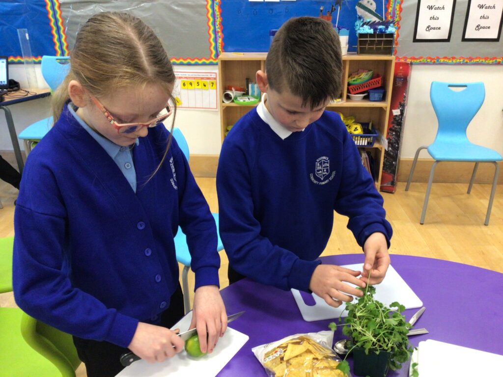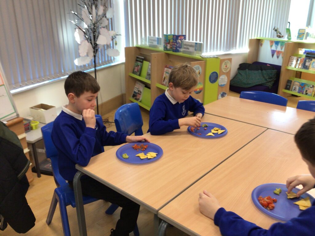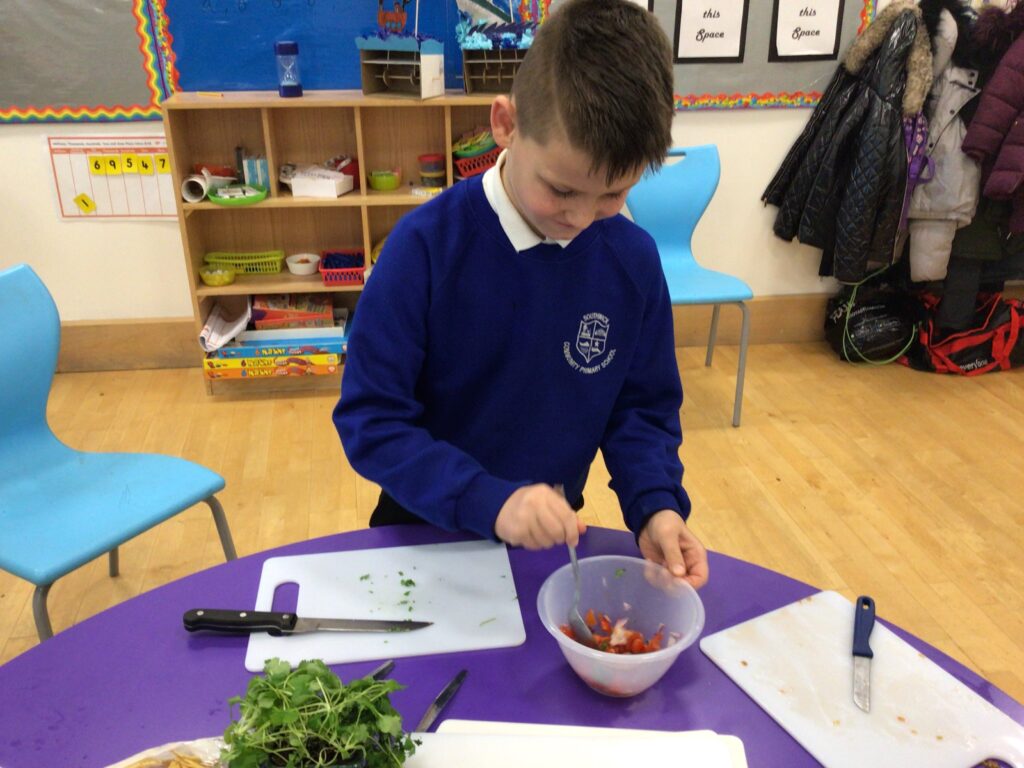 In History we have been studying the Ancient Greeks.  As part of this work we have looked at Greek food and carried out taste testing. We enjoyed making our own Greek salads and tzatziki, which we flavoured with our choice of herbs and spices.  We then brought them home to share with our family as part of our 5-ways-to-wellbeing (connecting).
