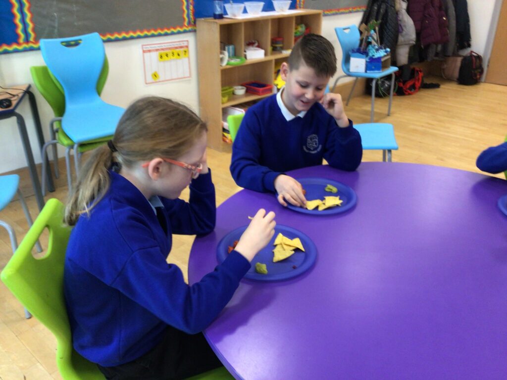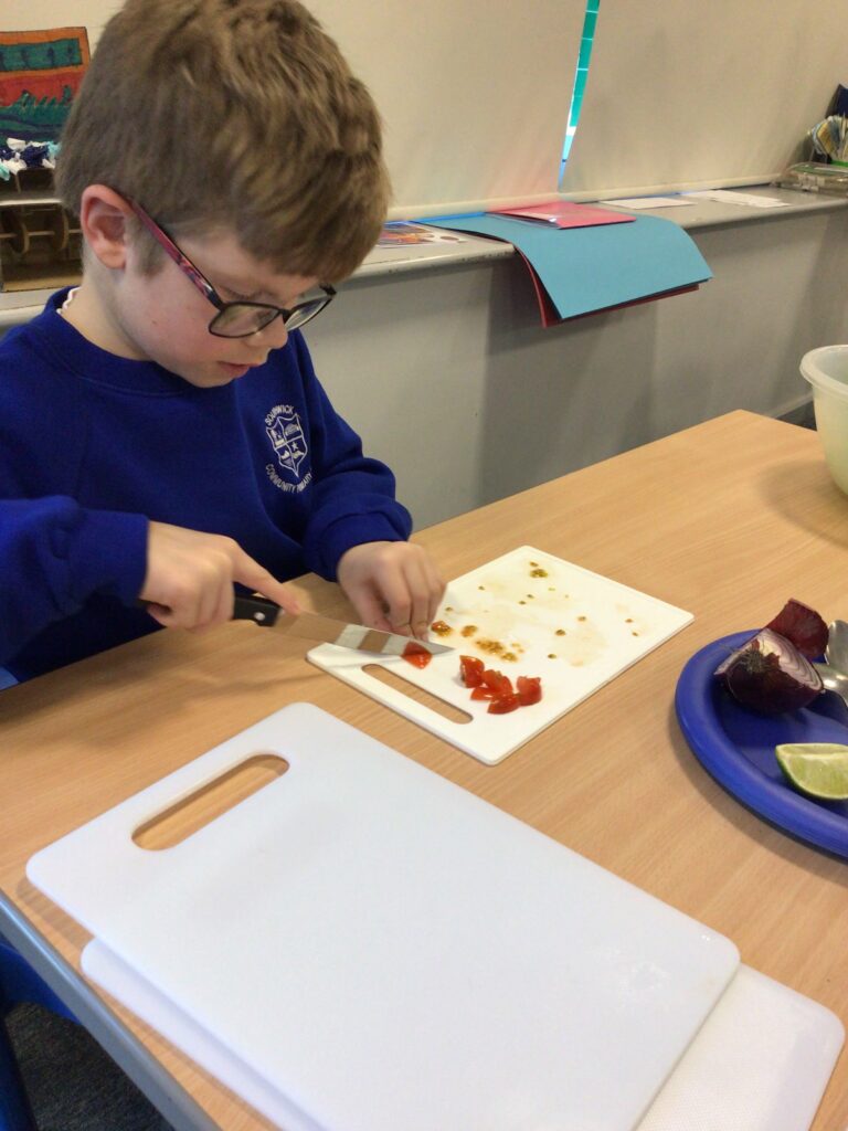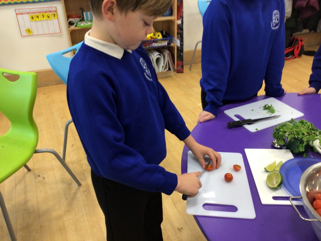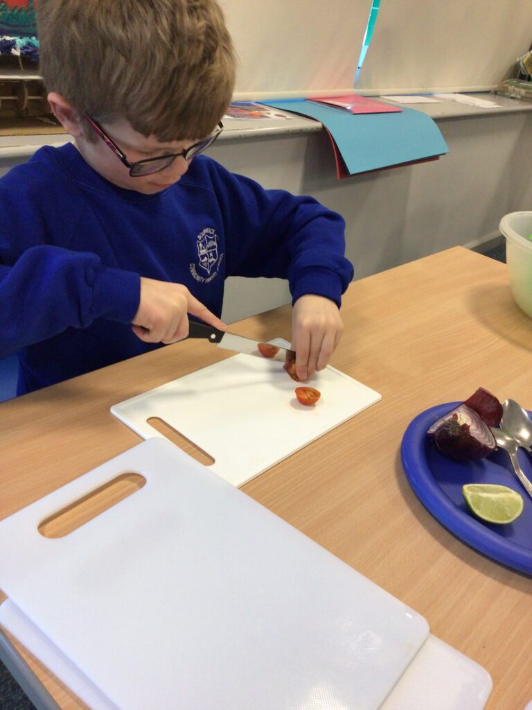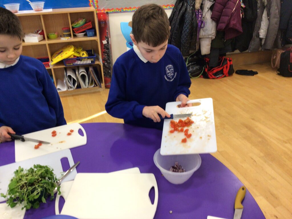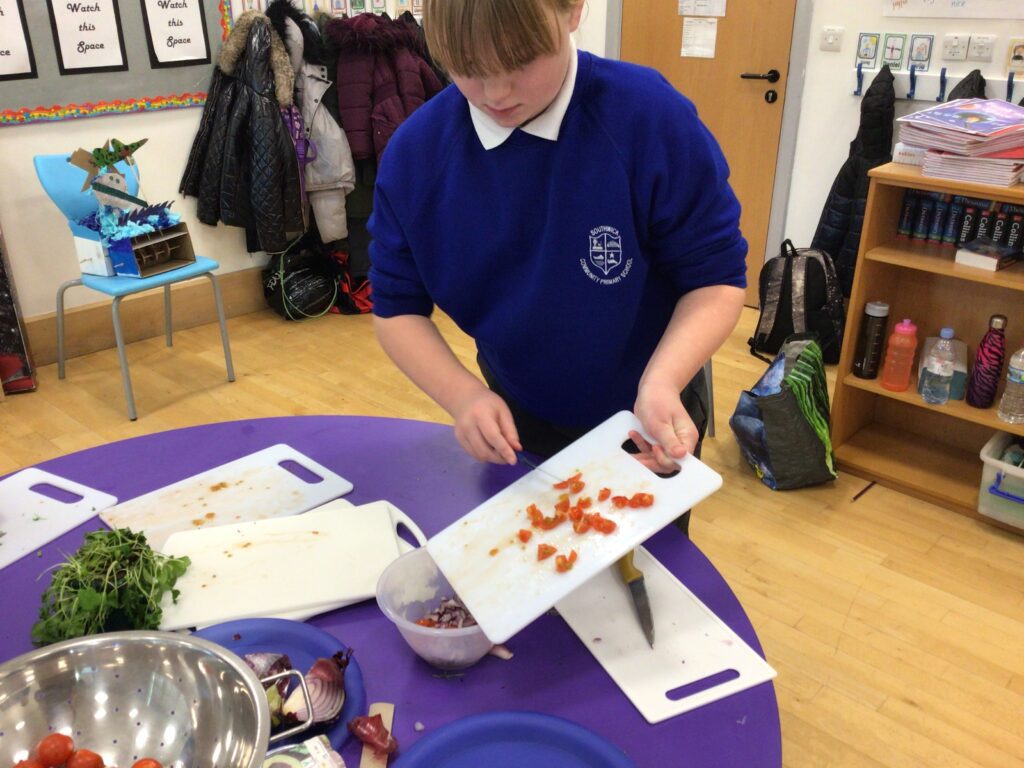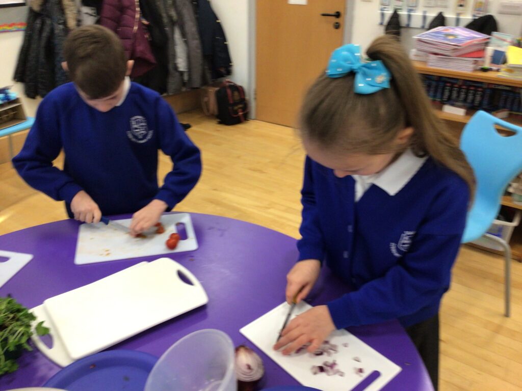In History we have been studying the Ancient Greeks.  As part of this work we have looked at Greek food and carried out taste testing. We enjoyed making our own Greek salads and tzatziki, which we flavoured with our choice of herbs and spices.  We then brought them home to share with our family as part of our 5-ways-to-wellbeing (connecting).