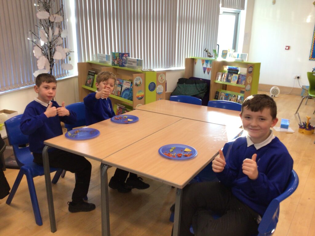 Their prize was hot chocolate and biscuits in the school hall with Mr Robson.