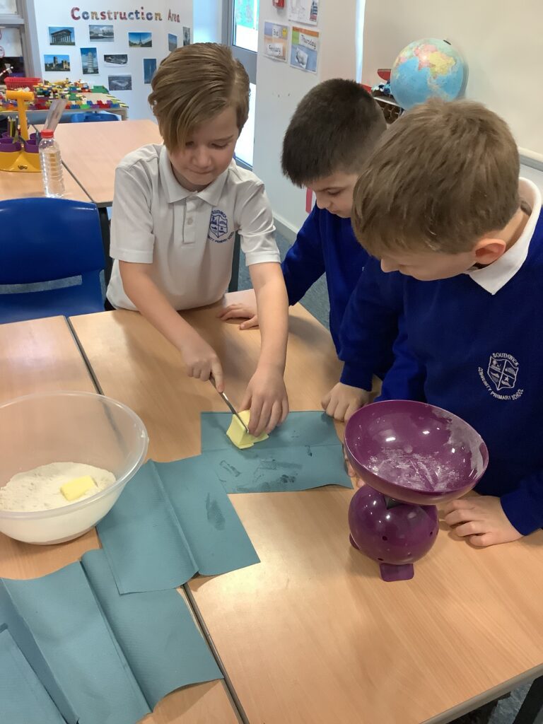 During space week, we baked some delicious biscuits and then decorated them with a theme that was out of this world! We worked together to follow a recipe and we even measured our own ingredients.