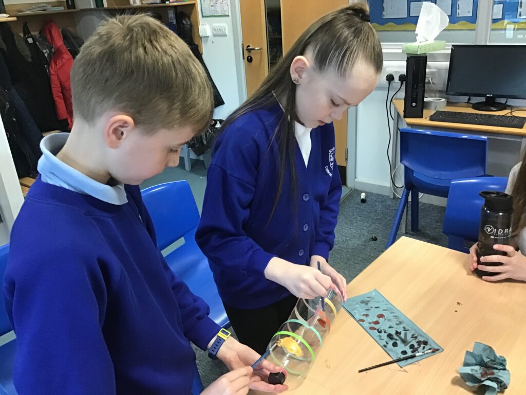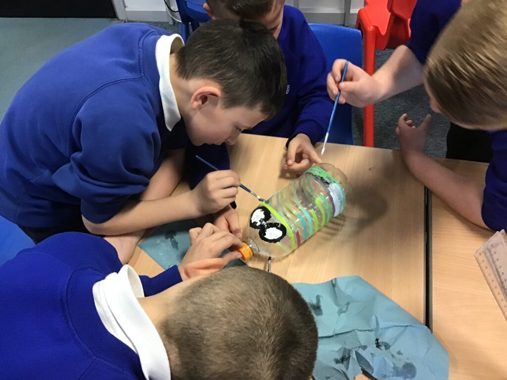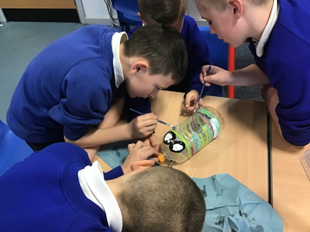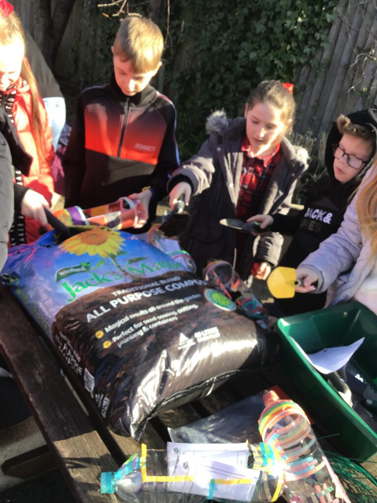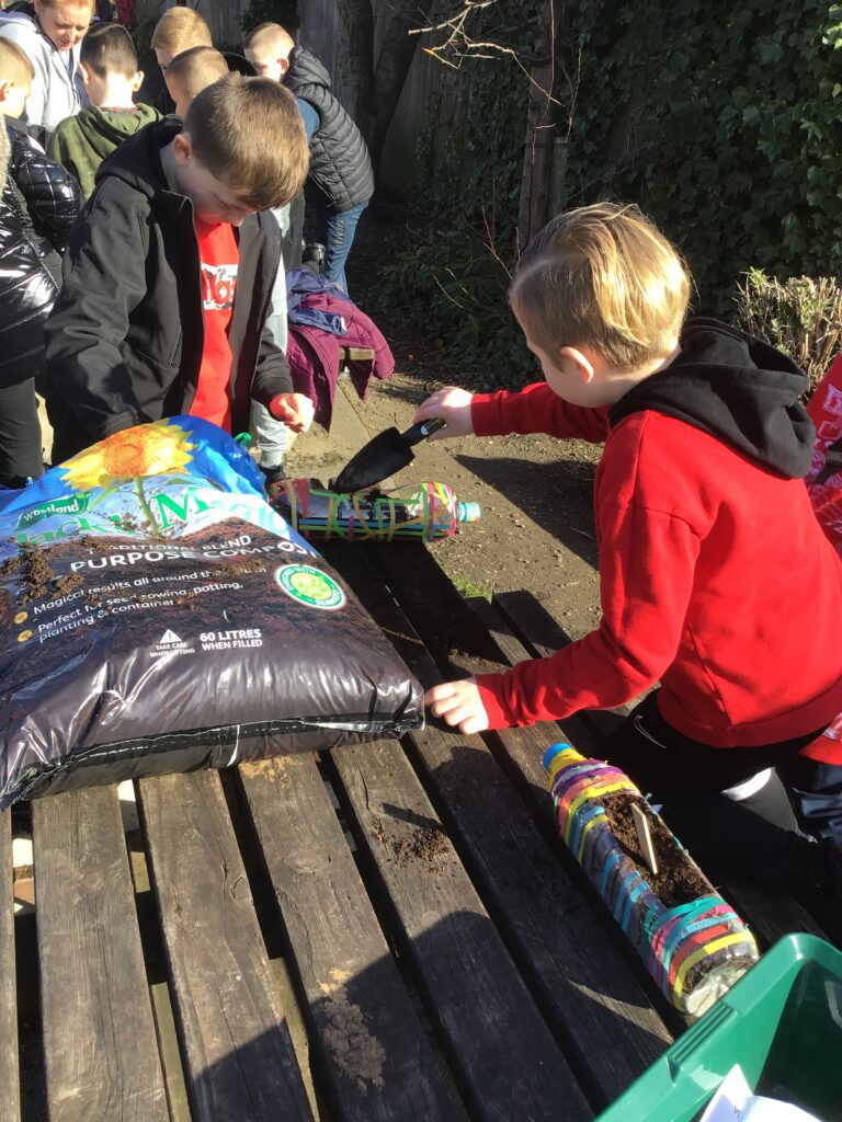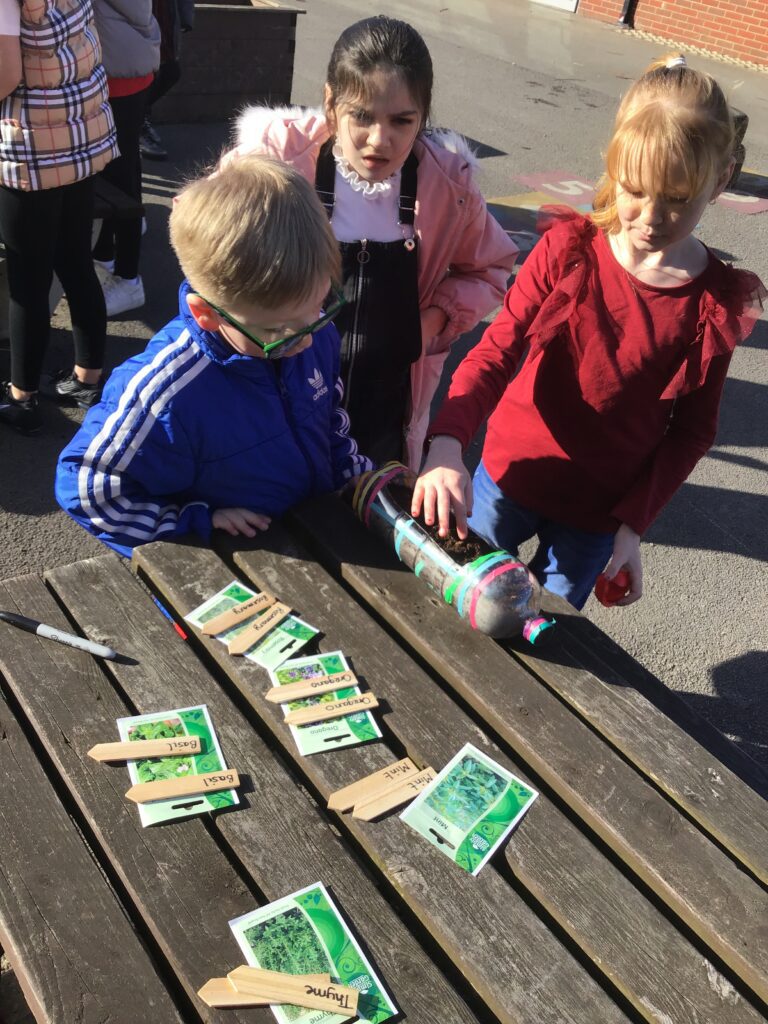 Year 5 have created a plant wall garden as part of our project for British Science Week. We carefully thought about how we can make it sustainable and reduce our carbon footprint.  The planters were made using recycled plastic bottles.  We have planted herbs in our garden which we hope can be used by Mr Bradwell in the school kitchen and by us when we look at how plants reproduce in our next science unit.  We decorated our bottles, filled them with compost then planted our seeds.  Finally, we watered them.  We will be checking on them regularly and monitoring their growth over time.