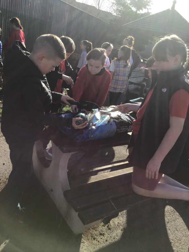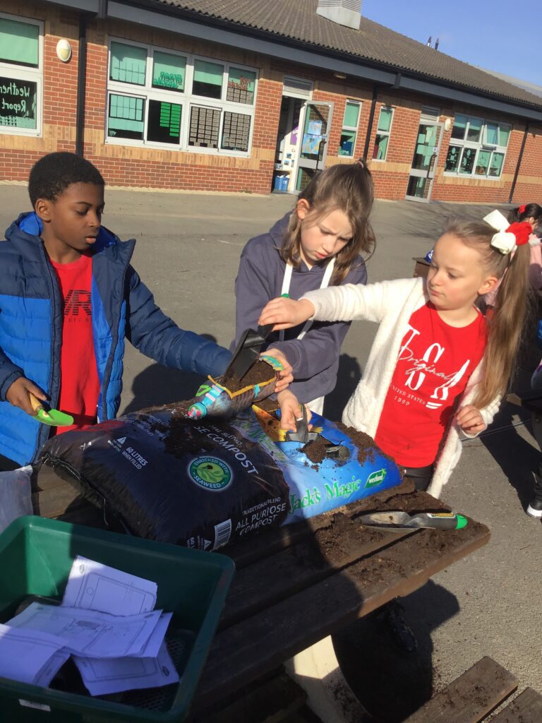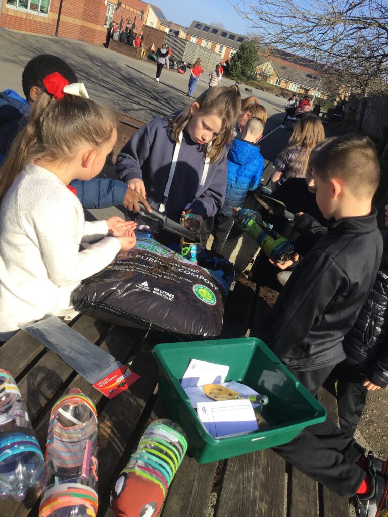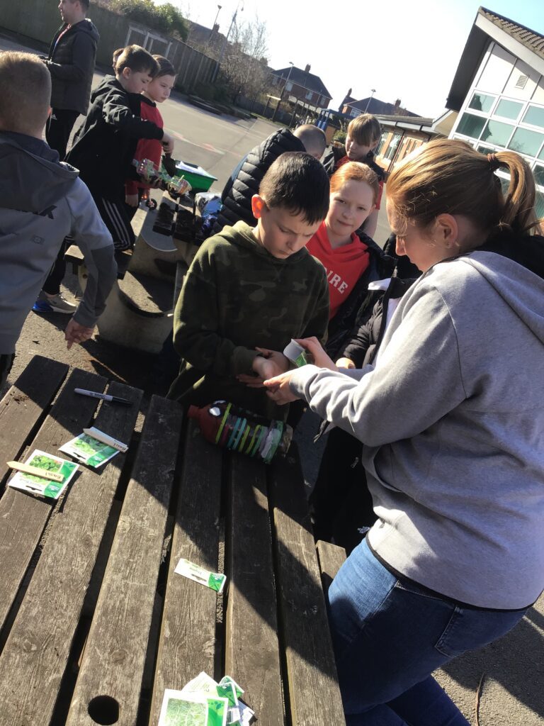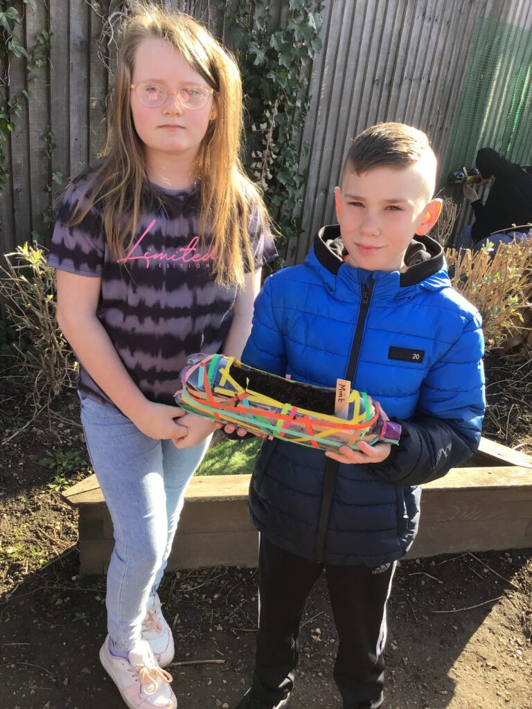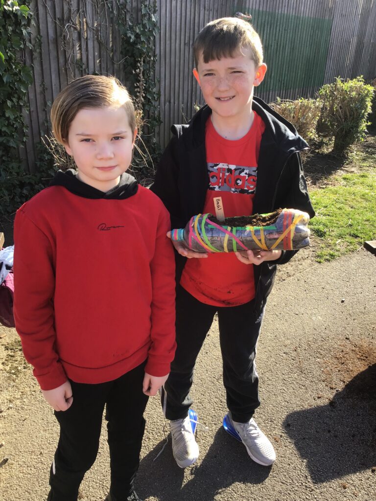Year 5 have created a plant wall garden as part of our project for British Science Week. We carefully thought about how we can make it sustainable and reduce our carbon footprint.  The planters were made using recycled plastic bottles.  We have planted herbs in our garden which we hope can be used by Mr Bradwell in the school kitchen and by us when we look at how plants reproduce in our next science unit.  We decorated our bottles, filled them with compost then planted our seeds.  Finally, we watered them.  We will be checking on them regularly and monitoring their growth over time.
