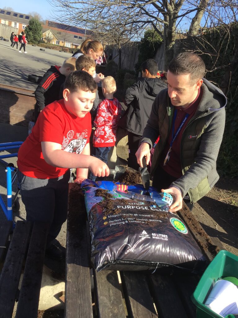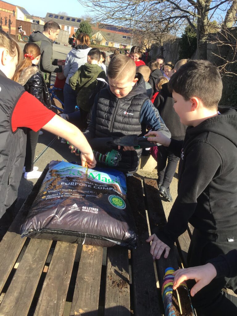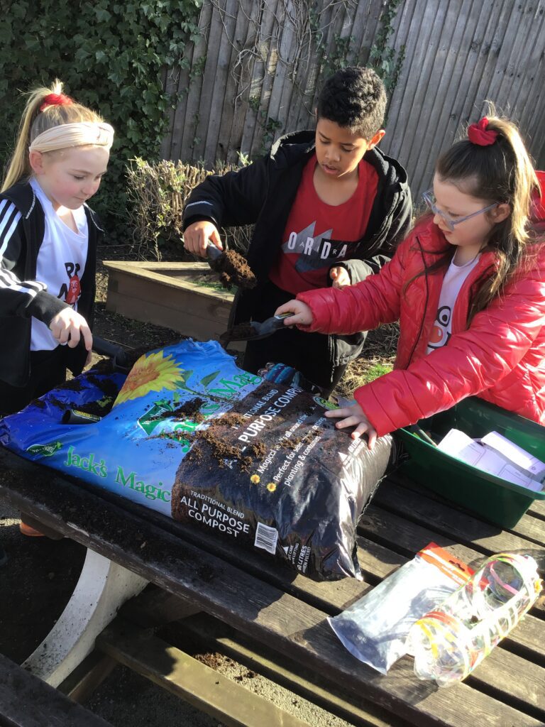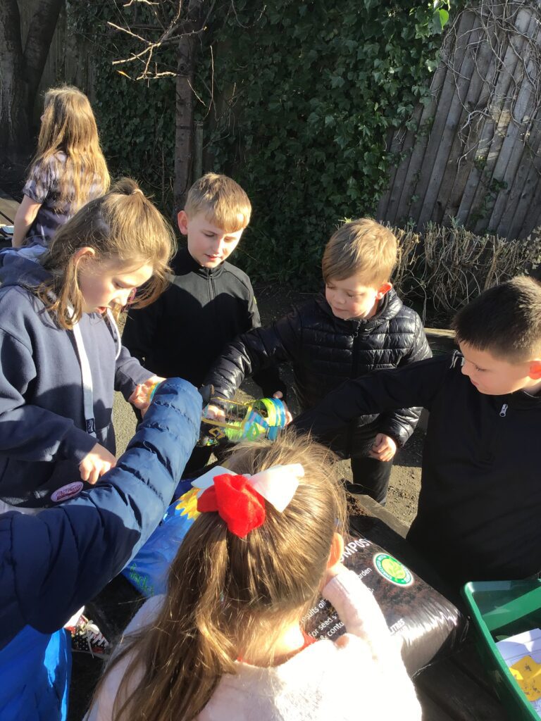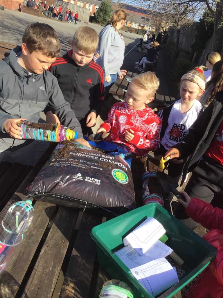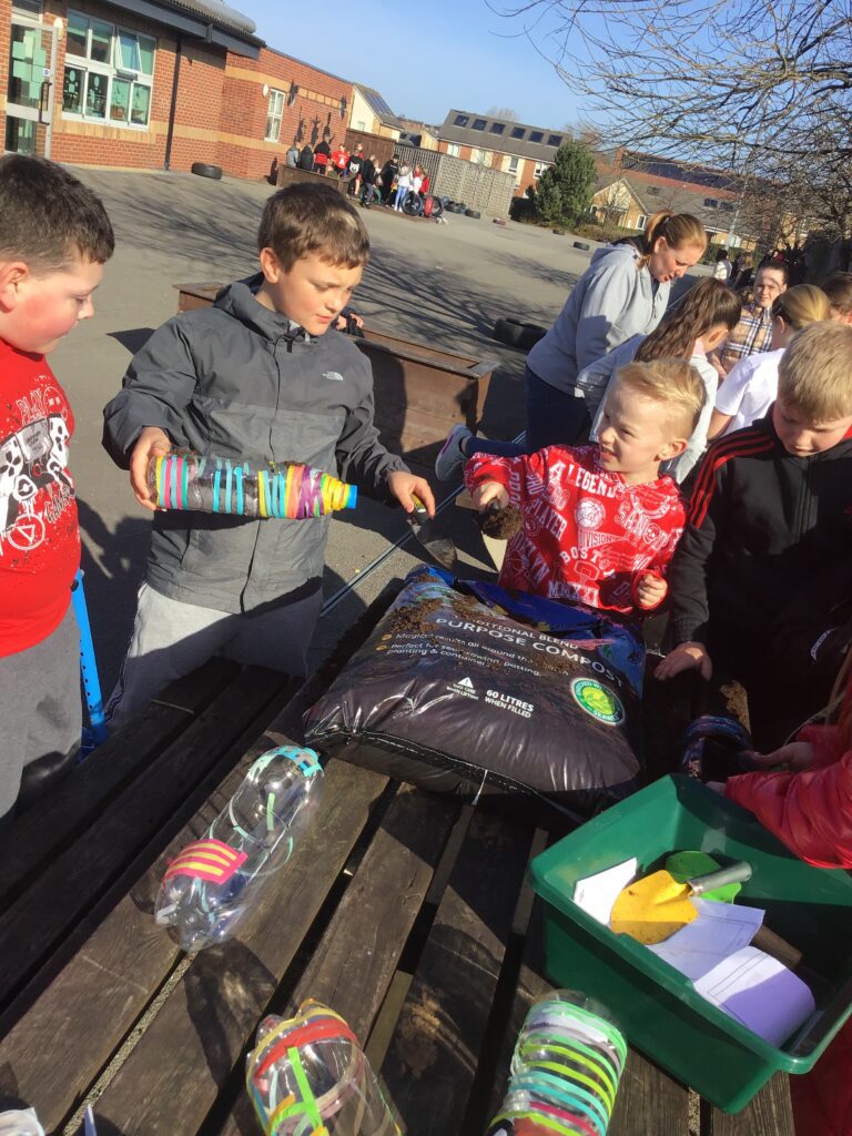 Year 5 have created a plant wall garden as part of our project for British Science Week. We carefully thought about how we can make it sustainable and reduce our carbon footprint.  The planters were made using recycled plastic bottles.  We have planted herbs in our garden which we hope can be used by Mr Bradwell in the school kitchen and by us when we look at how plants reproduce in our next science unit.  We decorated our bottles, filled them with compost then planted our seeds.  Finally, we watered them.  We will be checking on them regularly and monitoring their growth over time.