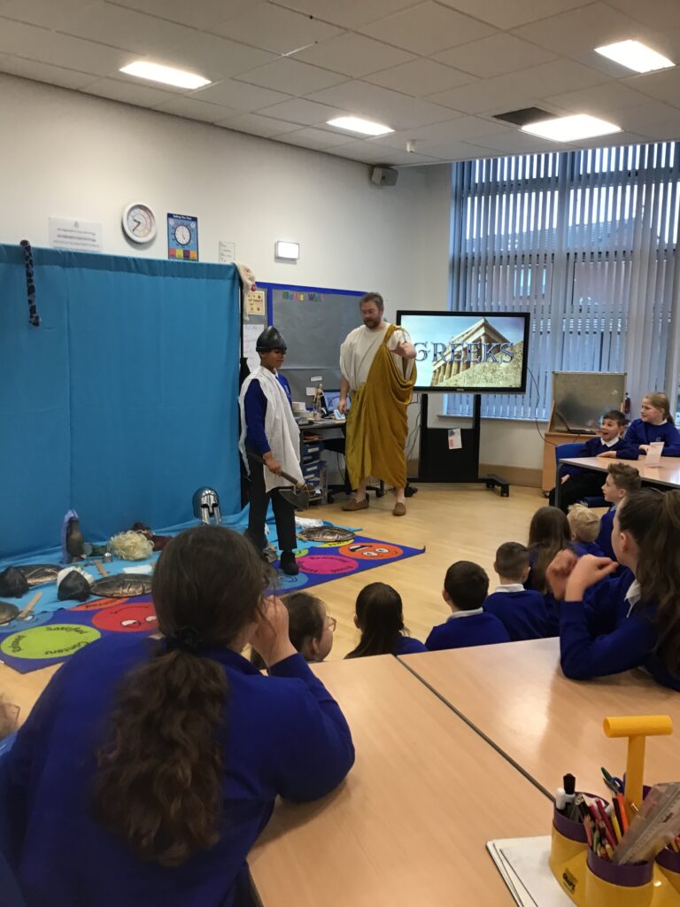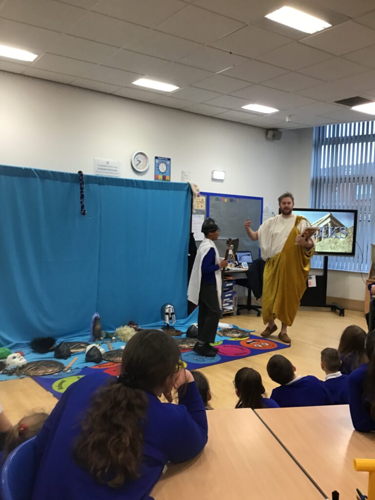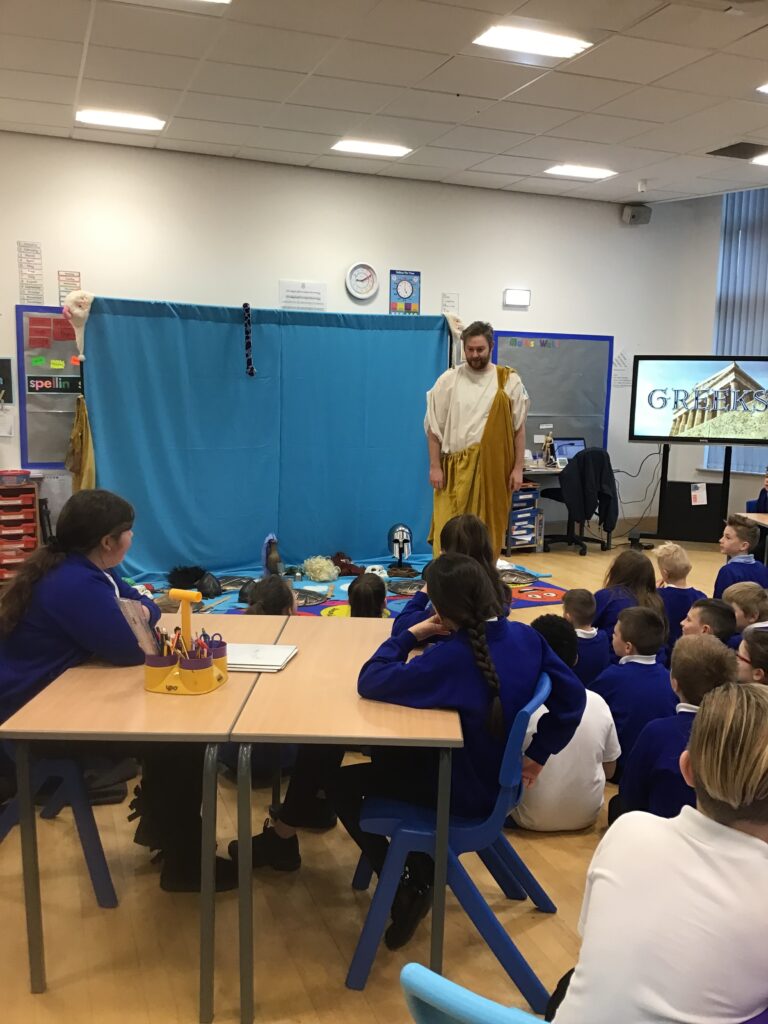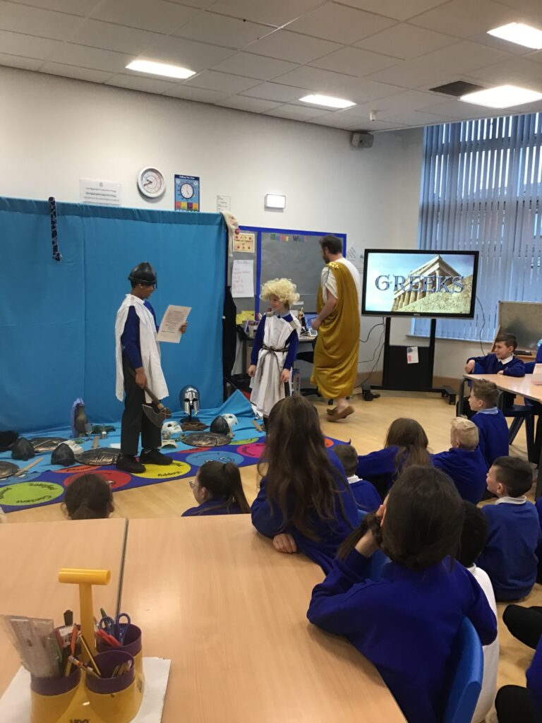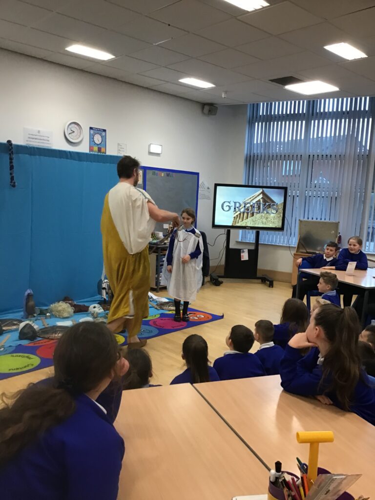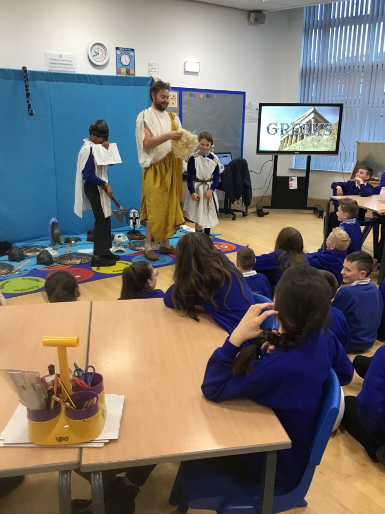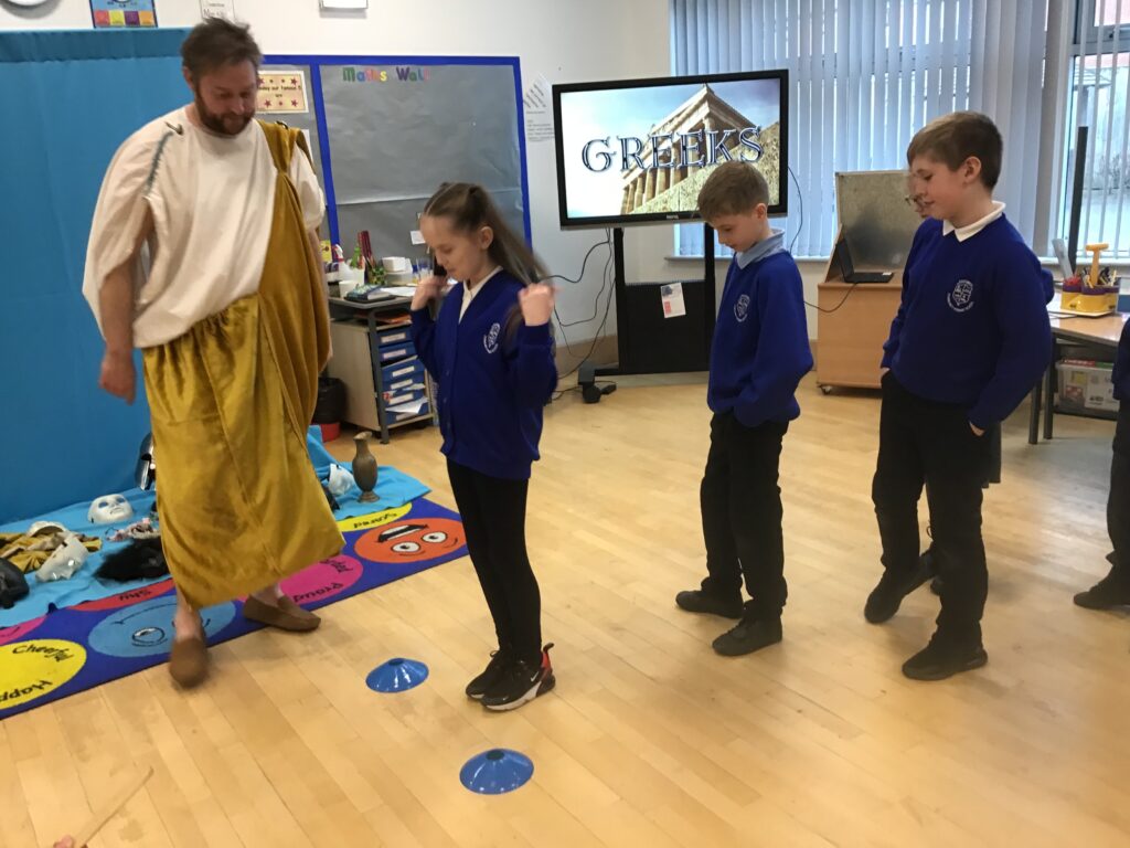 Year 5 thoroughly enjoyed our fun filled Greek day. We had a special visit from Zeus who taught us all about the ways of the ancient Greek people. We learned about Greek Gods, democracy, the Athenian Games (now known as the Olympics), ancient Greek myths and legends and much more!