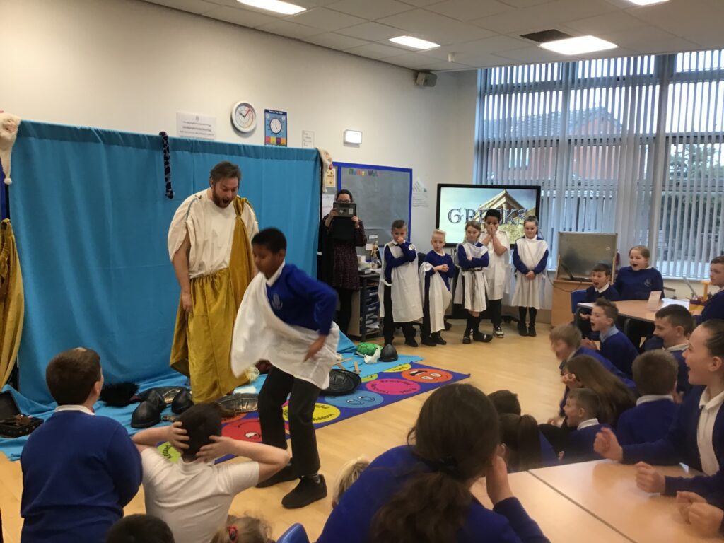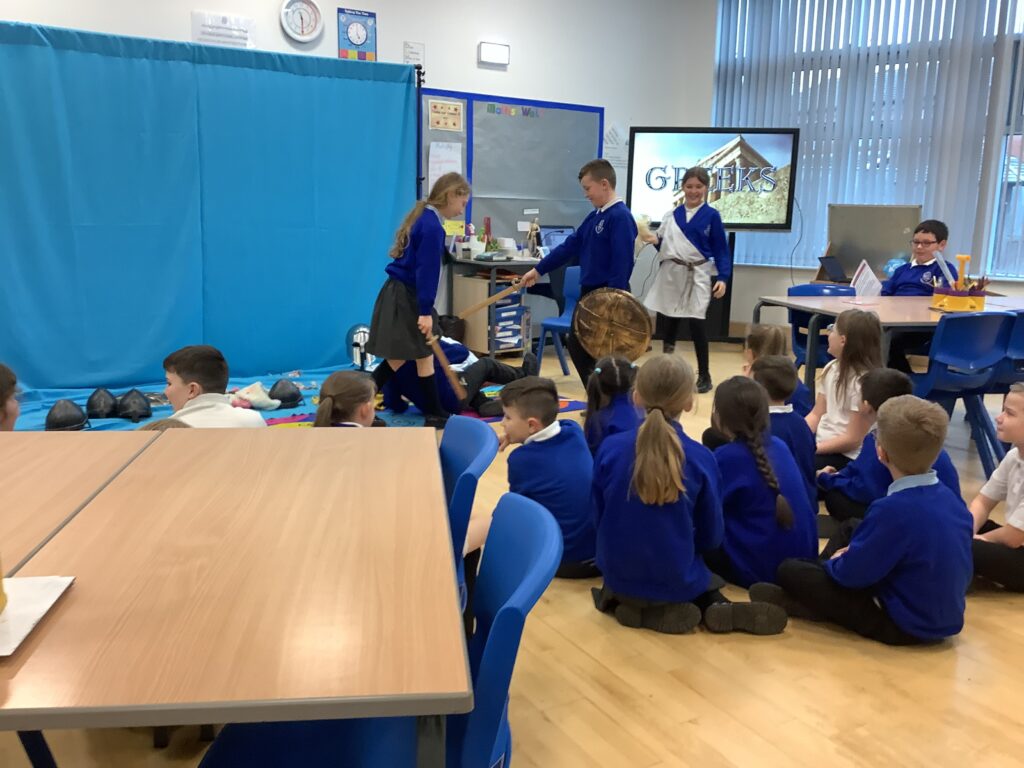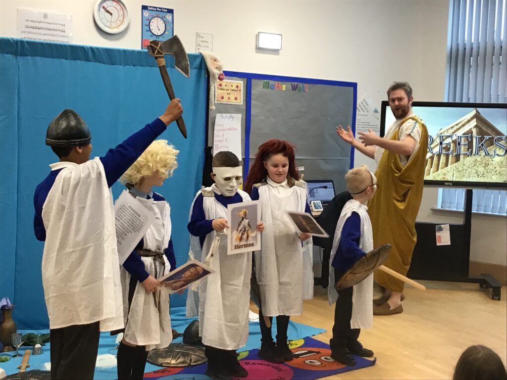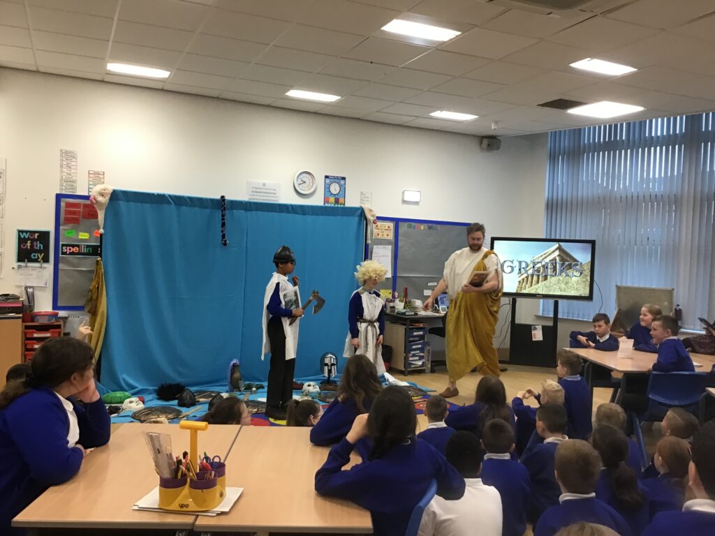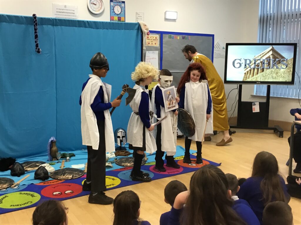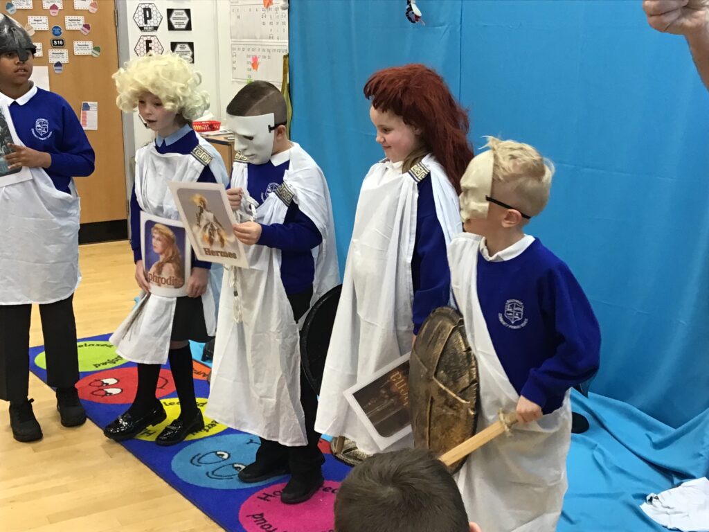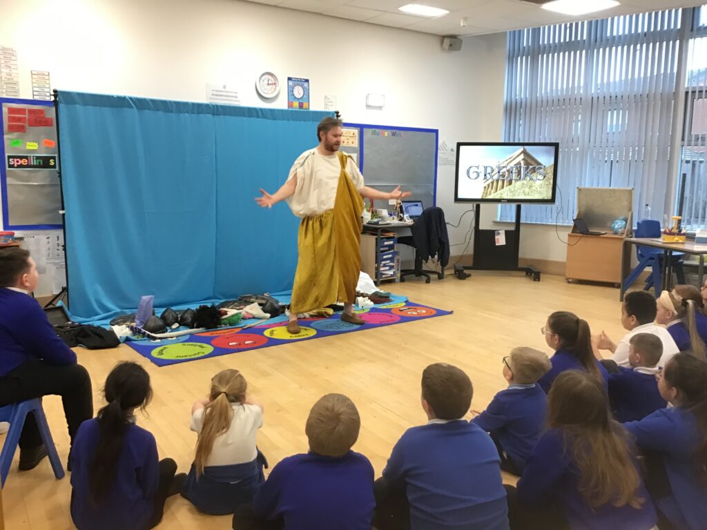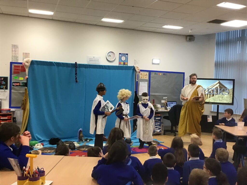 Year 5 thoroughly enjoyed our fun filled Greek day. We had a special visit from Zeus who taught us all about the ways of the ancient Greek people. We learned about Greek Gods, democracy, the Athenian Games (now known as the Olympics), ancient Greek myths and legends and much more!