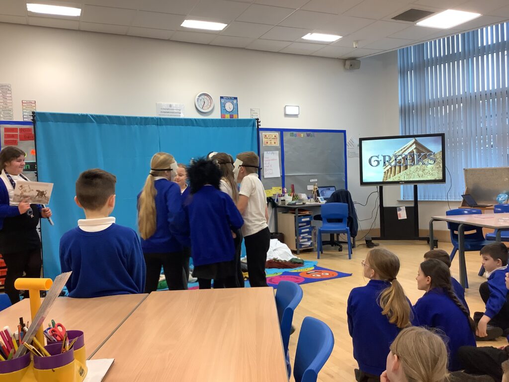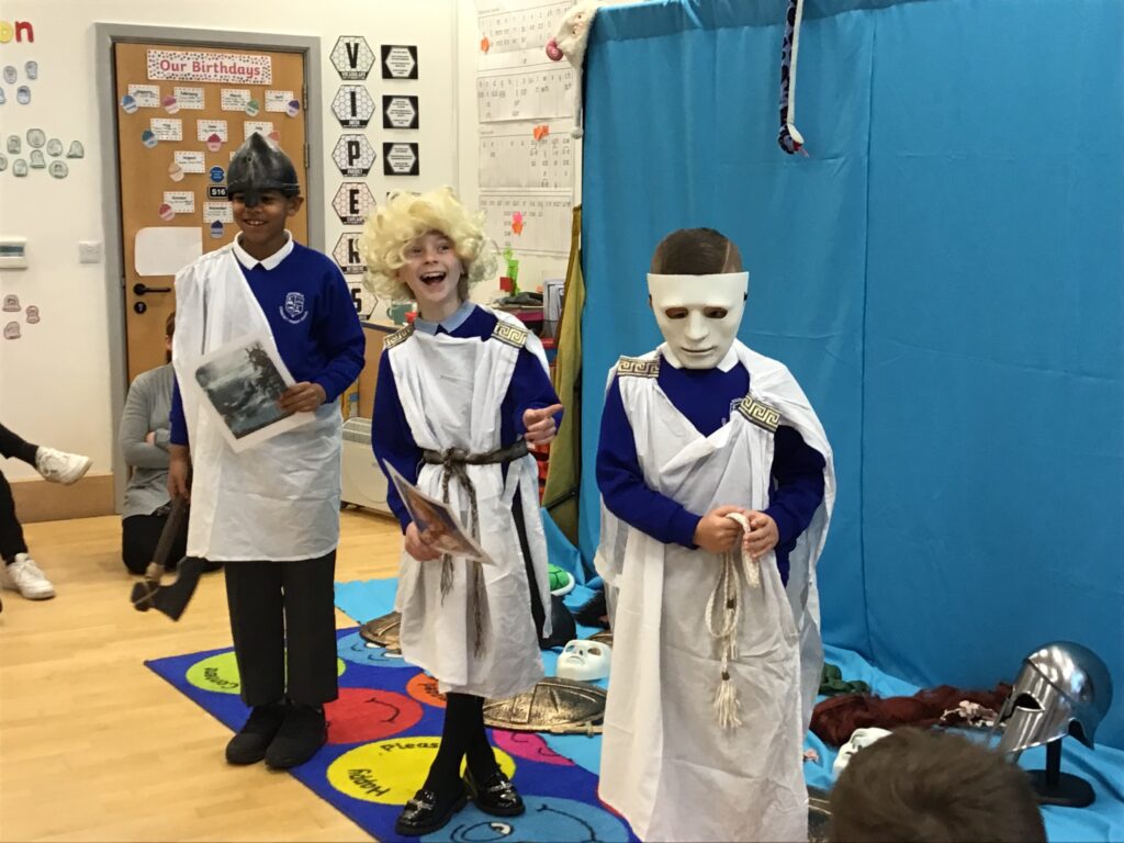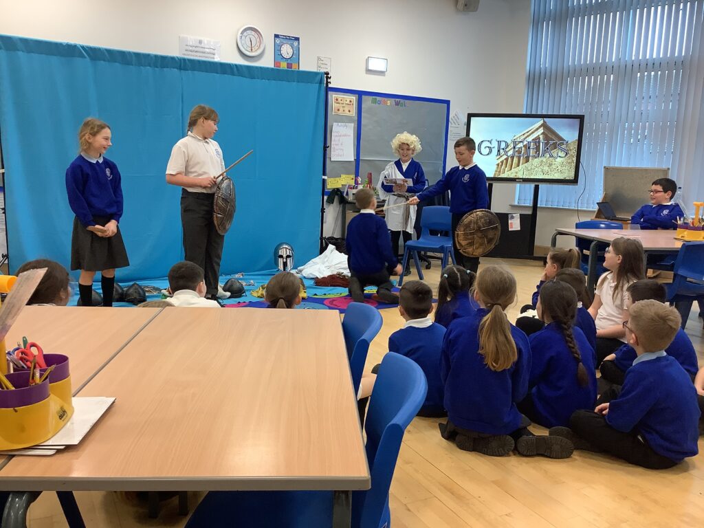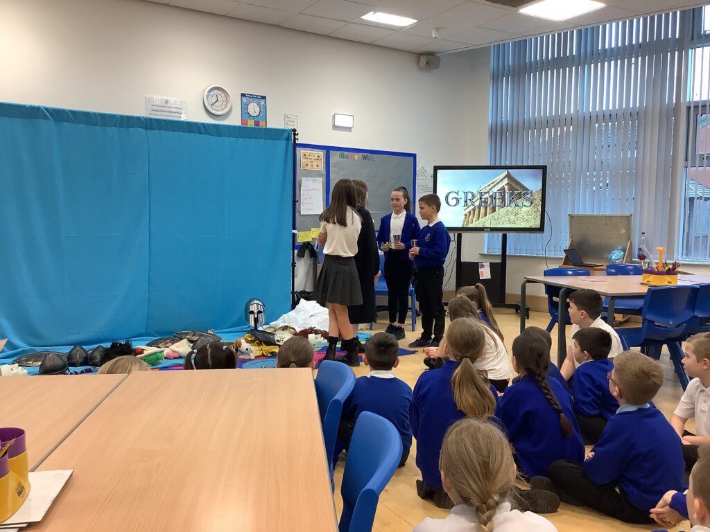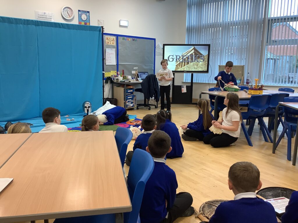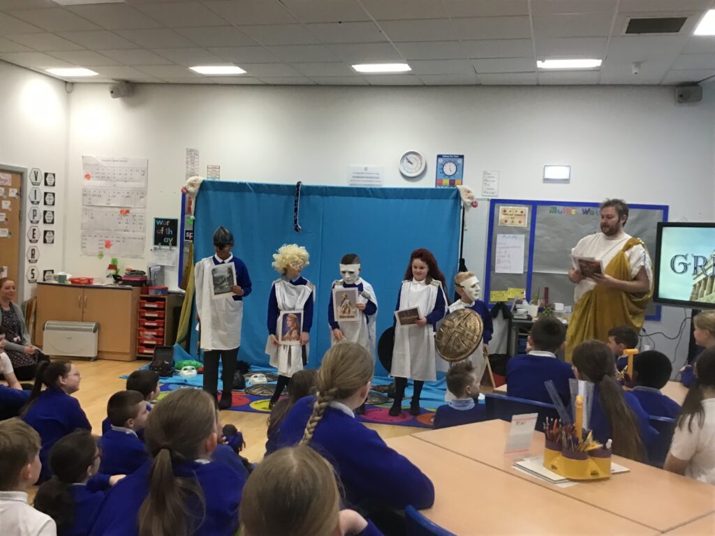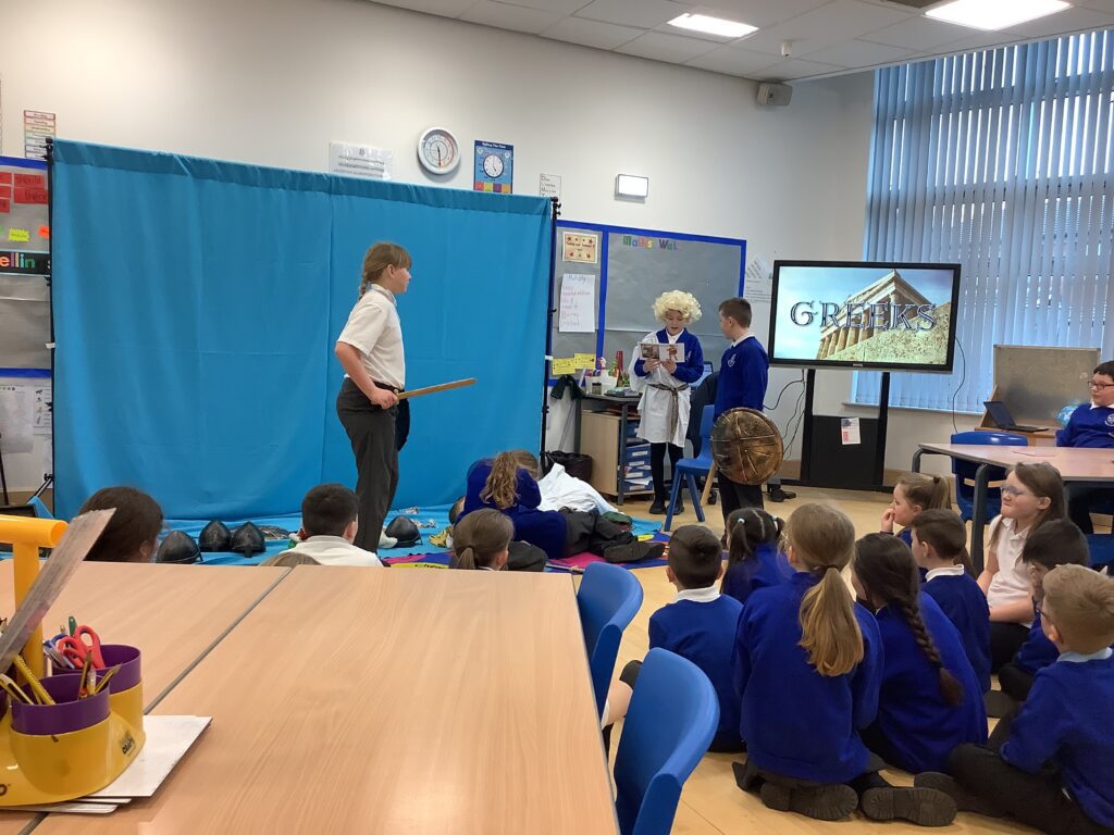 Year 5 thoroughly enjoyed our fun filled Greek day. We had a special visit from Zeus who taught us all about the ways of the ancient Greek people. We learned about Greek Gods, democracy, the Athenian Games (now known as the Olympics), ancient Greek myths and legends and much more!
