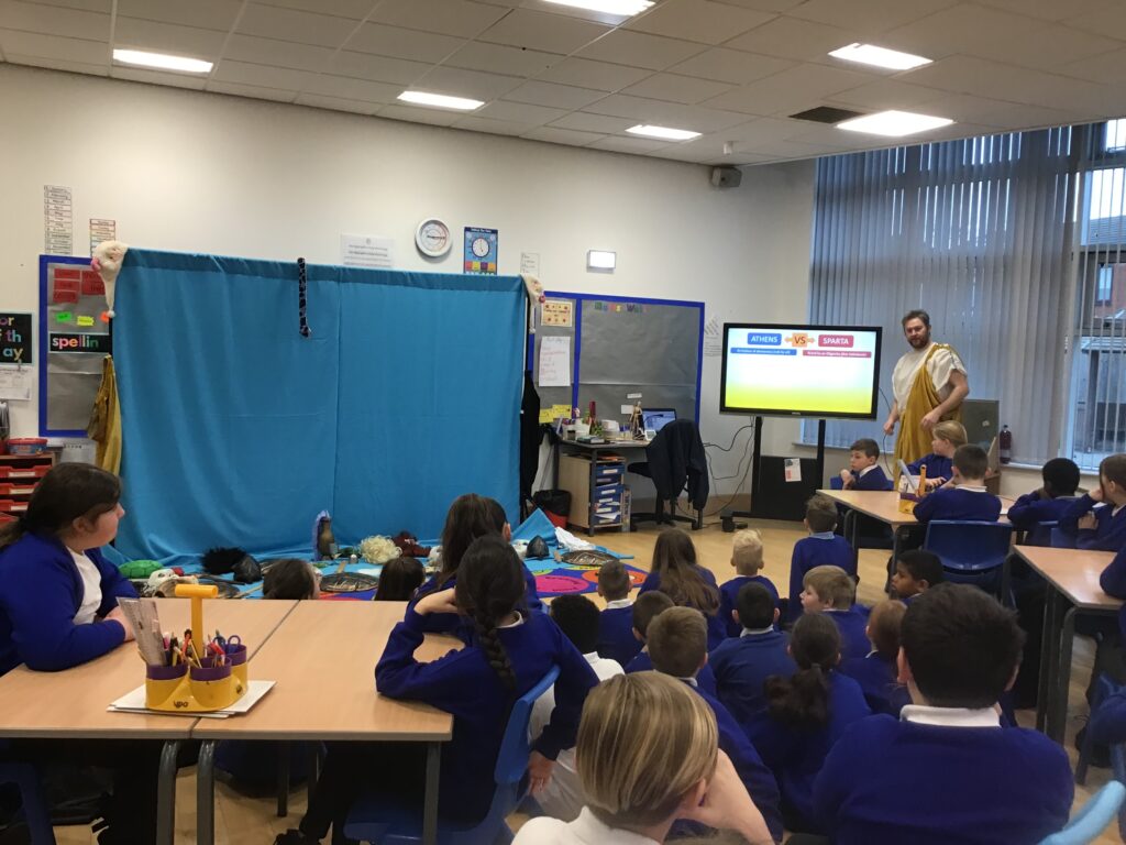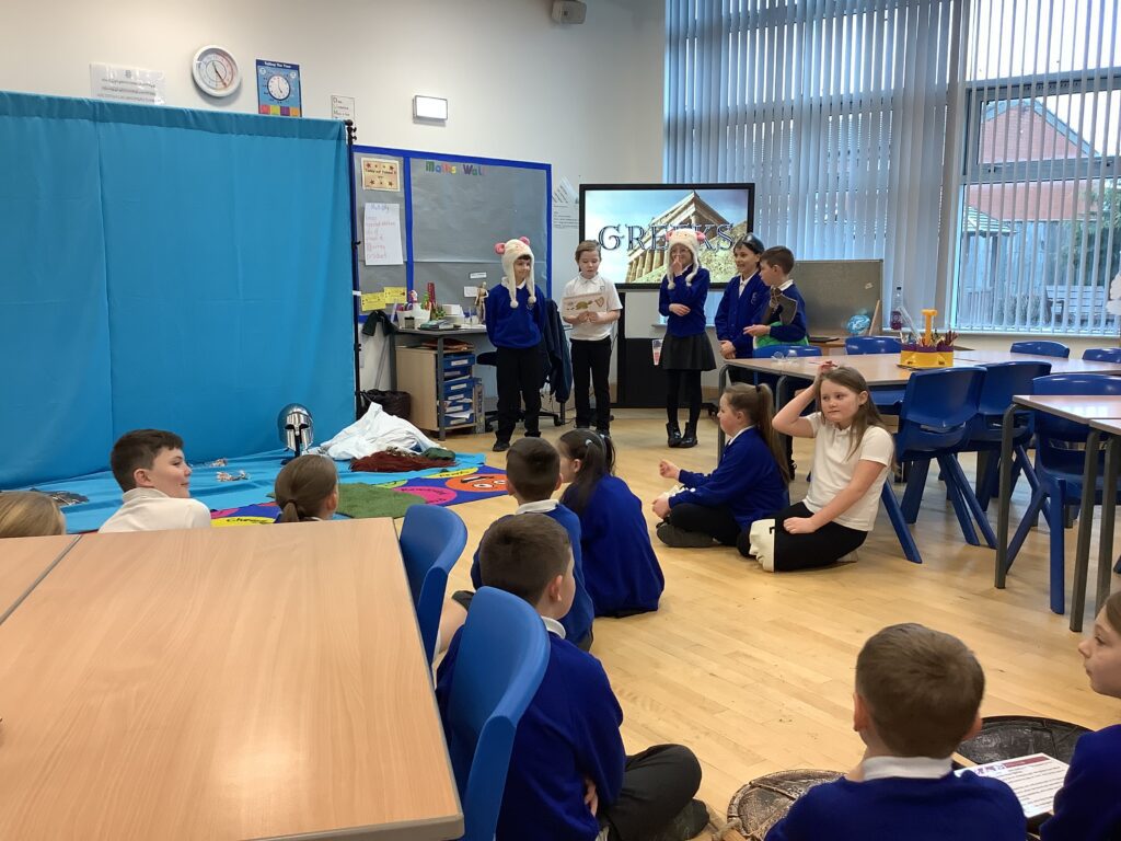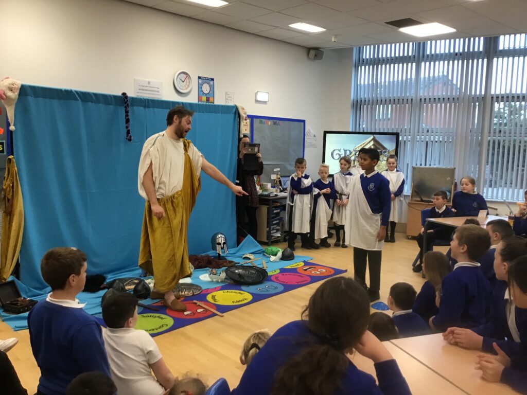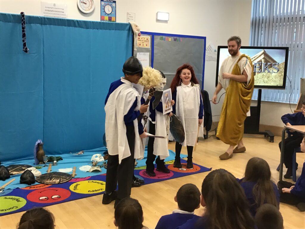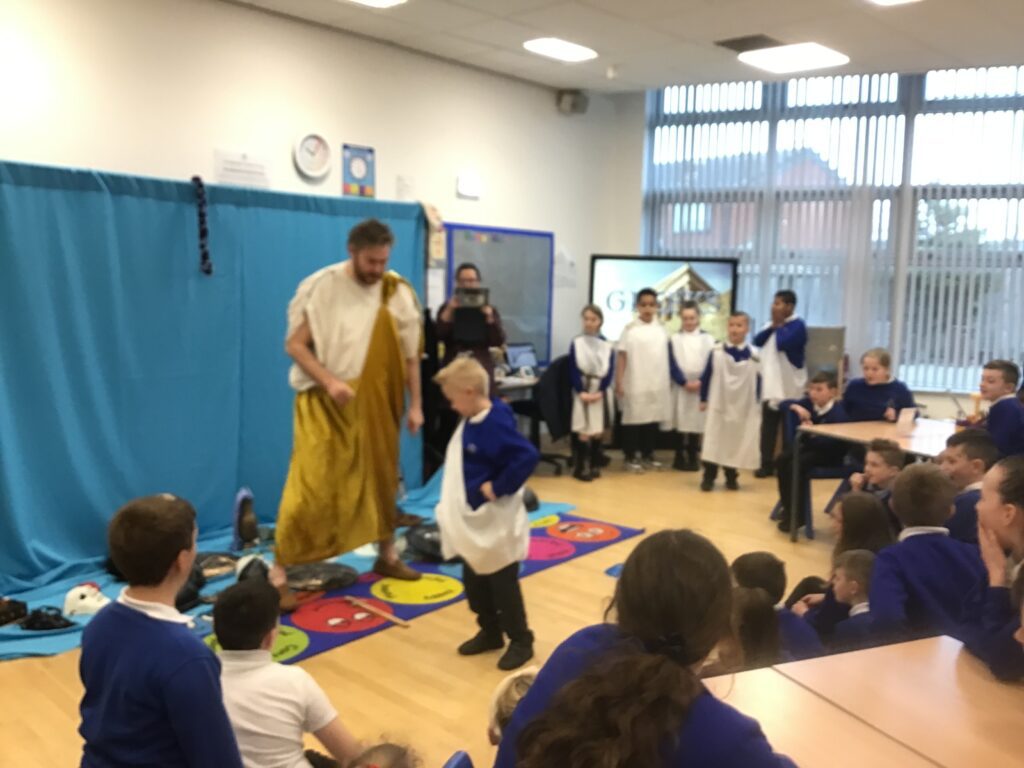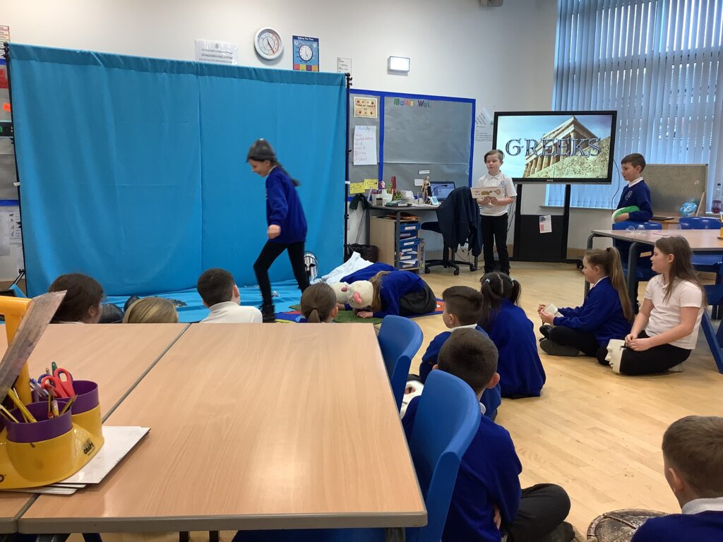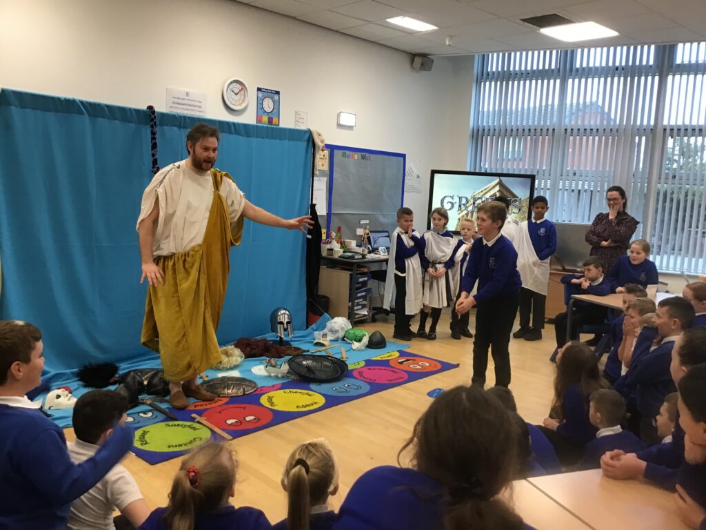 Year 5 thoroughly enjoyed our fun filled Greek day. We had a special visit from Zeus who taught us all about the ways of the ancient Greek people. We learned about Greek Gods, democracy, the Athenian Games (now known as the Olympics), ancient Greek myths and legends and much more!