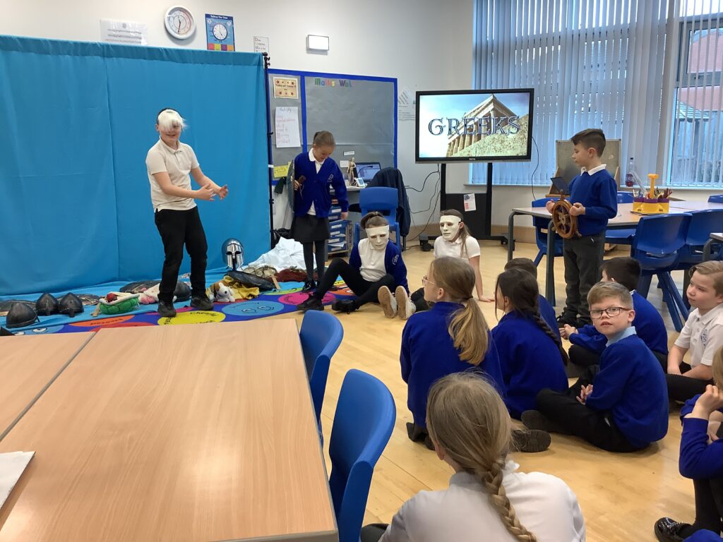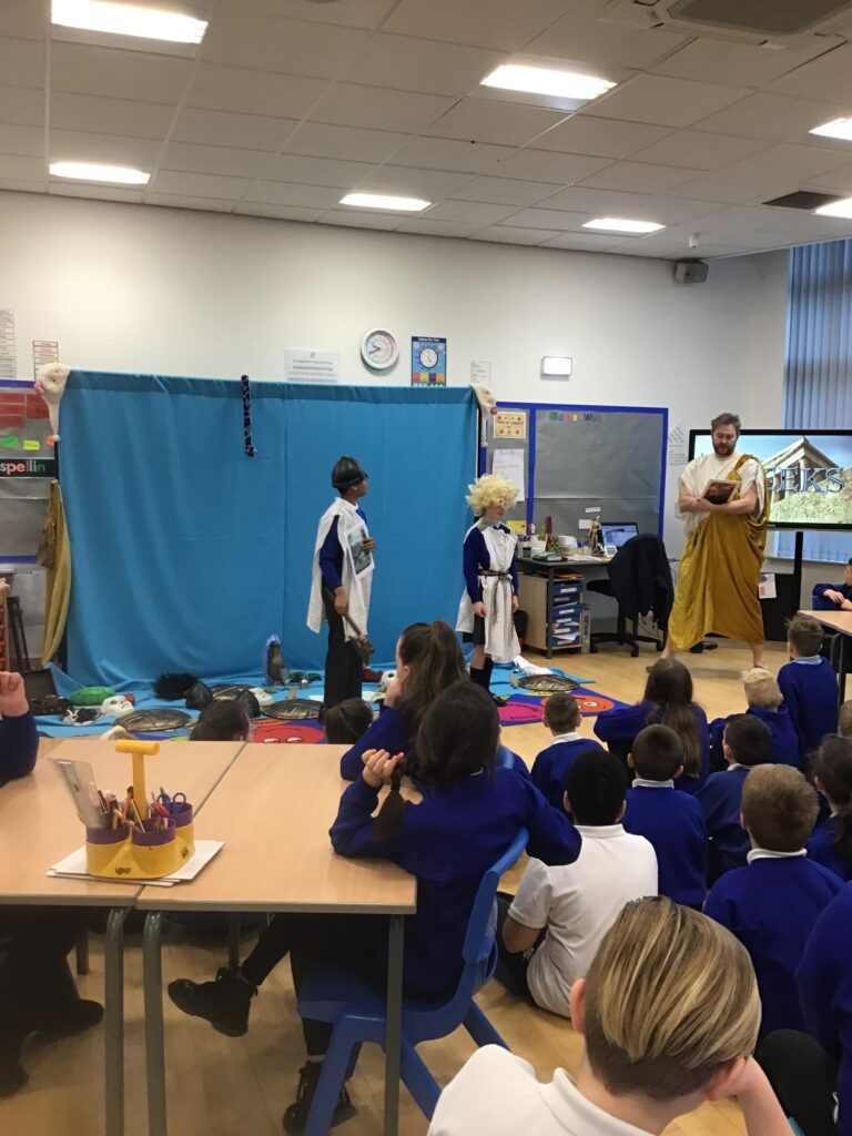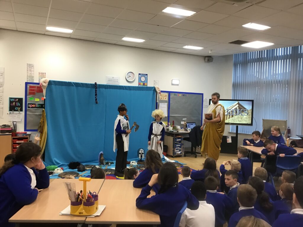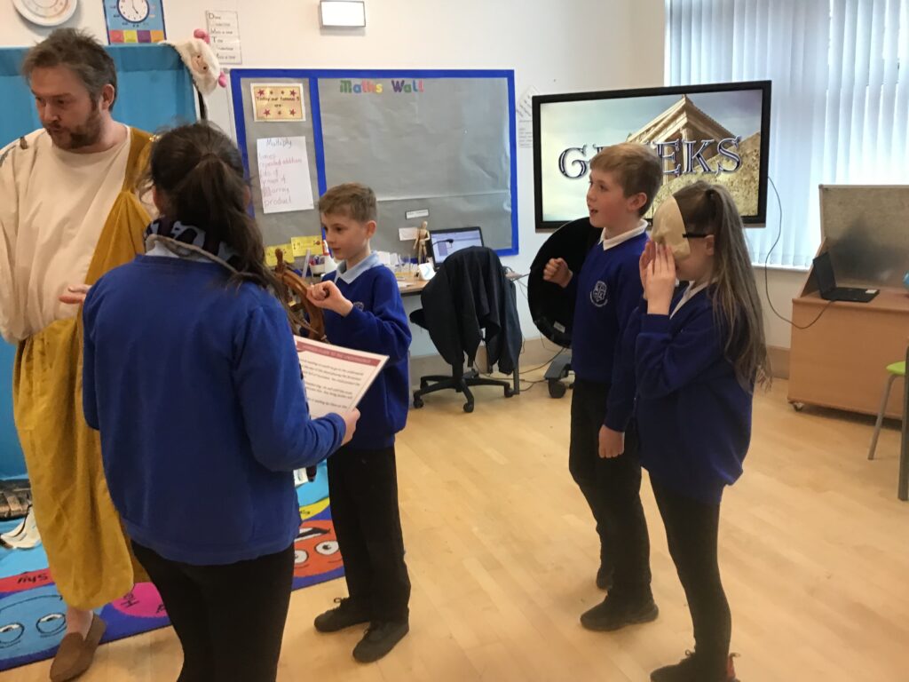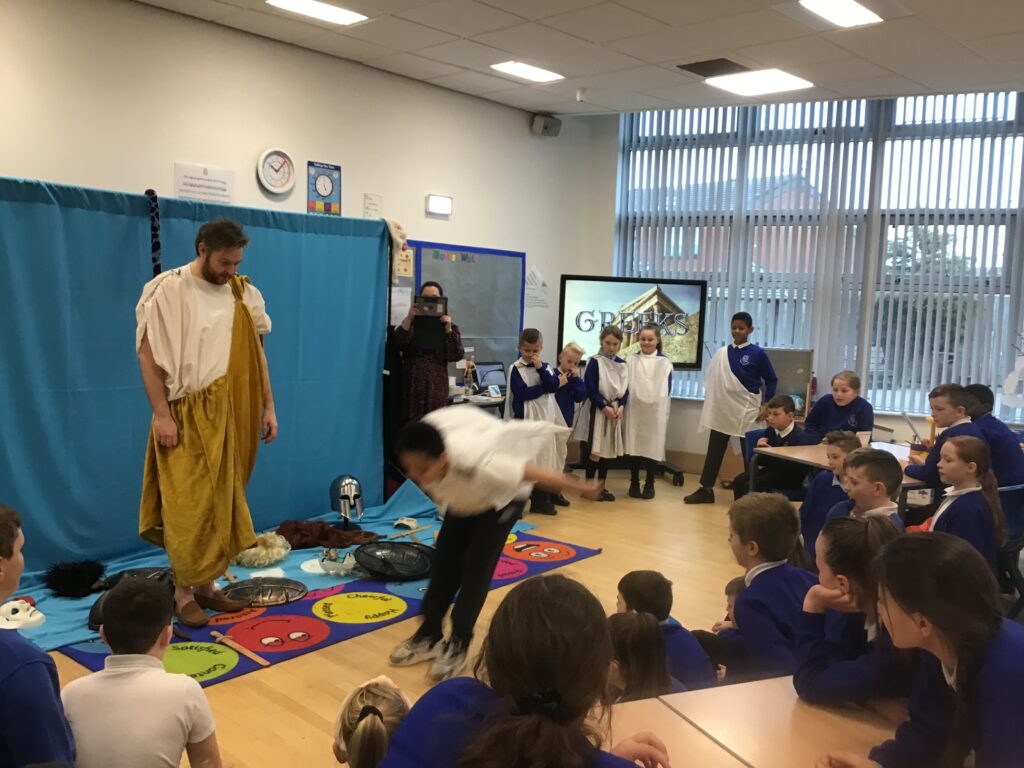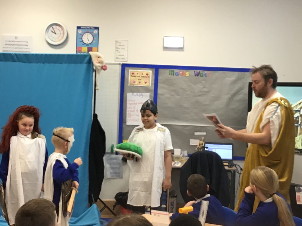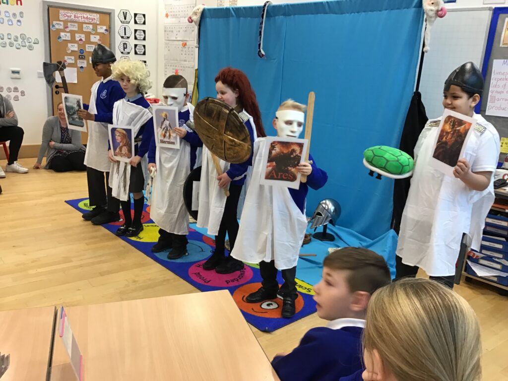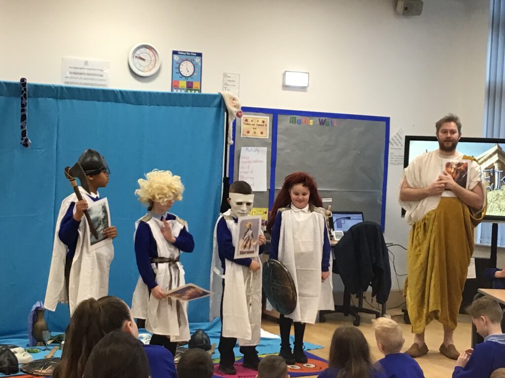 Year 5 thoroughly enjoyed our fun filled Greek day. We had a special visit from Zeus who taught us all about the ways of the ancient Greek people. We learned about Greek Gods, democracy, the Athenian Games (now known as the Olympics), ancient Greek myths and legends and much more!